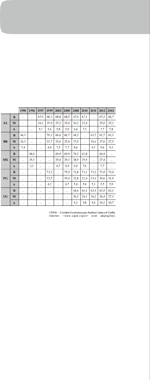 QUESTÕES CONCURSOS POLICIA CIVIL INTEGRAÇÃO ENTRE INDÚSTRIA E ESTRUTURA URBANA, REDE DE TRANSPORTES E SETOR AGRÍCOLA NO BRASIL (INSTITUTO RIO BRANCO – DIPLOMATA – CESPE – 2018) A tabela a seguir mostra as porcentagens, sobre o total da população ocupada, da população ocupada por setor produtivo: B = baixa produtividade (agricultura, co- mércio e serviços); M = média produtividade (manufatura, construção, transporte e comunicação); e A = alta produ- tividade (mineração, eletricidade, gás, água, atividades fi- nanceiras e imobiliárias), na América Latina (AL), no Brasil (BR), no México (MX), no Paraguai (PG) e no Uruguai (UG), nos anos indicados. Com referência à população trabalhadora ocupada, na América Latina, e considerando os dados dos setores pro- dutivos da economia apresentados na tabela anterior, jul- gue (C ou E) o item subsequente. A relativa diminuição do número de ocupados no setor de baixa produtividade e o aumento no setor de alta produ- tividade da economia brasileira, entre 1999 e 2013, é um fenômeno explicado pela perda de importância das com- modities agrícolas para o país, que decorre da crise de ex- portação no período ( ) Certo ( ) Errado (PRF – POLICIAL RODOVIÁRIO FEDERAL-CESPE-2008) Projeto avaliado em 800 milhões de dólares, iniciado em 2005 e com previsão de término para 2010, a Interoceânica dinamizará a integração entre vizinhos, ao partir de Assis Brasil, no Acre, para desaguar nos portos peruanos de San Juan e Ilo. A construção da estrada gera enorme expectati- va para negócios entre os países. Serão mais de 2,5 mil qui- lômetros, dos quais 60% já estão construídos em diferentes blocos, que ainda precisam ser conectados. Jornal do Brasil, 27/7/2008, p. E4 (com adaptações). Tendo o texto acima como referência inicial e consideran- do o objetivo da obra nele mencionada, assinale a opção incorreta. a) Com a construção da estrada, pretende-se facilitar o trânsito de mercadorias brasileiras em direção aos cada vez mais promissores mercados da costa do oceano Pacífico. b) A obra, já em andamento, com pouco mais da me- tade da construção concluída, impulsionará direta- mente as relações Norte-Sul no cenário globaliza- do da economia mundial. c) As atuais alternativas de exportação, como os por- tos de Paranaguá e de Santos, representam custos muito elevados para produtos da região Norte. d) Uma rodovia como a Interoceânica facilitará a apro- ximação dos interesses comerciais brasileiros com o rico mercado da costa oeste norte-americana. e) Em síntese, a estrada a que se refere o texto possi- bilitará a ligação, por terra, entre os oceanos Atlân- tico e Pacífico, cortando a América do Sul. (PRF – POLICIAL RODOVIÁRIO FEDERAL-CESPE-2008) O cultivo de grãos na Amazônia - entre eles a soja, aponta- da como uma das vilãs do desmatamento - pode ser uma alternativa para a recuperação de áreas já degradadas da floresta. Uma tecnologia desenvolvida pela EMBRAPA, que consiste na integração de culturas como o cultivo de grãos, a pecuária e o reflorestamento, começa a ser implantada em fazendas experimentais na região Norte do país. É o chamado sistema integrado de produção. Folha de S.Paulo, 3/2/2008, p. A18 (com adaptações) Tendo o texto acima como referência inicial e considerando as implicações do tema por ele focalizado, assinale a opção incorreta. a) O comércio de grãos, no atual estágio da economia mundial globalizada, adquire importância capital devido ao montante de recursos que movimenta. b) O Brasil tem no agronegócio, que faz da soja uma de suas estrelas, um de seus mais fortes instrumen- tos para inserção no mercado mundial. c) A empresa estatal mencionada no texto torna o Brasil uma referência internacional no campo da pesquisa científica vinculada ao campo. d) Áreas já degradadas da floresta, conforme se afir- ma no texto, podem ser as utilizadas pela pecuá- ria, mas abandonadas pela exaustão do solo usado pelo gado. e) Infere-se do texto que os lucros da ampliação de áreas de plantio na Amazônia compensam os efei- tos ambientais do desmatamento na região. 3 G E O P O LÍ T IC A B R A S IL E IR A E S O C IE D A D E M U N D IA L