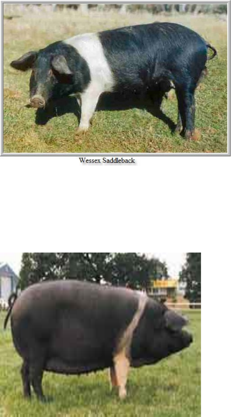 ORIGEM= Wessex é uma raça de suínos, provavelmente de origem inglesa, sendo produto do cruzamento entre as raças New Forest e o Sussex, duas raças de suínos indígenas, que recebiam a classificação de tipo bacon. Seu melhoramento é relativamente recente e foi feito na Inglaterra, com a introdução do sangue Napolitano e possivelmente Chinês. Sua criação ocorre principalmente no condado de Wessex, e também, na Irlanda. TIPO DE ORELHAS= As orelhas são de tamanho médio, voltadas para frente e para baixo (tipo céltica). CARACTERISTICAS MORFOLOGICAS apresentam a pelagem inteiramente preta, exceto por uma faixa branca que desce da cruz pelos membros anteriores até alcançar o casco, não devendo ultrapassar dois terços do corpo. Malhas brancas em outras regiões desqualificam o animal. Abaixo da região branca, a pele deve ser despigmentada. Os pelos são lisos, finos e assentados, sendo que a presença de redemoinhos, frisos e pele enrugada são considerados defeitos. A cabeça do suíno Wessex é relativamente comprida, apresentando focinho forte, de tamanho regular; a fronte é levemente côncava e larga. O pescoço é de tamanho mediano e forte. O corpo é bem alongado, largo e espesso, apresentando linha superior levemente arqueada, com a cruz e anca encontrando-se aproximadamente no mesmo nível. O tórax é profundo e amplo, com costelas bem arqueadas, as espáduas são pequenas, quase não se destacando, bem conectadas ao pescoço, à cruz e ao costado. O lombo e o dorso são similarmente largos e apresentam boa musculatura; a garupa é longa e ligeiramente inclinada. O ventre é bem sustentado, apresentando no mínimo 12 tetos bem dispostos. A cauda é comprida, possuindo um tufo de pelos em sua ponta. Os membros são fortes, com bons aprumos, relativamente curtos, apresentando ossatura e musculatura bem desenvolvidas. Os pernis possuem excelente conformação, cheios, mas sem excesso de gordura. TiPO DE CARNE Pertence ao tipo intermediário, mas pode ser usado também para carne magra, principalmente nos cruzamentos com Landrace INTERMEDIARIO= É um tipo intermediário, servindo para carne e toucinho VALOR CORMECIAL Foi uma raça preferida pelas granjas que utilizavam o sistema de produção extensivo ou criação ao ar livre. Como este sistema é pouco utilizado no Brasil, os registros vem diminuindo. Apresenta como principais características, a prolificidade, rusticidade e habilidade materna. Em 1998 não emitiu nenhum registro genealógico e a tendência é de que seja extinta ou substituída por outra raça mais moderna PORQUE CRIAR SUINOS A suinocultura por muitas vezes culturalmente encarada de forma marginaliza dentre as produções animais atualmente representa um cenário extremamente atrativo para os produtores já que os indícios de seu crescimento no futuro são muito favoráveis tornando-se uma carne cada vez mais presente no prato do consumidor brasileiro Atualmente no cenário mundial o brasil se encontra como 4 maior produtor e exportador de carne suína no mundo sendo que em sua frente temos china união europeia ( considerando todos os seus 28 países juntos ) os estados unidos e por outro lado após o brasil temos aos russos como 5 maior produtor e exportador mundial dados apontam que no ano após ano o crescimento pois embargos econômicos entre china e EUA apenas alavancaram a china como sendo além de maior produtora e exportadora a maior importadora resultando num incremento de 140% das exportações de carne suína no brasil para a china e de mais 23% apenas para Hong Kong REFERENCIA https://agromundo.com.br/2010/03/22/raca-de-suinos https://www.infoescola.com/animais/suino-wessex https://www.google.com/url?sa=i&url=https%3A%2F%2Fstravaganzastravaganza.blogspot.com%2F2011%2F05%2Fprincipais-racas-de-suinos-do-mundo.html&psig=AOvVaw2wOq4eIs1nmeizfHh1THRm&ust=1647954003405000&source=images&cd=vfe&ved=0CAsQjRxqFwoTCIiCoZuh1_YCFQAAAAAdAAAAABAD https://www.google.com/url?sa=i&url=https%3A%2F%2Felearning.up.pt%2Fppayo%2FEXOGNOSIA%25202008-09%2FWEB%2520ALUNOS%2FSUINOS%2520B5%2FLISTA%2520RAZAS%2FLISTA%2520DE%2520RAZAS.htm&psig=AOvVaw2wOq4eIs1nmeizfHh1THRm&ust=1647954003405000&source=images&cd=vfe&ved=0CAsQjRxqFwoTCIiCoZuh1_YCFQAAAAAdAAAAABAN image1.jpeg image2.jpeg