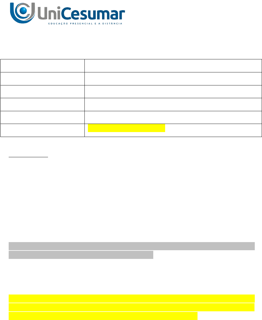 Estágio Supervisionado IV Atividade de Estudo 2 BEDU – ESTÁGIO IV – ATIVIDADE DE ESTUDOS 2 Nome do acadêmico: Victor Gonçalves Esposito ferreira RA: 22113341-5 Curso: Bacharelado em Educação Física Disciplina: Estágio Supervisionado IV Valor da Atividade: 3,0 pontos Prazo para postagem: 15/10/2024 a 04/11/2024 Orientações: - É obrigatório utilizar o modelo da atividade disponível no "Material da Disciplina". - Leia com atenção todas as informações disponíveis no modelo atividade de estudo e assista a aula conceitual. - É obrigatória a apresentação de 1 (Uma) referência nas normas da ABNT. Na Sala do café, encontra-se um arquivo de como referenciar os livros. - A atividade é individual. Em caso de cópias, atividades similares entre estudantes e plágio à atividade será zerada. - Você deverá enviar o modelo atual em 1 (um) único arquivo, no formato do WORD (.doc ou .docx). A avaliação será feita apenas neste formato, portanto, não entregue outro formato de arquivo. - CERTIFIQUE-SE DE QUE O ARQUIVO É O CORRETO ANTES DE FINALIZAR A ATIVIDADE! POIS, NÃO HÁ COMO REENCAMINHÁ-LO. PORTANTO, FAÇA A CONFERÊNCIA ANTES DE ENVIAR. Você aluno, após concluir o Bacharelado em Educação Física foi contratado para atuar em uma empresa de Personal para populações especiais. Sua atuação terá início no próximo mês e sua primeira aluna será uma gestante. Principais características da aluna gestante Nome: Ana Idade: 28 anos Peso: 72kg Altura: 1,67 Tempo de gestação: segundo trimestre (4-6 meses) Possui alguma doença? Não Nível de atividade física: Ativa, praticou musculação nos últimos dois anos, mas atualmente só faz caminhada 3x na semana. Restrição médica? Não Objetivo: Fortalecimento muscular dos membros inferiores para o parto normal Informações para elaboração de sua sessão de treino: · Tempo total da aula: 40 minutos · Dias da semana: terça-feira · Horário: 9h00min às 9h40min · Intensidade: leve à moderada · Local: casa da aluna (área) · Materiais disponíveis: bola suíça (bola de pilates); 1 colchonete; 1 cadeira e um trio de mini band. Caso seja necessário, poderá utilizar a parede como apoio de alguns exercícios. VEJA O EXEMPLO A SEGUIR: EXEMPLO DE PLANO DE ATIVIDADE Aluna: Ana Idade: 28 anos Peso: 72 kg Altura: 1,67 Gestante: segundo trimestre (4-6 meses) Dia da aula: terça-feira Tempo total: 40 minutos Objetivo do treino: Fortalecimento muscular dos membros inferiores para o parto normal Parte Inicial: Alongamento (10 minutos) Exemplo de como descrever a parte inicial. Cruzar o braço direito na frente do tórax com um dos braços e com a mão esquerda pressionar o cotovelo junto ao peito e segurar por 20 segundos. Alternar os lados. Em pé, com a mão direita apoiada na cadeira, elevar a mão esquerda e inclinar para o lado direito. Alternar o lado e repetir 2 vezes cada lado Sentada no chão, esticar a perna de forma diagonal e inclinar o tronco lentamente para o lado direito. Alternar os lados e repetir 3 vezes cada lado. Sentada no chão, esticar a perna de forma diagonal, inclinar o tronco na diagonal em direção ao pé direito. Alternar os lados e repetir 3 vezes cada lado. Parte Principal: Exercícios (20 minutos) Exemplo de como descrever a parte principal do treino. Panturrilha: de pé, a gestante irá apoiar-se na cadeira e realizar a flexão plantar, ficando nas pontas dos pés e retornando lentamente. 3 séries de 15 repetições. Descanso de 1 minuto entre as séries. Agachamento: de pé, a gestante irá esticar os dois braços para frente e realizar o movimento de agachar e sentar na cadeira. 4 séries de 10 agachamentos. Descanso de 1 minuto entre as séries. Abdução: de pé, com a mão apoiada na cadeira, realizar a abdução da perna utilizando a mini band. 3 séries de 10 abduções cada perna. Descanso de 1 minuto entre as séries. Parte Final: Relaxamento (10 minutos) Exemplo de como descrever a parte final. Sentada na cadeira e com a coluna ereta, rotacionar o pescoço lentamente 3 vezes para cada lado. Rotacionar os ombros para frente e para trás. Sentada no chão (colchonete) com as pernas cruzadas inspirar profundamente e encolher os ombros para cima em direção as orelhas. Expirar abaixando os ombros, deslizando as escápulas para baixo. Recursos/materiais Cadeira, colchonete e mini band A partir das informações recebidas sobre as características da aluna gestante e das informações da aula, elabore UMA SESSÃO de treinamento para a aluna Ana, seguindo o modelo abaixo: PLANO DE ATIVIDADE Aluna: Ana Idade: 28 anos Peso: 72 kg Altura: 1,67 Gestante: Segundo trimestre (4-6 meses) Dia da aula: Terça-feira Tempo total: 40 minutos Objetivo do treino: Fortalecimento muscular dos membros inferiores para o parto normal Parte Inicial: Alongamento (10 minutos) - Girar o tronco lentamente para a direita e para a esquerda, realizando 3 repetições em cada lado. - Alongar a parte posterior das coxas, sentando no chão com as pernas esticadas e inclinando o tronco para frente. Segurar por 20 segundos. - Sentada no chão, dobrar uma perna e abraçá-la com os braços, levando o joelho em direção ao peito. Repetir com a outra perna. Segurar por 20 segundos em cada lado. - Em pé, segurar a bola suíça com as mãos acima da cabeça e inclinar lentamente o tronco para os lados, realizando 3 repetições em cada lado. Parte Principal: Exercícios (20 minutos) - Agachamento com a bola suíça: a gestante irá segurar a bola suíça com as duas mãos acima da cabeça e realizar o movimento de agachar e levantar, mantendo a bola na mesma posição. 3 séries de 10 repetições. Descanso de 1 minuto entre as séries. - Elevação de calcanhares: de pé, a gestante irá apoiar-se na parede e realizar a flexão plantar, ficando nas pontas dos pés e retornando lentamente. 3 séries de 15 repetições. Descanso de 1 minuto entre as séries. - Abdução com a mini band: de pé, com a mini band p