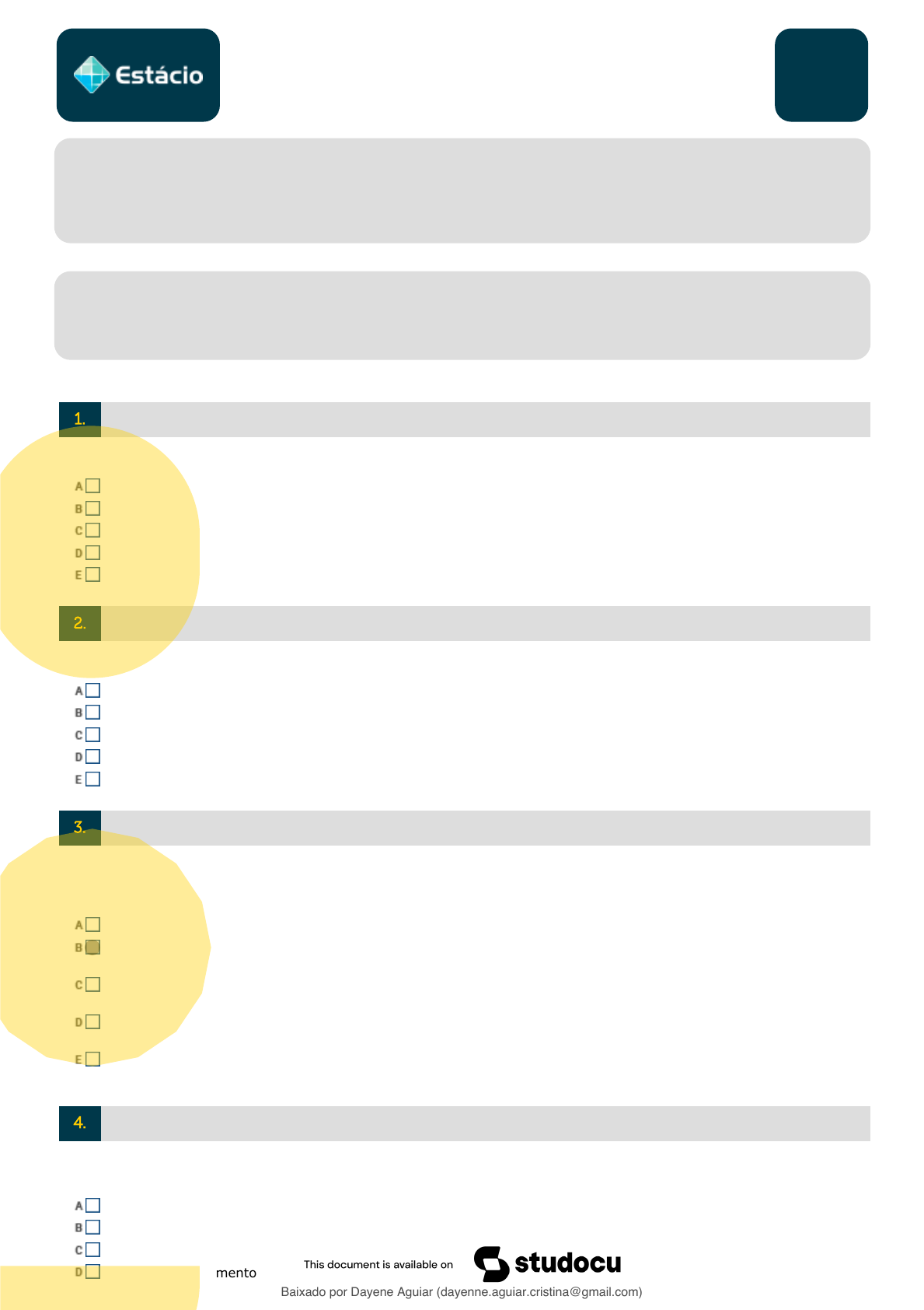 5849513309 A 02/11/2022 12:48 Nome: Matrícula: ________________ Disciplina: ARA1224 / TEORIA DA DECISÃO JURISD. E RECURSOS NO PROC CIVIL Data: ___ /___ /______ Período: 2022.2 / AV2 Turma: 3019 Leia com atenção as questões antes de responder. É proibido o uso de equipamentos eletrônicos portáteis e consulta a materiais de qualquer natureza durante a realização da prova. Boa prova. _______ de 1,00 Quanto à fungibilidade recursal, assinale a correta: É reconhecida pela lei entre o recurso especial e o recurso ordinário; É reconhecida pela lei entre o agravo de instrumento e embargos de divergência; É reconhecida pela lei entre a apelação e recurso ordinário. É reconhecida pela lei entre o agravo de instrumento e apelação; É reconhecida pela lei entre os embargos de declaração e agravo interno; _______ de 1,00 Quanto aos recursos, é correto afirmar: A desistência pode ocorrer antes da interposição do recurso. A renúncia apenas pode ser expressa, não pode ser tácita. A aquiescência gera preclusão lógica que impede a admissão do recurso. A renúncia ao direito de recorrer depende da aceitação da outra parte. O recorrente poderá, desde que com a anuência do recorrido ou dos litisconsortes, desistir do recurso. _______ de 1,00 Com fins de prequestionamento de matéria constitucional, o recorrente opôs embargos de declaração em face de acórdão do Tribunal de Justiça do Rio de Janeiro proferido em sede de apelação. Se a Câmara entender que a matéria constitucional suscitada estiver expressa no acórdão: Não poderá condenar o embargante ao pagamento de multa em razão do fim de prequestionamento; Poderá condenar o embargante a pagar ao embargado multa não excedente a dois por cento sobre o valor atualizado da causa; Poderá condenar o embargante a pagar ao embargado multa não excedente a dez por cento sobre o valor da condenação, como se reiterado fosse. Poderá condenar o embargante a pagar ao embargado multa não excedente a dois por cento sobre o valor atualizado da condenação; Poderá condenar o embargante a pagar ao embargado multa não excedente a dez por cento sobre o valor da causa, como se reiterado fosse; _______ de 1,00 Assinale a opção que contém o recurso que pode ser utilizado para impugnar decisão interlocutória proferida em primeiro grau pelo magistrado. Recurso ordinário recurso especial agravo retido agravo de instrumento Baixado por Dayene Aguiar (dayenne.aguiar.cristina@gmail.com) lOMoARcPSD|30707823 Mobile User embargos de declaração _______ de 1,00 É CORRETO afirmar sobre os embargos de declaração: Considera-se omissa a decisão que se limitar a invocar precedente ou enunciado de súmula sem identificar seus fundamentos determinantes nem demonstrar que o caso sob julgamento se ajusta àqueles fundamentos. O tribunal, em decisão fundamentada, condenará o embargante a pagar ao embargado multa não excedente a dois por cento sobre o valor atualizado da causa, na reiteração de embargos de declaração. Nenhuma das alternativas anteriores. Eles serão opostos em petição dirigida ao julgador com indicação do erro, obscuridade, contradição ou omissão, e estarão sujeito a preparo, salvo se a parte demonstrar que tem direito à gratuidade. Os embargos de declaração interrompem o prazo para a interposição de outros recursos, sendo vedado ao relator atribuir efeito suspensivo ao recurso. _______ de 1,00 Ao conhecer um recurso de apelação, o órgão fracionário do Tribunal estará: Reconhecendo uma omissão na decisão recorrida. Invalidando a decisão recorrida e determinando que outra seja proferida; Reformando a decisão recorrida; Indicando que falta preparo ao recurso; Reconhecendo a tempestividade do recurso; _______ de 1,00 Acerca do sistema recursal previsto no CPC, julgue os itens a seguir: I- O recorrente só poderá desistir do recurso com a anuência do recorrido e dos litisconsortes. II- Os embargos de declaração interrompem o prazo para a interposição de recurso. III- Não comprovado o recolhimento do preparo no ato da interposição do recurso, a parte será intimada, na pessoa do seu advogado, para realizar o pagamento em dobro, sob pena de deserção. Assinale a opção correta: Apenas os itens I e III estão certos. Apenas o item II está certo Todos os itens estão certos Apenas o item I está certo Apenas os itens II e III estão certos. _______ de 1,00 Paula moveu ação de indenização por danos materiais contra Maria, que foi julgada procedente por sentença transitada em julgado que condenou a ré ao pagamento da quantia equivalente a vinte salários mínimos. Um ano e meio depois do trânsito em julgado, Maria ajuizou contra Paula ação rescisória, fundada na alegação de que a referida sentença fora proferida por juiz absolutamente incompetente. Nesse caso: caberá a Maria depositar a importância de cinco por cento sobre o valor da causa, que se converterá em multa caso a ação seja, por unanimidade de votos, declarada inadmissível ou improcedente. a ação deverá ser rejeitada de plano, pois não se admite rescisão de sentença que tenha imposto condenação inferior a cem salários mínimos. a propositura da ação rescisória impede o cumprimento da sentença rescindenda, independentemente da concessão de tutela provisória a ação deverá ser rejeitada de plano, pois fundada em alegação que não se enquadra nas hipóteses legais de rescisão da sentença. a ação deverá ser rejeitada de plano, pois o direito à rescisão da sentença se extingue em um ano contado do trânsito em julgado. _______ de 1,00 Carlene intentou determinada demanda em face de Otávio, que, regularmente citado, aduziu em contestação que a autora não havia observado o prazo decadencial, o qual, na ótica do réu-contestante, era de três anos. O juiz da causa, concluindo, Baixado por Dayene Aguiar (dayenne.aguiar.cristina@gmail.com) lOMoARcPSD|30707823 Mobile User equivoca