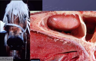 Estudo Dirigido – Revisão Caso 1 – Equino 10 anos (Amiloidose Nasal) Descrição Macroscópica: Macroscopicamente, observam-se nódulos de tamanhos variados ou deposições difusas, com superfície lisa e brilho semelhante à cera, podendo ocorrer ulceração da mucosa. Diagnóstico Morfológico: No trato respiratório, os locais mais usuais para esta deposição são as narinas e a cavidade nasal, principalmente o septo nasal e as conchas nasais. O hematoma etmoidal progressivo consiste de massas angiomatosas de expansão lenta. Ele origina-se no revestimento mucoso do osso etmoturbinado ou da parede dos seios maxilares, esfenopalatinos e frontais e ocorre freqüentemente em cavalos entre oito e 10 anos de idade. Os animais acometidos por patologias na cavidade nasal apresentam sinais clínicos semelhantes, sendo mais comuns a secreção nasal, epistaxe e dispnéia. Etiopatogenia caso haja: Alterações geneticas e alterações inflamatorias crônicas. Caso 2 – Suíno 1 ano (Rinite Atrófica dos Suínos) Diagnóstico morfológico: Macroscopicamente, a principal característica da rinite atrófica progressiva é a atrofia das conchas ou cornetos nasais, algumas vezes, em casos graves, associada ao desvio e encurtamento do nariz e dos ossos faciais. Nesses casos, ocorre enrugamento da pele que recobre o nariz, devido ao seu encurtamento, e a assimetria das lesões causa desvio do nariz para o lado mais afetado. Quando as rugas são simétricas, o nariz também se encurta e se volta para cima. Frequentemente, observase incrustação no canto medial do olho (mistura de secreção lacrimal e sujeira do meio ambiente), decorrente da obstrução do ducto lacrimal pelo exsudato e mesmo rinorragia. Etiopatogenia: A rinite atrófica não progressiva é provocada pela bactéria gram negativa Bordetella bronchiseptica, enquanto a rinite atrófica progressiva (mais severa) é provocada pela bactéria toxinogénica Pasteurella multocida. A B. bronchiseptica tem uma distribuição mundial entre a população de suínos e algumas estirpes toxinogénicas provocam lesões no epitélio nasal através da produção de uma dermonecrotoxina. As estirpes toxinogénicas da P. multocida, geralmente do Tipo D, requerem lesões pré-existentes, tais como as provocadas pela B. bronchiseptica, para poderem colonizar o epitélio nasal. A produção de toxinas termolábeis resulta numa atrofia progressiva do septo nasal e dos cornetos nasais e redução no crescimento de outros ossos no suíno afectado. Ambas as bactérias são transmitidas aos leitões através de porcas portadoras, durante a lactação, mas o início da infecção é determinado pelo nível de anticorpos presentes no colostro e pelos factores ambientais. A introdução da infecção numa exploração geralmente é feita através de um suíno portador infectado, porém há indícios de que a doença também possa ser introduzida por cães, gatos, ruminantes, aves e, no caso da P. multocida toxinogénica, pode ser introduzida por humanos. Complicações que cursam com a doença: Pneumonias, refugos e baixa conversão. Caso 3 – Equino 12 Anos (Mormo) Descrição Macroscópica: Caracterizase macroscopicamente por exsudato nasal catarral purulento, lesões nodulares e ulcerativas na mucosa nasal, particularmente no septo nasal, e por nódulos granulomatosos nos pulmões. Ocorrem também lesões cutâneas caracterizadas por nódulos granulomatosos ou piogranulomatosos, com tendência à ulceração, associados à linfadenite e linfangite granulomatosas; Nome da doença: Mormo; Etiologia: O mormo é uma zoonose infectocontagiosa causada pela bactéria Burkholderia mallei que acomete primeiro os equídeos (cavalos, burros e mulas) e pode ser transmitida eventualmente a outros animais e ao ser humano. A doença é transmitida a humanos pelo contato com animais infectados. Diagnóstico diferencial: Garrotilho Caso 4 – Canino 4 anos (Hipovolemia Passiva Crônica) Órgãos envolvidos: Fígado e Coração Diagnóstico morfológico: Coração com insuficiencia cardiaca congestiva dirieta, pode ser causada por vários fatores entre elas a endocardiose atrioventricular que ocasiona ao fígado com aspecto de noz moscada, difusamente aumentado de volume por hiperemia passiva crônica. Etiopatogenia: Causas da Sobrecarga do Coração Direito: Isso pode ocorrer devido a uma variedade de condições, como processos neoplásicos (câncer), processos inflamatórios e parasitários que afetam o coração ou os vasos sanguíneos próximos a ele. Insuficiência do Coração Direito: Quando o coração direito está sobrecarregado, ele não consegue realizar adequadamente sua função de bombear sangue para os pulmões para oxigenação. Isso pode ocorrer devido a danos na válvula cardíaca ou a alterações no músculo cardíaco (miocárdio). Consequências da Insuficiência Cardíaca Direita: Com a falha do coração direito em bombear eficientemente o sangue para os pulmões, ocorre um acúmulo de sangue nas veias que retornam ao coração direito. Isso pode levar a um aumento do volume sanguíneo e à congestão dos órgãos, especialmente do fígado. Alterações no Fígado: Na fase aguda, o fígado pode apresentar aumento de volume, coloração vermelho escuro e um aumento do fluxo sanguíneo. Cronicamente, as regiões centrolobulares podem começar a mostrar uma coloração rosada com áreas brancacentas com aspecto de noz-moscada, indicando uma hiperemia passiva crônica devido à insuficiência cardíaca congestiva. Complicação clínica: Hipovolemia, questões emodinâmicas, edêmicas, efusões, dificuldade respiratório. Caso 5 – Canino – 14 anos (Aplasia medular) Diagnóstico morfológico: A expressão aplasia medular designa um distúrbio em que ocorre parada na multiplicação e maturação dos precursores hematopoéticos presentes na medula óssea. Nessa situação, todos os componentes medulares (mieloide, eritroide e megacariocítico) são a