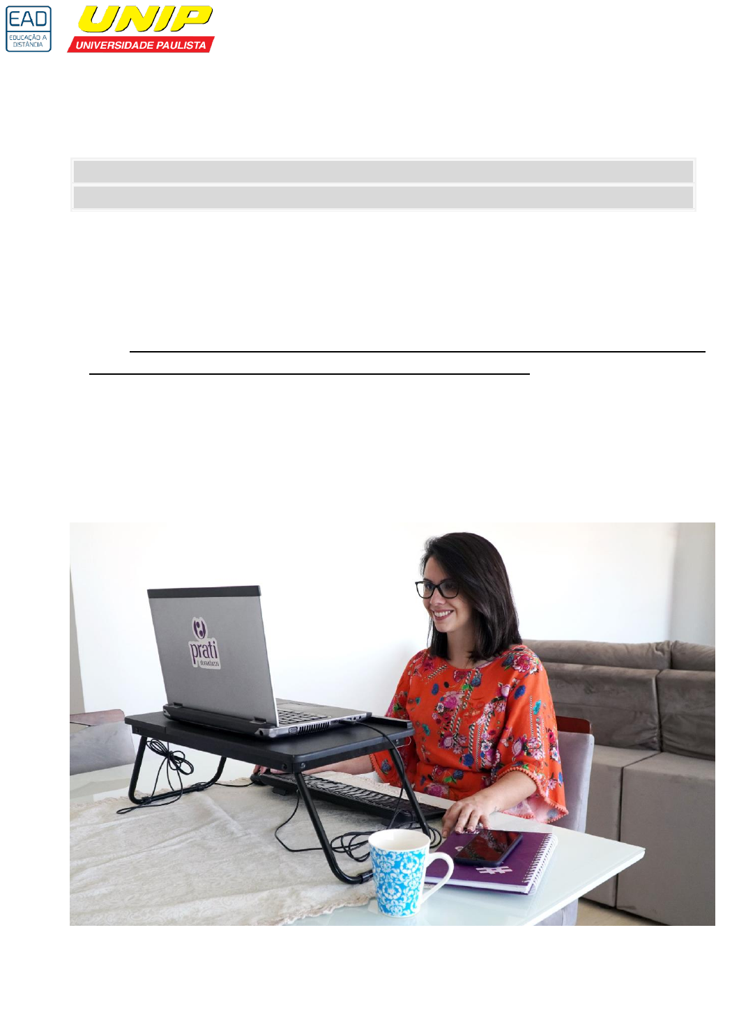 TEXTO COMPLEMENTAR Disciplina: Ergonomia Professor: Ricardo Calasans Home office: 6 cuidados com a ergonomia para um trabalho de qualidade (Fonte: Adaptado de: Prati-Donaduzzi - 15/07/2020) Link: https://sindusfarma.org.br/noticias/empresas-foco/exibir/13140-home-office-6- cuidados-com-a-ergonomia-para-um-trabalho-de-qualidade A crise sanitária devido à Covid-19 transformou o dia a dia de milhares de pessoas e a tecnologia se tornou uma grande aliada nesse momento. Muitas empresas tiveram que reduzir internamente o fluxo de colaboradores para evitar a disseminação do Coronavírus e, principalmente, preservar a saúde e o bem-estar de seus funcionários. Escolher o ambiente, mesa, cadeira e iluminação adequados são alguns cuidados importantes. Uma das soluções encontradas para dar continuidade às atividades foi a adoção do home office. Embora uma tendência no mercado de trabalho, a prática foi intensificada e https://sindusfarma.org.br/:external-url?url=eyJpdiI6Ik1kT2pMbGlOK08wZmc3anl0S1JESnc9PSIsInZhbHVlIjoiMGF3QlcvSnYvbHJtaEkrcHlma3pwblBmSlc1ZVF6WC9HZVh1b2Y2ZVhWK1dvS2ZzdzVRd0pTZ3llcWxrRUdJZiIsIm1hYyI6IjcxY2U0NWUyYWM2MzNlZDc1NjFhY2UyZWQ2ZDBlZDA1NWUzZjY2NDg0ZWI5ZGMwNzljNDE1YjA2MGY1NjllMTUifQ%3D%3D&sessionId=eyJpdiI6IkpEZ2ljVXhIam8yeVNMZDRpdXFBZXc9PSIsInZhbHVlIjoielVqUXJiVmtvSkF4WE02T2cyWldNdz09IiwibWFjIjoiYTJhMmU0NjQxMDMzMTE2YTViNGE2NDRkNTBhNDQ5ZGZjM2U3NTg4NGViOWZiNzYyMjRjMzg0ZGE2YTcxYjBjMCJ9 https://sindusfarma.org.br/noticias/empresas-foco/exibir/13140-home-office-6-cuidados-com-a-ergonomia-para-um-trabalho-de-qualidade https://sindusfarma.org.br/noticias/empresas-foco/exibir/13140-home-office-6-cuidados-com-a-ergonomia-para-um-trabalho-de-qualidade antecipada, exigindo adaptações. Muitas pessoas precisaram transformar um espaço do lar em um escritório improvisado. Porém, alguns cuidados simples podem fazer com que essa nova rotina se torne confortável e saudável. Um dos aspectos que, muitas vezes, passa despercebido no home office é a postura, ela impacta diretamente na qualidade do trabalho. Ergonomia Escolher o ambiente, mesa, cadeira e iluminação adequados são alguns cuidados importantes, como destaca a fisioterapeuta da Prati-Donaduzzi, Anna Karolina Welter Sato. “É extremamente importante o colaborador estar atento em relação à postura, iluminação no local, posicionamento adequado do computador e demais equipamentos que são utilizados.” Além do local ideal, é fundamental que, ao longo do dia, sejam realizadas pequenas pausas durante o expediente com a realização de técnicas de alongamento e respiração. “O alongamento muscular promove o bem-estar físico e mental. Por isso, é muito importante a realização ao longo do expediente de trabalho”, destaca Anna. Confira algumas dicas da especialista para o seu home office: Cuide da sua postura ao sentar; Deixe seus pés retos; Mantenha os cotovelos alinhados com o pulso; Mantenha o monitor em frente ao seu rosto com uma distância de, no mínimo, 50 cm. Caso faça uso de notebook, é importante utilizar suporte, teclado e mouse; Utilize o computador em um ambiente iluminado; e Levante-se a cada 50 minutos e realize um alongamento.