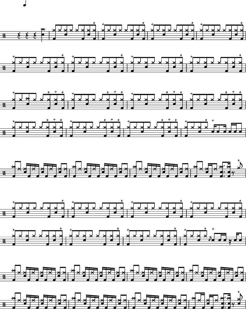 Copyright © 2020 www.DrumsTheWord.com 4 4 1 Intro (Drum enter @ 0:35) Tempo: = 100 Bpm +2+3+4+ 1 + 2 + 3 + 4 + 1 + 2 + 3 + 4 + 1 + 2 + 3 + 4 + 1 + 2 + 3 + 4 + 1 + 2 + 3 + 4 + 1 + 2 + 3 + 4 + 1 + 2 + 3 + 4 + 1 + 2 + 3 + 4 + 1 Verse 1 (Hi-Hat) + 2 + 3 + 4 + 1 + 2 + 3 + 4 + 1 + 2 + 3 + 4 + 1 + 2 + 3 + 4 + 1 + 2 + 3 + 4 + 1 + 2 + 3 + 4 + 1 + 2 + 3 + 4 + 1 + 2 + 3 R e L a L 4 R e L + R 1 Bridge 1 (Ride Cymbal) + 2 e + a 3 e + a 4 + 1 + 2 e + a 3 e + a 4 + 1 + 2 e + a 3 e + a 4 + 1 + 2 e + 3 a 4 + 1 Verse 2 (Hi-Hat) + 2 + 3 + 4 + 1 + 2 + 3 + 4 + 1 + 2 + 3 + 4 + 1 + 2 + 3 + 4 + 1 + 2 + 3 + 4 + 1 + 2 + 3 + 4 + 1 + 2 + 3 + 4 + 1 + 2 + 3 R + a L 4 R e L + R 1 Bridge 2 (Ride Cymbal) + 2 e + a 3 e + a 4 + 1 + 2 e + a 3 e + a 4 + 1 + 2 e + a 3 e + a 4 + 1 + 2 e + a 3 e + a 4 + 1 + 2 e + a 3 e + a 4 + 1 + 2 e + a 3 e + a 4 + 1 + 2 e + a 3 e + a 4 + 1 + a 2 e + 3 a 4 + Song Drum Chart "Sweet Emotion" Aerosmith (Joey Kramer) Copyright © 2020 www.DrumsTheWord.com 2 4 1 Chorus 1 (Hi-Hat) + 2 + 3 + 4 + 1 + 2 + 3 + 4 + 1 + 2 + 3 + 4 + 1 + 2 + 3 + 4 + 1 + 2 + 3 + 4 + 1 + 2 + 3 + 4 + 1 + 2 + 3 + 4 + 1 + 2 + 3 + 4 + 1 Verse 3 (Hi-Hat) + 2 + 3 + 4 + 1 + 2 + 3 + 4 + 1 + 2 + 3 + 4 + 1 + 2 + 3 + 4 + 1 + 2 + 3 + 4 + 1 + 2 + 3 + 4 + 1 + 2 + 3 + 4 + 1 + 2 + 3 R e L a L 4 R e L + R 1 Bridge 3 (Ride Cymbal) + 2 e + a 3 e + a 4 + 1 + 2 e + a 3 e + a 4 + 1 + 2 e + a 3 e + a 4 + 1 + a 2 e + 3 a 4 + 1 Verse 4 (Hi-Hat) + 2 + 3 + 4 + 1 + 2 + 3 + 4 + 1 + 2 + 3 + 4 + 1 + 2 + 3 + 4 + 1 + 2 + 3 + 4 + 1 + 2 + 3 + 4 + 1 + 2 + 3 + 4 + 1 + 2 + 3 R e L R + a L 4 R e L + R 1 Bridge 4 (Ride Cymbal) + 2 e + a 3 e + a 4 + 1 + 2 e + a 3 e + a 4 + 1 + 2 e + a 3 e + a 4 + 1 + 2 e + a 3 e + a 4 + 1 + 2 e + a 3 e + a 4 + 1 + 2 e + a 3 e + a 4 + 1 + 2 e + a 3 e + a 4 + 1 + 2 e 3+4+1+2+3+4+ Song Drum Chart "Sweet Emotion" Aerosmith (Joey Kramer) 2 Copyright © 2020 www.DrumsTheWord.com 2 4 4 4 R 1 Outro (Loose Hi-Hat) L e R + L a R 2 L e R + L a 1 R e L + R a L 2 ... e + a 3 e + a R 4 L e R + L a 1 e + a 2 e + a 3 e + a R 4 L e R + L a 1 e+a2e+a3e+a R 4 L e R + L a 1 e+a2e+a3e+a R 4 L e R + L a 1 e+a2e+a3e+a R 4 L e R + L a 1 e+a2e+a3e+a R 4 L e R + L a 1 e+a2e+a3e+a R 4 L e R + L a 1 e+a2e+a3e+a R 4 L e R + L a 1 e+a2e+a3e+a R 4 L e R + L a 1 e+a2e+a3e+a R 4 L e R + L a 1 e+a2e+a3e+a R 4 L e R + L a 1 e+a2e+a3e+a R 4 L e R + L a 1 e+a2e+a3e+a R 4 L e R + L a 1 e+a2e+a3e+a R 4 L e R + L a 1 Note: Fade out... e+a2e+a3e+a R 4 L e R + L a 1 e+a2e+a3e+a R 4 L e R + L a 1 e+a2e+a3e+a R 4 L e R + L a 1 e+a2e+a3e+a R 4 L e R + L a Song Drum Chart "Sweet Emotion" Aerosmith (Joey Kramer) 3