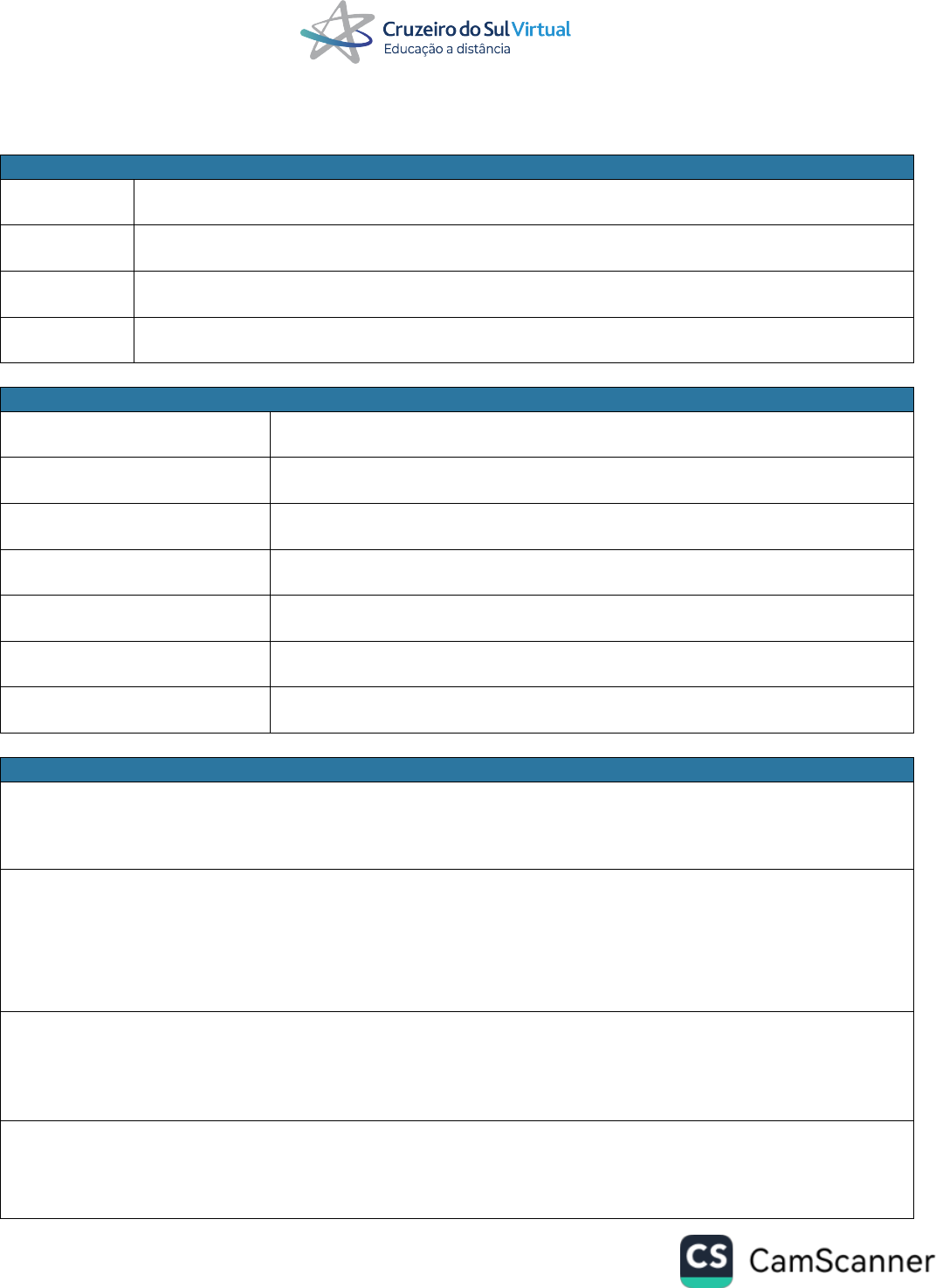 RELATÓRIO DAS ATIVIDADES DE EXTENSÃO 1. IDENTIFICAÇÃO DO ALUNO Nome Pablo Theotonio RGM 34967478 Curso Superior de tecnologia em gestão de segurança privada Campus/Polo POLO SÃO FELIPE D'OESTE 2. IDENTIFICAÇÃO DA ATIVIDADE Nome do Projeto Promovendo a Qualidade de Vida na Comunidade Ação Reforçar o Aprendizado Instituição parceira (se houver) Não ouve Período de Realização Semestre 2024/01 Público-alvo Criancas do Ensino Fundamental Número de pessoas atendidas 7 Criança Carga Horária 60 horas 3. DESENVOLVIMENTO 3.1 Breve relato sobre a atividade realizada, a partir das seguintes premissas: Apresente de forma sucinta as atividades realizadas ao longo do semestre, considerando a Instituição ou a comunidade em que você atuou. Indique qual(is) os Objetivos de Desenvolvimento Sustentável relacionados a essa atividade. O Projeto Promovendo a Educação de Qualidade na Comunidade" visa promover a ajuda nas atividades. escolares e deveres de casa, reforçando o aprendizado infantil. A iniciativa está alinhada com os seguintes Objetivos de Desenvolvimento Sustentável (ODS): ODS 4: Educação de Qualidade 3.2 Descrição das etapas da atividade realizada: Descreva os objetivos gerais e específicos da atividade, a justificativa, como a atividade foi realizada (metodologia), o cronograma das atividades, qual o público-alvo assistido, quantas pessoas foram atendidas e/ou impactadas pela atividade, os resultados obtidos. Insira a maior quantidade de informações, de maneira a apresentar uma visão global de sua atuação. Objetivo Geral: Ajudar cada criança a superar suas dificuldades e limitações. Objetivos Específicos: RELATÓRIO DAS ATIVIDADES DE EXTENSÃO *Conhecer primeiro a dificuldade individual de cada criança. Tentar entender o porque das dificuldades no aprendizado. * Trabalhar com paciència e com individualidade cada uma delas, obtendo bons resultados. A ação foi desenvolvida em resposta a necessidade de ajudar as crianças a desenvolverem melhor entendimento do aprendizado. A iniciativa visou contribuir para melhora do desenvolvimento crítico e estimular a autonomia da criança. Metodologia: Etapa 1: Conhecer cada criança e suas barreiras Etapa 2: Aplicar atividades e corrigir junto com a criança. Etapa 3: Orientar sobre os erros e ajudar a melhorar o necessário e aperfeiçoar o que já sabe. Etapa 4. Aplicar novas atividades para avaliar os resultados obtidos na semana. Cronograma: Etapa 1: 28 de Março de 2024 Etapa 2: 02 de Abril de 2024. Etapa 3: 10 de Abril de 2024 Etapa 4: 12 de Abril de 2024 3.3 Discussão e Resultados alcançados: Descreva qual foi a sua atuação na condução da atividade, partindo do princípio de como a atividade contribuiu para a sua formação cidadã e profissional; bem como para a sua formação acadêmica (conteúdos e experiências). Apresente, ainda, os resultados alcançados junto à comunidade, ou seja, a contribuição da atividade para o público-alvo e os impactos da transformação local. Na Atividade de Extensão: Integração de Competências em Gestão de Segurança Privada I , atuei como ajudante na área educativa com o objetivo de ajudar as crianças da minha comunidade a superar os desafios da aprendizagem. Minhas responsabilidades. foram: Elaboração do projeto, Planejamento, Aplicação Pedagógica juntamente com pedagoga da área me auxiliando, Dedicação e Compromisso ético. A participação na Atividade me proporcionou um aprendizado significativo em diversas áreas, tanto na minha formação cidadã e profissional, quanto na minha formação na área da segurança privada. RELATÓRIO DAS ATIVIDADES DE EXTENSÃO O projeto me ajudou a enxergar melhor as necessidades das pessoas e me comprometer a ajudar quem precisa. Estudar em equipe facilita expandir o entendimento, abrindo a mente para o conhecimento. A ética profissional do educador pode ser apreciada através das suas relações com a sociedade, com a escola, com o aluno, com os colegas, com o trabalho escolar que desenvolve e também consigo mesmo. 3.4 Autoavaliação: Apresente suas considerações finais, dificuldades enfrentadas, sugestões e outras observações pertinentes. A participação na Atividade de Extensão: Integração de Competências em Gestão de Segurança Privada I foi uma experiência enriquecedora que proporcionou um aprendizado significativo em diversas áreas. A atividade contribuiu para a minha formação cidadã, profissional e académica, além de ter gerado impactos positivos na comunidade. 3.5 Anexos Insira os documentos comprobatórios da realização das atividades (fotos e/ou vídeo) RELATÓRIO DAS ATIVIDADES DE EXTENSÃO