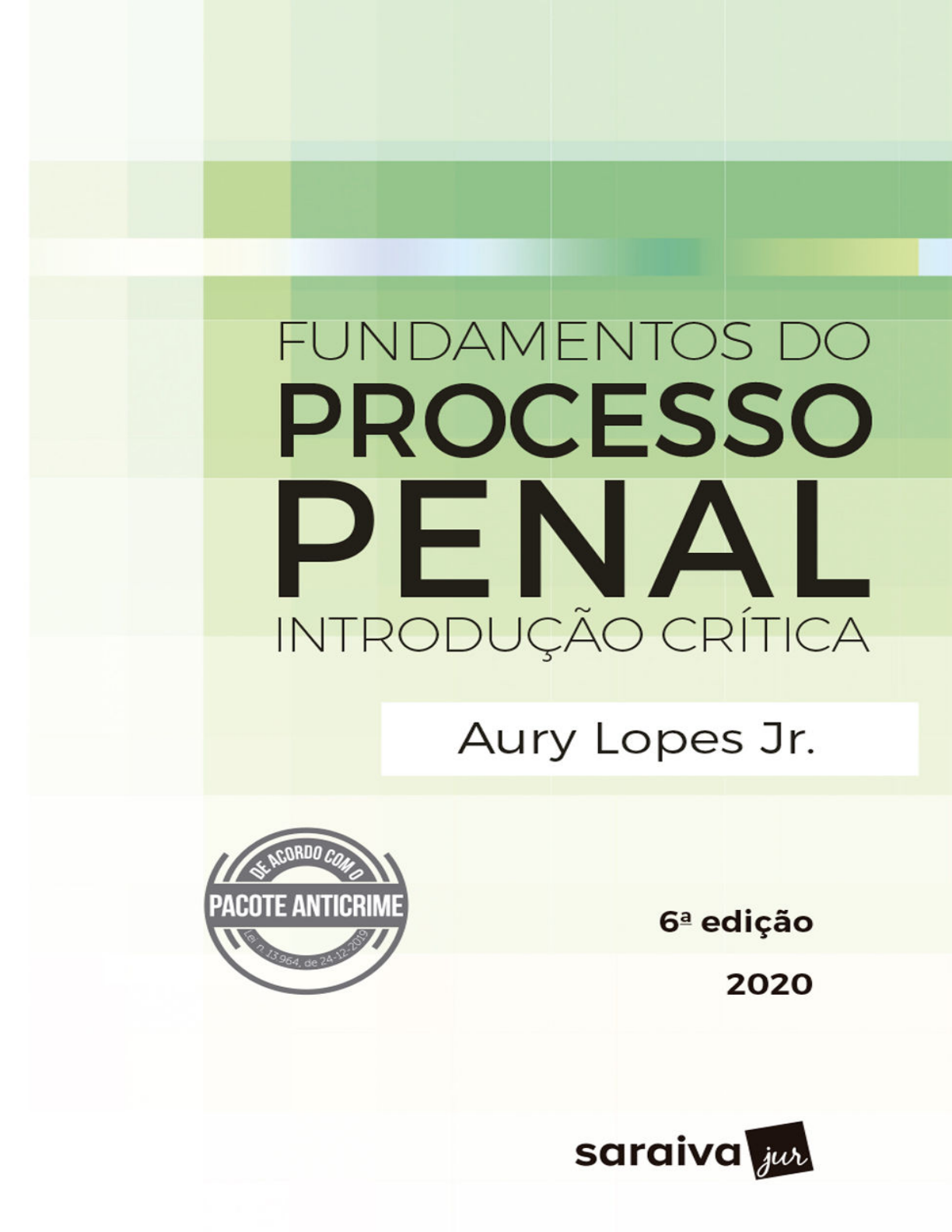 Nenhuma parte desta publicação poderá ser reproduzida por qualquer meio ou forma sem a prévia autorização da Editora Saraiva. A violação dos direitos autorais é crime estabelecido na Lei n. 9.610/98 e punido pelo artigo 184 do Código Penal. ISBN 9786555592306 Lopes Junior, Aury Fundamentos do Processo Penal / Aury Lopes Junior. 6. ed. São Paulo : Saraiva Educação, 2020. 344 p. Bibliografia 1. Processo penal 2. Processo penal Jurispridência - Brasil I. Título. 20-0140 CDD 340 Índices para catálogo sistemático: 1. Processo penal : Direito penal 343.1 Direção executiva Flávia Alves Bravin Direção editorial Renata Pascual Müller Gerência editorial Roberto Navarro Gerência de produção e planejamento Ana Paula Santos Matos Gerência de projetos e serviços editoriais Fernando Penteado Planejamento Clarissa Boraschi Maria (coord.) Novos projetos Melissa Rodriguez Arnal da Silva Leite Edição Aline Darcy Flôr de Souza Produção editorial Luciana Cordeiro Shirakawa Arte e digital Mônica Landi (coord.) | Amanda Mota Loyola | Camilla Felix Cianelli Chaves | Claudirene de Moura Santos Silva | Deborah Mattos | Fernanda Matajs | Guilherme H. M. Salvador | Tiago Dela Rosa | Verônica Pivisan Reis Planejamento Clarissa Boraschi Maria (coord.) Projetos e serviços editoriais Kelli Priscila Pinto | Marília Cordeiro | Mônica Gonçalves Dias Diagramação (Livro Físico) Fabricando Ideias Design Editorial | Markelangelo Design e Projetos Editoriais Revisão Izabel Bueno | Daniela Georgeto Capa Roney Camelo Livro digital (E-pub) Produção do e-pub Guilherme Henrique Martins Salvador Data de fechamento da edição: 15-2-2020 Dúvidas? Acesse sac.sets@somoseducacao.com.br Sumário Sobre o autor Prefácio (original da obra Introdução crítica ao processo penal) Prefácio Nota do autor – 6ª edição Texto em homenagem a Eduardo Couture e James Goldschmidt Capítulo 1 - O fundamento da existência do processo penal: instrumentalidade constitucional 1.1. Constituindo o processo penal desde a Constituição. A crise da teoria das fontes. A Constituição como abertura do processo penal 1.2. Superando o maniqueísmo entre “interesse público” versus “interesse individual”. Inadequada invocação do princípio da proporcionalidade 1.3. Direito e dromologia: quando o processo penal se põe a correr, atropelando as garantias 1.4. Princípio da necessidade do processo penal em relação à pena 1.5. Instrumentalidade constitucional do processo penal 1.6. A necessária recusa à teoria geral do processo. Respeitando as categorias próprias do processo penal. Quando Cinderela terá suas próprias roupas? 1.7. Inserindo o processo penal na epistemologia da incerteza e do risco: lutando por um sistema de garantias mínimas 1.7.1. Risco exógeno 1.7.2. Epistemologia da incerteza 1.7.3. Risco endógeno: processo como guerra ou jogo? 1.7.4. Assumindo os riscos e lutando por um sistema de garantias mínimas 1.8. A crise do processo penal: crise existencial; crise identitária da jurisdição; e a crise de (in)eficácia do regime de liberdade no processo penal 1.8.1. A crise existencial do processo penal: é (ainda) o processo o caminho necessário para chegar à pena? 1.8.2. Crise identitária da jurisdição penal: um juiz para que(m)? A incompreendida imparcialidade judicial 1.8.3. A crise de (in)eficácia do regime de liberdade no processo penal. Banalização da prisão preventiva. O problema da execução antecipada da pena 1.8.4. É o plea bargaining um remédio para a crise do processo penal? Ou um veneno mortal? Analisando a proposta do pacote anticrime161 1.8.4.1. Ampliação dos espaços de consenso é uma tendência inexorável 1.8.4.2. As justificativas para o implemento do plea bargaining 1.8.4.3. A experiência negocial em Portugal, Espanha e Itália e o Projeto de Lei n. 8.045 (Novo CPP), que foi desconsiderado 1.8.4.4. Fim da produção de provas: a supremacia da investigação preliminar 1.8.4.5. Supervalorização da confissão: tortura, plea bargaining, o (ab)uso da prisão cautelar como instrumento de coerção 1.8.4.6. Desconstruindo o mito fundante da negociação: ilusão de voluntariedade e consenso 1.8.4.7. A desconstrução do argumento economicista: o custo de um superencarceramento 1.8.4.8. Concluindo: a proposta substitutiva ao Projeto Anticrime está na retomada do PL n. 8.045 (Novo CPP) com ajustes Capítulo 2 - Teorias da ação e das condições da ação. A necessidade de construção de uma teoria da acusação 2.1. Para introduzir o assunto... 2.2. Ação processual penal – ius ut procedatur – desde a concepção de pretensão acusatória. Por que não existe “trancamento da ação penal”? 2.3. Natureza jurídica da ação processual penal. Caráter público, autônomo e abstrato (ou concreto)? 2.4. Condições da ação processual penal (e não processual civil!) 2.4.1. Quando se pode falar em condições da ação? 2.4.2. Condições da ação penal: equívocos da visão tradicional- civilista 2.4.3. Condições da ação penal segundo as categorias próprias do processo penal 2.4.3.1. Prática de fato aparentemente criminoso – fumus commissi delicti 2.4.3.2. Punibilidade concreta 2.4.3.3. Legitimidade de parte 2.4.3.4. Justa causa 2.4.3.4.1. Justa causa: existência de indícios razoáveis de autoria e materialidade 2.4.3.4.2. Justa causa: controle processual do caráter fragmentário da intervenção penal 2.4.4. Outras condições da ação processual penal 2.5. A proposta: teoria da acusação. Reflexos na Santa Trindade “acusação-jurisdição-processo” 2.5.1. A necessidade: inadequações decorrentes do conceito tradicional de “ação”. O conceito de “acusação” 2.5.2. Requisitos de admissibilidade da acusação 2.5.3. Reflexos nos conceitos de jurisdição e processo Capítulo 3 - Jurisdição penal. A posição do juiz como fundante do sistema processual 3.1. Sistema acusatório 3.2. Sistema inquisitório 3.3. O