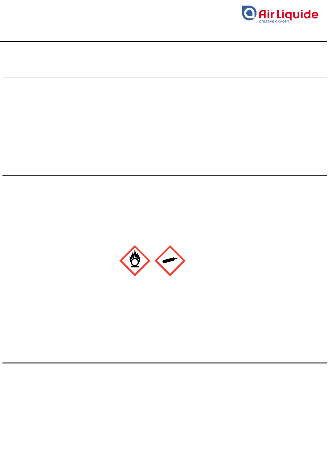 Ficha de Informações de Segurança de Produtos Químicos De acordo com ABNT NBR 14725-4: 2014 PRODUTO OXIGÊNIO COMPRIMIDO, LASAL 2003, OXIGÊNIO MEDICINAL,ALOX, OXIGÊNIO N40, OXIGÊNIO N60 Página: 1/9 Versão: 1.2 Data de revisão: 11/11/2020 1. Identificação do Produto e da Empresa 1.1. Identificação do produto Nome comercial : OXIGÊNIO COMPRIMIDO, LASAL 2003, OXIGÊNIO MEDICINAL,ALOX, OXIGÊNIO N40, OXIGÊNIO N60 Código do produto : 23017 Uso recomendado : Industrial e Medicinal 1.2. Identificação da Empresa AIR LIQUIDE BRASIL LTDA Av. Morumbi, 8234 - 3º Andar - Santo Amaro 04703-901 Sâo Paulo T (11) 5509-8300 2. Identificação de perigos 2.1. Classificação da substância ou mistura Classificação de acordo com GHS BR (ABNT NBR 14725-2:2019) Gases Oxidantes, Categoria 1 Gases sob pressão: Gás comprimido 2.2. Elementos apropriados de rotulagem GHS BR rotulagem Pictogramas de perigo (GHS BR) : GHS03 GHS04 Palavra de advertência (GHS BR) : Perigo Frases de perigo (GHS BR) : H270 - Pode provocar ou agravar um incêndio, oxidante H280 - Contém gás sob pressão: pode explodir sob ação do calor Frases de precaução (GHS BR) : P220 - Mantenha/guarde afastado de roupa / … / materiais combustíveis P244 - Mantenha válvulas e conexões isentas de óleos e graxas. P370+P376 - Em caso de incêndio: contenha o vazamento se puder ser feito com segurança P403 - Armazene em local bem ventilado. P410+P403 - Mantenha ao abrigo da luz solar. Armazene em local bem ventilado. 2.3. Outros perigos que não resultam em uma classificação Nenhuma informação adicional disponível 3. Composição e informações sobre os ingredientes 3.1. Substância Nome comercial : OXIGÊNIO COMPRIMIDO, LASAL 2003, OXIGÊNIO MEDICINAL,ALOX, OXIGÊNIO N40, OXIGÊNIO N60 nº CAS : 7782-44-7 Fórmula : O2 Nome Identificação do produto % Oxigênio Comprimido (Principal constituinte) (nº CAS) 7782-44-7 100 3.2. Mistura Não aplicável Ficha de Informações de Segurança de Produtos Químicos De acordo com ABNT NBR 14725-4: 2014 PRODUTO OXIGÊNIO COMPRIMIDO, LASAL 2003, OXIGÊNIO MEDICINAL,ALOX, OXIGÊNIO N40, OXIGÊNIO N60 Página: 2/9 Versão: 1.2 Data de revisão: 11/11/2020 4. Medidas de primeiros-socorros 4.1. Descrição das medidas de primeiros socorros Medidas gerais de primeiros-socorros : Em caso de mal estar, consulte um médico. Medidas de primeiros-socorros após inalação : Remova a vítima para área não contaminada usando aparelho de respiração autônoma. Mantenha a vítima aquecida e descansada. Chame um médico. Realize ressuscitação cardiopulmonar se a respiração cessar. Remover a vítima para área não contaminada. Remova a pessoa para local ventilado e a mantenha em repouso numa posição que não dificulte a respiração. Contate imediatamente um CENTRO DE INFORMAÇÃO TOXICOLÓGICA ou um médico. Medidas de primeiros-socorros após contato com a pele : Não são esperados efeitos adversos deste produto. Medidas de primeiros-socorros após contato com os olhos : Não são esperados efeitos adversos deste produto. Medidas de primeiros-socorros após ingestão : A ingestão não é considerada rota potencial de exposição. 4.2. Sintomas e efeitos mais importantes, agudos ou tardios Sintomas/efeitos em caso de inalação : Pode provocar sonolência ou vertigem. Sintomas/efeitos em caso de contato com a pele : Nenhum em condições normais. O contato com o gás liquefeito pode causar queimaduras por congelamento. Sintomas/efeitos em caso de contato com os olhos : Risco de lesões oculares graves. Sintomas/efeitos em caso de ingestão : Nenhum em condições normais. 4.3. Indicações sobre cuidados médicos urgentes e tratamentos especiais necessários Notas ao médico : Tratar sintomaticamente Outro conselho médico ou tratamento : Nenhum. 5. Medidas de combate a incêndio 5.1. Meios de extinção Meios de extinção adequados : Borrifar com água ou aplicar névoa. Pó químico seco, CO2, água pulverizada ou espuma comum. Inunde a área do incêndio com água e a distância. Meios de extinção inadequados : Não use jatos d'água para extinguir. pó químico seco. Dióxido de carbono (CO2). 5.2. Perigos específicos decorrentes da substância ou mistura Perigo de incêndio : Contém gás sob pressão: pode explodir sob ação do calor. Pode provocar ou agravar um incêndio, oxidante. Em contato com materiais inflamáveis pode causar incêndio. Perigo de explosão : Perigo de explosão sob a ação do calor. Explosivo quando misturado com matérias combustíveis. Reatividade : Sem perigo de reatividade, além dos efeitos descritos nas sub-seções abaixo. 5.3. Recomendações para a equipe de combate a incêndio Medidas preventivas contra incêndios : Manter afastado de materiais combustíveis. Instruções de combate a incêndios : Não jogue água diretamente no ponto de vazamento ou nos dispositivos de segurança; pode ocorrer congelamento. Em caso de incêndio de grandes proporções: Abandone a área. Combata o incêndio à distância, devido ao risco de explosão. Combater o incêndio a uma distância segura e de um local protegido. Não permita a entrada de água nos recipientes, pode ocorrer reação violenta. Não entrar na área de incêndio sem equipamento protetor adequado, incluindo proteção respiratória. Proteção durante o combate a incêndios : Não entrar na área de incêndio sem equipamento protetor adequado, incluindo proteção respiratória. Equipamento autônomo de respiração. Métodos específicos. : Use medidas de controle de incêndio adequadas para o fogo circundante. A exposição ao fogo e irradiação de calor podem causar a ruptura de recipientes de gás. Resfrie recipientes em perigo com jatos d'água a partir de uma posição protegida. Evite que a água usada em casos de emergêcia entre no sistema de esgoto e de drenagem. Se possível,pare o fluxo do produto. Use água borrifada ou névoa para eliminar fumaça de fogo, caso p