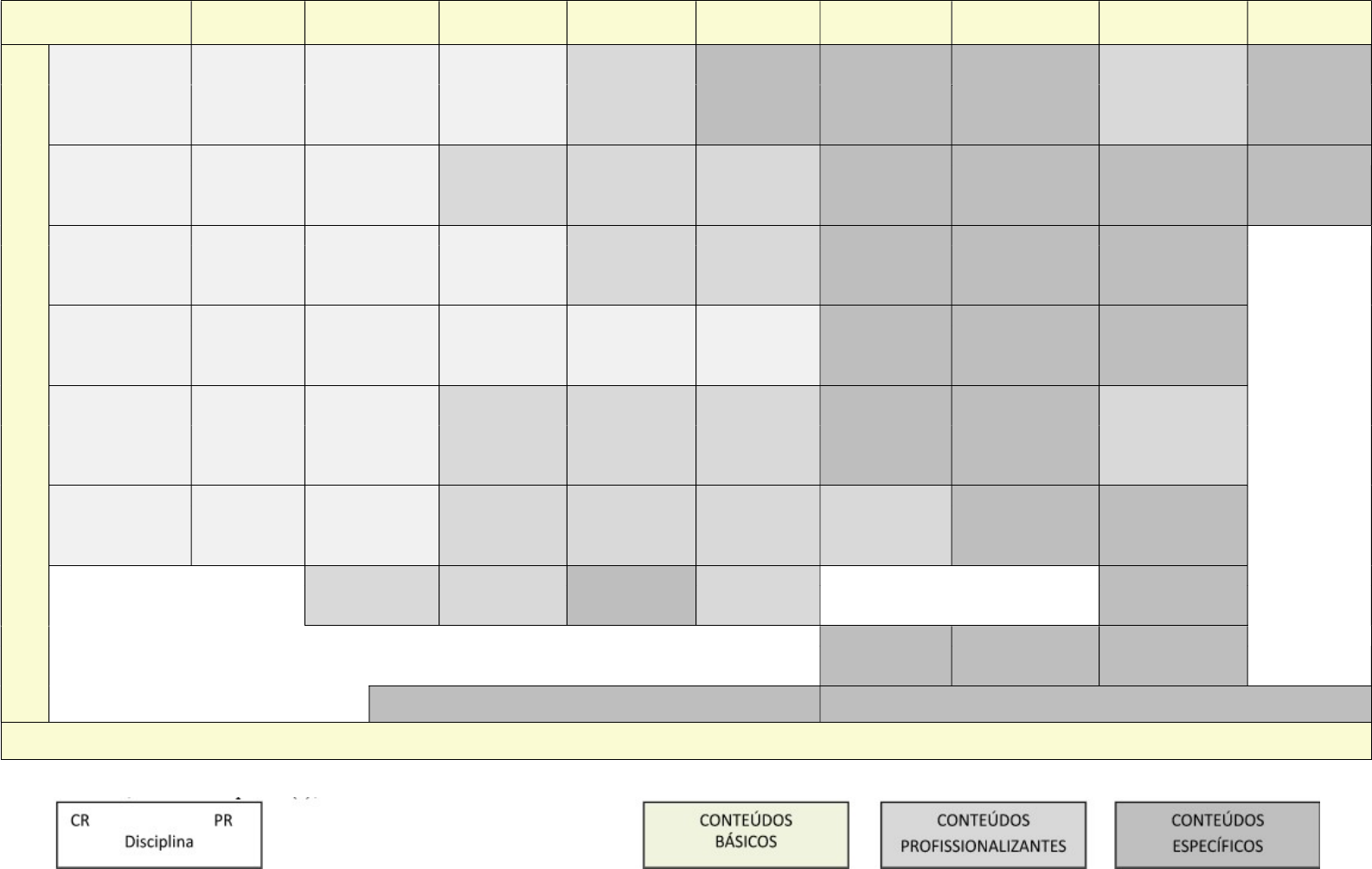 17. FLUXOGRAMA 1º Período 2º Período 3º Período 4º Período 5º Período 6º Período 7º Período 8º Período 9º Período 10º Período A 4 4 A1 4 A2 D1 4 A3 4 A4 F2 3 C5 3 C5 3 G6 2 E2 12 80%CHT Cálculo I Cálculo II Cálculo III Equações Diferenciais Lineares Cálculo Numérico Sist. de Esgotamento Sanitário Sist. de Abastecimento de Água Sist. de Drenagem Urbana Licitação e Contratos Admin. Estágio Supervisionad o B 4 4 2 B2 4 B3 4 F1 C1 4 B5 4 B6 E6 3 B7 E7 2 B7 E8 2 G9 Ciências do Ambiente Desenho Técnico Desenho Univ. e Acessibilidade Projeto Arquitetônico Materiais de Const. I Materiais de Const. II Estrut. de Concreto Armado I Estrut. de Concreto Armado II Projeto de Estrut. de Fundações TCC II C 2 4 A1 4 4 D3 4 C4 2 C5 4 B6 4 D6 C7 D7 2 B4 C7bbb Geologia Geral Estatística Básica Fund. da Economia e Administração Fenômenos de Transporte I Hidráulica Aplicada Laboratório de Hidráulica Técnicas de Construção I Técnicas de Construção II Modelagem da Inform. da Construção D 4 4 A1 4 D2 4 D3 4 D4 4 D4 4 C5 4 E6 4 C8 Geom. Analítica e Álgebra Linear Física I Física II Física III Laboratório de Física Inst. Elét. de Baixa Tensão Inst. Hidráulicas e Sanitárias Estruturas de Aço I Orçamento e Planej. de Obras E 2 2 4 D1 D2 3 E3 4 E4 4 E5 4 E6 4 F7 2 C3 Int. à Engenharia Civil Instituições de Direito Mecânica Geral I Anál. de Estruturas Isostáticas Resistência dos Materiais I Resistência dos Materiais II Anál. de Estruturas Hiperestáticas Fundações e Estruturas de Contenção Empreendedorism o F 4 4 2 4 C2 3 E1 4 C1 E5 4 F6 3 B4 C7 A6 A7 3 B7 C8 Química Geral Introdução à Computação Metodologia Científica Planej. de Sistemas de Transportes Segurança do Trabalho Mecânica dos Solos I Mecânica dos Solos II Projeto Interdisciplinar I Projeto Interdisciplinar II G 4 B2 4 G3 4 G3 4 C5 2 F3 70%CHT Topografia Geoprocessame nto Estradas Hidrologia Aplicada TCC I H 4 VAR 4 VAR 8 VAR Disciplinas optativas Disciplinas optativas Disciplinas optativas Realizadas ao longo do curso Atividades Complementares Flexíveis: 6 CR Atividades Acadêmicas de Extensão: 6 CR CARGA HORÁRIA TOTAL DO CURSO (CHT): 3.720 Legenda: CR: Créditos; PR: Pré-requisito(s); VAR: Variável