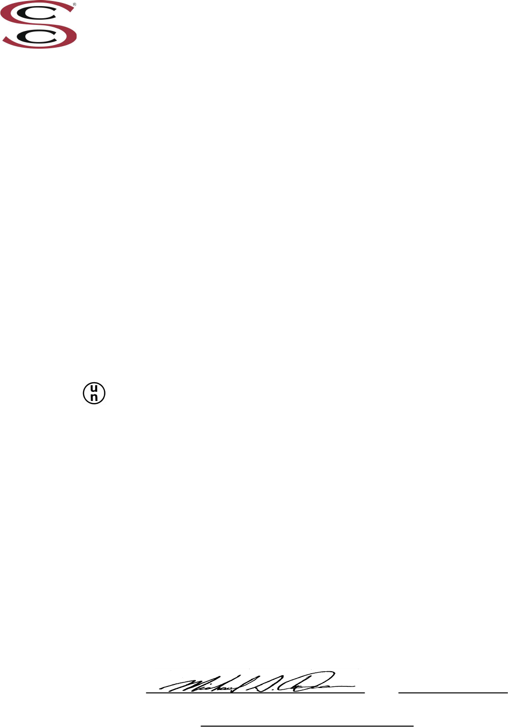 Test Report for Non-Bulk Steel Packaging in accordance with the UN Recommendations on the Transport of Dangerous Goods, IMDG Code, ICAO Technical Instructions, IATA Dangerous Goods Regulations and the U.S. Code of Federal Regulations (CFR) Title 49, Part 178. Test Facility: Closed-head Straight-sided (Tighthead) Steel Drum5.3 1A1/X1.6/300/22/USA/M**** Gallon Testing Representative's Signature Testing Representative's Title Date Design Qualification 412 Mason Street U.N. Technician 11/8/2022 Cleveland Steel Container Corporation Performance Oriented Package Testing Certification Cleveland Steel Container Corporation Date Certified: 11/8/2022 CSC Design Number: T-048 The following Cleveland Steel Container Manufacturing Locations are registered with the United States Department of Transportation, and are eligible to appear in the above UN marking sequence in place of M**** Packagings which differ from the above described design type only in their lesser design height are covered under this testing certification, in accordance with 49 Code of Federal Regulations, Part 178, Subpart M, Section 178.601(c)(4)(v). Therefore, the tested 5.3 Gallon design referenced above covers designs of lesser height and rated capacity. M4369 - Cleveland Steel Container Corporation, Peotone, Illinois M4460 - Cleveland Steel Container Corporation, Niles, Ohio M4461 - Cleveland Steel Container Corporation, Quakertown, Pennsylvania M5845 - Cleveland Steel Container Corporation, Kilgore, Texas Niles, Ohio 44446 330-544-2271 2022- The samples subjected to the performance testing in this report were closed in accordance with the UN Closing Instruction Manual available online at www.cscpails.com using the following document(s): QA-FM-L255 Date Certified: 11/8/2022 CSC Design Number: T-048 2022- Page 2 of 5 Manufactured by: Cleveland Steel Container Corporation, Streetsboro, Ohio Container (Drum) Description Closed-head Straight-sided (Tighthead) Steel DrumDrum Type: Triple Seam (3 folds on bottom circumferential seam or chime). Electric lap-welded side seam.Manufacturing Method: Gauge (Top/Cover): 24 Gasket Material: Water-based sealant Fitting Type: 2" & 3/4" V.G. II Steel Drum w/ Polyethylene Irradiated Gaskets Package Tare Weight: 4.90 lbs. Bead: No beads Height of Pail: 14.5 Maximum Capacity: 5.66 Gauge (Body): 24 Gauge (Bottom): 24 gal. Top End Description: Manufactured by: Cleveland Steel Container Corporation, Niles, Ohio Material: Steel Minimum Thickness: 0.019 inches Minimum Wall Thickness: 0.019 inches Minimum Bottom Thickness: 0.019 inches Inside Diameter at Top: 10.5 inches Inside Diameter at Bottom: 11.25 inches Fitting Material: Steel Fitting Weight: 0.30 Inches Fitting Description Fitting Manufacturer: Rieke Packaging Systems™ lbs. Date Certified: 11/8/2022 CSC Design Number: T-048 2022- Page 3 of 5 LEAKPROOFNESS TEST SPECIFICATIONS AND RESULTS (49 CFR - §178.604) HYDROSTATIC PRESSURE TEST SPECIFICATIONS AND RESULTS (49 CFR - §178.605) Sample # Result Comment 7 8 9 Pass Pass Pass No Leak No Leak No Leak Test Pressure: 30Sample Size: 3 Samples Test Duration: 5 MinuteskPa Sample # Result Comment 10 11 12 Pass Pass Pass No Leak No Leak No Leak 3003 Samples Water 5 MinuteskPa Filling Substance: Air Test Pressure:Sample Size: Test Duration:Filling Substance: Criteria for Passing the Test: A container successfully passes the Leakproofness test if for each sample tested, there is no leakage of air from the container. Criteria for Passing the Test: A container successfully passes the Hydrostatic Pressure test if for each sample tested, there is no leakage of liquid from the container. DROP TEST SPECIFICATIONS AND RESULTS (49 CFR - §178.603) Drop Height: 95 Drop Weight: 51.2 Sample Size: 3 Samples/Orientation ( 6 Samples Total) Filling Substance: Water filled to 98% maximum capacity lbs.Packing Group: X Specific Gravity: 1.6 Sample # Result Comment 1 2 3 Pass Pass Pass No Leak No Leak No Leak Sample # Result Comment 4 5 6 Pass Pass Pass No Leak No Leak No Leak Center of Gravity on Bottom Chime (Circumferential Seam) at Side Seam Center of Gravity on Cover at Side Seam or w/ fitting directly over impact at 6 o'clock Criteria for Passing the Test: A container is considered to successfully pass the drop test if for each sample tested, the container does not leak when equilibrium has been reached between internal and external pressures. Inches *** See Appendix A - Test Calculations for Weight of Test Package and Drop Test Height Date Certified: 11/8/2022 CSC Design Number: T-048 2022- Page 4 of 5 STACK TEST SPECIFICATIONS AND RESULTS (49 CFR - §178.606) Sample # Result Comment 13 14 15 Pass Pass Pass No Deformation or leaks No Deformation or leaks No Deformation or leaks SAMPLE SIZE: 3 Samples FILLING SUBSTANCE: Water Calculated Gross Weight of Each Test Package 46.3 lbs. X 1.6 = 79.0 lbs.+ 4.90 lbs. Criteria for Passing the Test: A container successfully passes the Stacking test if for each sample tested, there is no leakage of liquids and there is no deterioration that could adversely affect transport safety or any distortion liable to reduce its strength or cause instability in stacks of packages. TEST METHOD: Static Load 632Load (A) = 9 - 1( ) * [ 4.90 + ( *1.6 ) ] = lbs.5.66 * 8.34 * 0.98 Load (A) = (n - 1) * [ w + ( s * v * 8.34 * 0.98 ) ] Where: n = minimum number of containers required to reach 3 meters (118.11 inches). w = maximum weight of one empty container in pounds. v = actual capacity of container (rated capacity + outage) in gallons. s = specific gravity of lading. A = applied load in pounds. And: 8.34 corresponds to the weight in pounds of 1.0 gallons of water. 0.98 corresponds to the maximum filling percentage of the maximum capacity for liquids. Number of containers(n), reaching 118.11 inches in height = 9 Height of Container = 14.5 118.1 Inches / 14.5 =Inches containers Inches VIBRATION TEST SPECIFICATIONS AND RESULTS (49 CFR - §178.608) Sample # Result Comment 16 17 18 Pass Pass Pass No l