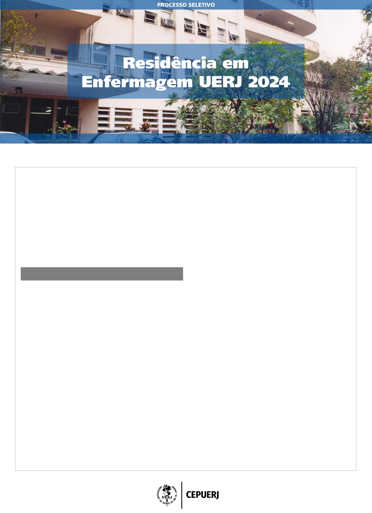 PROVA DISCURSIVA PROIBIDO FOLHEAR ESTE CADERNO ANTES DA AUTORIZAÇÃO PARA O INÍCIO DA PROVA QUALQUER ASSINATURA, RUBRICA OU SINAL DE IDENTIFICAÇÃO, NAS FOLHAS DESTE CADERNO (FRENTE / VERSO), ACARRETARÁ EM SUA ELIMINAÇÃO. Este caderno contém 01 questão. Duração máxima da prova: 3 horas Autorização para deixar o local de prova: após 1 hora do início da prova CONFIRA SEUS DADOS NA CONTRACAPA 1) Na mesa, são permitidos apenas este caderno e a caneta esferográfica transparente de tinta preta ou azul SEM A TAMPA. Demais pertences devem estar devidamente guardados embaixo da carteira. 2) Verifique, somente após autorização do início da prova, a numeração das questões e das páginas (havendo irregularidade no material, comunique ao fiscal de sala). 3) As respostas deverão ser escritas com caneta esferográfica transparente de tinta azul ou preta. 4) Somente as respostas contidas dentro do espaço numerado serão objeto de correção. 5) Não arranque, destaque ou rasgue nenhuma folha deste caderno nem parte dela. 6) Terminada a prova, entregue este caderno ao fiscal de sala. 7) Os três últimos candidatos somente poderão deixar a sala juntos, até que o último entregue a prova. Os três deverão assinar a ata de sala, atestando a idoneidade e a regularidade da finalização da prova. 8) Este caderno NÃO poderá ser levado pelo candidato em nenhum momento. Atenção: Por motivo de segurança, o candidato NÃO poderá anotar suas respostas em nenhum outro local que não no espaço numerado e no rascunho deste caderno. Todos os casos e nomes utilizados nas provas do CEPUERJ são fictícios. INSTRUÇÕES DA PROVA DISCURSIVA ORGANIZADOR RESIDÊNCIA ENFERMAGEM UERJ 2024 PROVA DISCURSIVA Página 2 de 5 ORGANIZADOR ORIENTAÇÕES Para responder à questão, siga RIGOROSAMENTE os Critérios de Avaliação do Edital nº 13, de 21 de agosto de 2023, e as orientações a seguir: 1. Organização da resposta A resposta deve conter: introdução ao elemento descrito e a descrição propriamente dita. A resposta deve respeitar a quantidade de linhas a seguir: mínimo de linhas: 20; máximo de linhas: 40. 2. Domínio do tema 2.1. Respeito ao enunciado A resposta deve responder ao comando da questão. 2.2. Pertinência A resposta deve ser desenvolvida tendo como base as seguintes referências: COREN-SP. Anotações de enfermagem. 2015 e COREN-SP. Processo de Enfermagem. 2022. 3. Inteligibilidade A escrita da resposta deve: - ser legível (de fácil identificação das letras e palavras); - ser clara na exposição das ideias (ordem no desenvolvimento do raciocínio); - apresentar siglas por extenso, como exemplo: Organização Mundial da Saúde (OMS). QUESTÃO: Respeitando os critérios de avaliação, redija um texto sobre o Registro de Enfermagem, contendo a definição do conceito, os autores da equipe de enfermagem envolvidos na Anotação de Enfermagem e na Evolução de Enfermagem, bem como seis regras para a elaboração da anotação. (20pts) 1 2 3 4 5 6 7 8 9 10 11 12 13 RESIDÊNCIA ENFERMAGEM UERJ 2024 PROVA DISCURSIVA Página 3 de 5 ORGANIZADOR 14 15 16 17 18 19 20 21 22 23 24 25 26 27 28 29 30 31 32 33 34 35 36 37 38 39 40 RESPEITE O LIMITE DE LINHAS NÃO USE O ESPAÇO EM BRANCO RESIDÊNCIA ENFERMAGEM UERJ 2024 PROVA DISCURSIVA Página 4 de 5 ORGANIZADOR QUADRO DE CORREÇÃO (USO EXCLUSIVO DA BANCA) Critérios de avaliação 1. Organização da resposta 2. Domínio do tema 3. Inteligibilidade TOTAL 2.1. Respeito ao enunciado 2.2. Pertinência Pontuação (5pts) (5pts) (5pts) (5 pts) (20pts) Nota NÃO USE O ESPAÇO EM BRANCO RESIDÊNCIA ENFERMAGEM UERJ 2024 PROVA DISCURSIVA Página 5 de 5 ORGANIZADOR