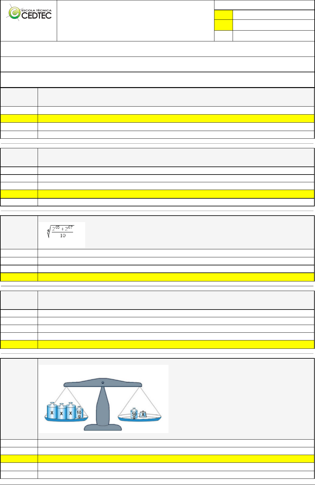Pincel Atômico - 26/11/2024 11:55:22 1/2 GILSON LUCAS DA COSTA DO NASCIMENTO Exercício Caminho do Conhecimento - Etapa 30 (34126) Atividade finalizada em 21/11/2024 13:56:34 (2807239 / 1) LEGENDA Resposta correta na questão # Resposta correta - Questão Anulada X Resposta selecionada pelo Aluno Disciplina: MATEMÁTICA - 1ª ETAPA [1263816] - Avaliação com 5 questões, com o peso total de 10,00 pontos [capítulos - 7] Turma: Supletivo EJA: Ensino Médio - Grupo: EAD EJA - 08/24 - SEnsi0A100824 [139120] Aluno(a): 91659779 - GILSON LUCAS DA COSTA DO NASCIMENTO - Respondeu 3 questões corretas, obtendo um total de 6,00 pontos como nota [364868_251417] Questão 001 (36.3-2):34 é igual a: 3-8 3-3 X 1 0 [364870_236188] Questão 002 Resolvendo corretamente a inequação 3x + 19 19 x