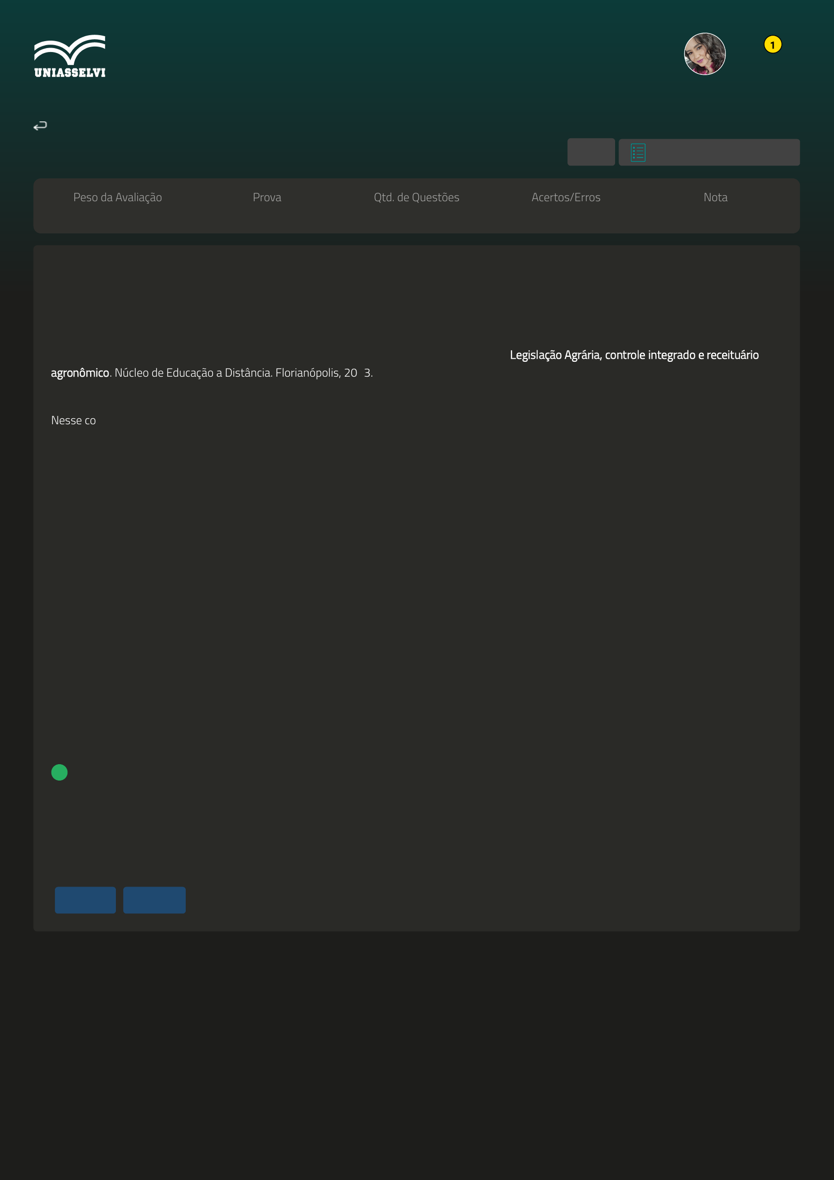 GABARITO | Avaliação I - Individual (Cod.:987851) Peso da Avaliação 2,00 Prova 90676187 Qtd. de Questões 10 Acertos/Erros 9/1 Nota 9,00 Questão 3 No contexto do Rio Grande do Sul, a legislação estadual desempenha um papel fundamental na proteção da agricultura e do meio ambiente contra as pragas agrícolas. Uma das leis relevantes nesse cenário é a Lei nº 7.747/1982, que institui o Programa Estadual de Controle de Pragas. Fonte: adaptado de: WAURECK, Ariadne; ROTERS, Diego Fernando; SILVA, Luana Maria Alves. Legislação Agrária, controle integrado e receituário agronômico. Núcleo de Educação a Distância. Florianópolis, 2023. Nesse contexto, com relação à legislação estadual e ao Programa Estadual de Controle de Pragas do Rio Grande do Sul, analise as afirmativas a seguir: I. A normativa adota o conceito de controle integrado de pragas, buscando usar diferentes estratégias e práticas para o manejo das pragas agrícolas. II. O principal objetivo do programa é proteger as culturas agrícolas das pragas que podem causar danos significativos à produção e à economia rural. III. O programa prevê ações coordenadas entre os órgãos estaduais e demais entidades envolvidas no setor agrícola, buscando uma atuação integrada no controle de pragas. IV. A legislação não incentiva a pesquisa científica na área de controle de pragas e a capacitação dos agricultores e técnicos agrícolas, visando disseminar conhecimentos atualizados sobre as melhores práticas para o manejo das pragas. É correto o que se afirma em: A II e IV, apenas. B I, II e III, apenas. C III e IV, apenas. D I, II, III e IV. VOLTAR A+ Alterar modo de visualização Anterior Próxima Danielle Pereira Camargo Agronomia (8321760) 1
