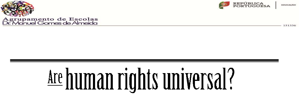 Nome: __________________________________________No. ___________ 11º:2 Data: ____/ 11/16 Classificação: ________________________ A Profª.: _________________O E.E.: _______________ English Test - Year 11 – November 2016 Shashi Tharoor * answers some frequently asked questions Universal Declaration of Human Rights is half a century old, but critics are still asking whether anything in our multicultural, diverse world can be truly universal. Some ask, isn’t human rights an essentially Western concept, ignoring the very different cultural, economic and political realities of the South? Can the values of the consumer society be applied to societies that have nothing to consume? Isn’t talking about universal rights rather like saying that the rich and the poor both have the same right to fly first-class and to sleep under bridges? At the risk of sounding frivolous: when you stop a man in traditional dress beating his wife, are you upholding her human rights or violating his? The fact is that there are serious objections to the concept of universal human rights. The first is philosophical. All rights and values are defined and limited by cultural perceptions. There is no universal culture, therefore there are no universal human rights. Some philosophers have objected that the concept is founded on an individualistic view of people, whose greatest need is to be free from interference by the state. Non-Western societies often have a communitarian ethic which sees society as more than the sum of its individual members and considers duties to be more important than rights. In Africa it is usually the community that protects and nurtures the individual: ‘I am because we are, and because we are therefore I am.’ Then there is the usual North/South argument. The Universal Declaration was adopted at a time when most Third World countries were still under colonial rule. ‘Human rights’ are only a cover for Western intervention in the affairs of the developing world. Developing countries, some also argue, cannot afford human rights since the tasks of nation-building and economic development are still unfinished. Many also object to specific rights which they say reflect Western cultural bias: the right, for instance, to political pluralism, the right to paid vacations (always good for a laugh in the sweatshops of the developing world) and, most troublesome of all, the rights of women. How can women’s rights be universal in the face of widespread divergences of cultural practice, when in some societies marriage is seen not as a contract between two individuals but as an alliance between lineages? In addition, some religious leaders argue that human rights can only be acceptable if they are founded on transcendent values of their faith, sanctioned by God. The Universal Declaration claims no such heritage – a draft reference to the Creator was consciously left out of the final text. How can one respond to these objections? Concepts of justice and law, the legitimacy of government, the dignity of the individual, protection from oppressive or arbitrary rule and participation in the affairs of the community are found in every society on the face of this earth. The challenge of human rights is to identify the common denominators rather than to throw up one’s hands at the impossibility of universalism. * Shashi Tharoor is the author of five books of fiction and non-fiction, including The Great Indian Novel and, most recently, India: From Midnight to the Millennium. He is a senior UN official in the Office of Secretary-General Kofi Annan. In New Internationalist, issue 332, March 2001, abridged The iSLCollective.com I. A. FIND EVIDENCE in the text for the statements below: (24 pontos) 1. African societies highlight the role of community. 2. The concept of human rights can’t be implemented in developing countries. 3. The Universal Declaration of Human Rights is beyond any religious perspectives. 4. The call is to look for the shared traits of the Declaration. B. Explain the meaning of the expressions from the text: (36 pontos) 1. At the risk of sounding frivolous… (2nd p.) 2. The fact is that there are serious objections… (3rd p.) 3. ‘Human rights’ are only a cover for Western intervention in the affairs of …. (5th p.) 4. ... always good for a laugh in the sweatshops of the developing world…(6th p.) C. FIND EQUIVALENTS for the following words (between the 2nd and 6th paragraphs of the text). (20 pontos) 1. backing - 2. supports - 3. prejudice - 4. general - 5. ancestry – D. Who/ what do these words refer to? (20 pontos) 1. our - ________________________ 2. his - ________________________ 3. her - ________________________ 4. first - ______________________ 5. whose - ____________________ E. Over to you. - Write no more than 50 words. (30 pontos) “Are Human Rights universal?” Express your point of view on the matter. II. A. REWRITE the next sentences, beginning them as suggested. Do not change the original meaning. (30 pontos) 1. Developing countries cannot afford human rights since the tasks of nation-building and economic development are still unfinished. Human rights __________________________________________________________ 2. Western Countries established the UDHR because they feared another World War. If ___________________________________________________________________ 3. Third World countries were under colonial rule so they couldn’t express their opinion on the UDHR. If ____________________________________________________________________ iSLCollective.com 4. Shashi Tharoor demanded reparation payments from the UK to India over 200 years of colonial rule. The UK ________________________________________________________________________ 5. People agree that our world is very diverse. It _____________________________________________________________________________ 6. People believe that African societies highlighted the role of community. African societies ______________