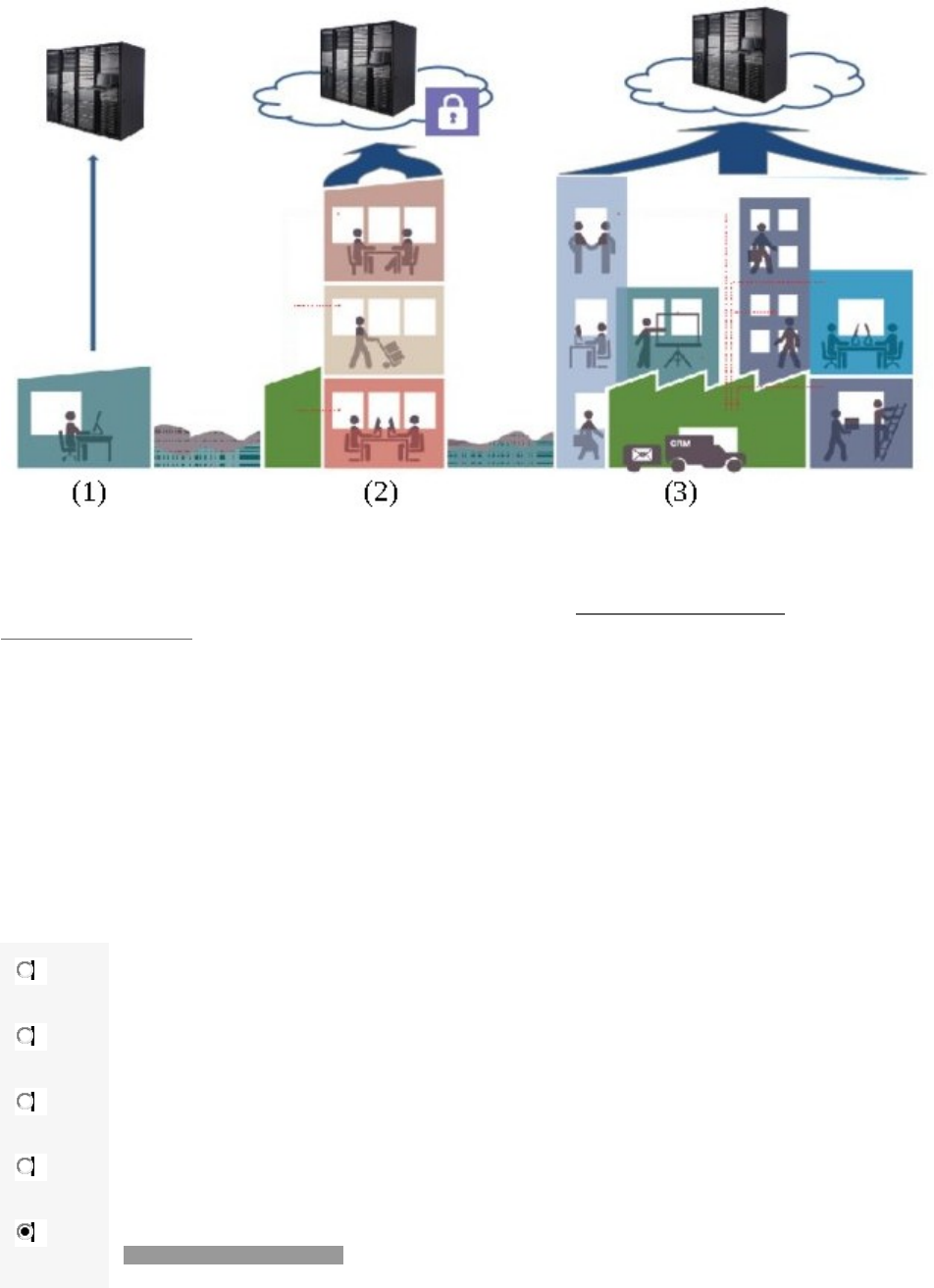 III. No item (3) é apresentado o modelo de implementação de nuvem híbrida, onde os recursos de TI oferecidos por empresas especializadas são compartilhados por várias unidades de negócio de uma mesma corporação.