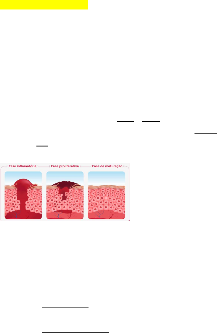 MANEJO DE FERIDAS A cicatrização é um processo biológico onde há a restauração do tecido lesionado. E é divida em quatro fases, a inflamatória, a de debridamento, de reparo e maturação. Fase inflamatória A fase inflamatória se dá pela resposta protetora do tecido, é caracterizada pela presença de células inflamatórias e tem duração de aproximadamente 5 dias após a produção da ferida. Os 4 sinais da inflamação são calor e rubor que são responsáveis por alterações vasculares que determinam um acúmulo sanguíneo no local da lesão. O edema que se deve à exsudação dos fluídos e a dor que é produzida pela atuação de determinados mediadores sobre as terminações nervosas. Fase de Granulação Se inicia já no segundo dia após o ocorrido da lesão, e pode se prolongar até o 14º dia. Ela é responsável pela reparação de tecido conjuntivo e do epitélio (ocorre formação de tecidos de granulação com proliferação de endotélios) Fibroplastia: origina-se a partir dos fibroblastos, que constituem as células mais importantes na produção da matriz dérmica; Neovascularização: fornece metabólicos e oxigênio para nutrir o tecido de reparação; Fase de Reparo É a ultima fase da cicatrização e sua duração pode chegar a meses e é responsável pelo aumento da força de tensão pela diminuição da cicatriz. Durante a remodelagem ocorre a diminuição da atividade celular e do número dos vasos sanguíneos, além da perda de número de fibroblastos, levando à maturação cicatricial. Ao final do processo a atividade celular diminui, o tecido conjuntivo cicatricial se torna rico em colágeno, porém pobre em células e vasos, sem folículos pilosos e sem glândulas sudoríparas ou sebáceas. Fundamentos dos Tratamentos Cobrir temporariamente a ferida; Avaliar o animal traumatizado; Estabilizar sua condição; Depilar e preparar assepticamente a área ao redor do ferimento; Tratar o ferimento; Debridar o tecido morto e remover debris estranhos do ferimento; Lavar completamente a ferida; Fornecer drenagem a ferida; Promover a cicatrização ao estabilizar e proteger a ferida limpa; Realizar o fechamento adequado da ferida. Desbridamento É a parte de remoção do tecido morto da ferida, é importante o desbridamento, pois o tecido necrótico pode retardar a cicatrização. O desbridamento envolve a remoção do tecido morto ou danificado, remoção de corpos estranhos, remoção de microrganismos. O objetivo é obter margens e leito limpos e frescos no ferimento para o fechamento primário ou atrasado. A extensão do tecido desvitalizado normalmente é óbvia dentro de 48 horas após a lesão. O tecido desvitalizado é removido pela excisão cirúrgica, mecanismos autolíticos, enzimas, bandagens secas-úmidas, biocirúrgicos. Desbridamento cirúrgicos É realizado incisões cirúrgicas por camadas e pode ser realizada por dissecção aguda, eletrocirurgia ou lesar. Deve-se averiguar se os ossos, tendões, nervos e vasos estão preservados e somente depois realizar o desbridamento da musculatura, tecido subcutâneo e adiposo. Deve-se tomar cuidado para não remover uma quantidade excessiva do tecido possivelmente viável, mas também pode-se ser necessário aumentar o ferimento para avaliação da extensão da lesão e permitir o desbridamento (desbridamento cirúrgico + autolítico) Após o desbridamento cirúrgico será realizado o tratamento do ferimento aberto com curativos hidrófilos e bandagens, fornecimento de uma drenagem adequada e um leito vascular viável. E o ferimento deve ser fechado quando parecer saudável, ou quando o tecido de granulação saudável se formou. Desbridamento Autolítico É realizado por meio da criação de um ambiente úmido do ferimento, permitindo que enzimas endógenas dissolvam o tecido inviável. É altamente seletivo para o tecido desvitalizado e acentuadamente menos doloroso que os outros métodos de desbridamento, porém é lento. É preferível ao desbridamento cirúrgico ou de bandagem. As bandagens hidrófilas, que podem ser oclusivas ou semioclusivas, mas é necessário que fluido do ferimento permaneça em contato com o tecido inviável. Desbridamento Mecânico São curativos que são deixados para secar no ferimento, podem ser bandagens úmidas-secas ou secas-secas. Se aderem à superfície do ferimento puxando os detritos e assim removem as camadas superficiais do leito do ferimento quando removidos. Esses curativos são mais eficientes nas primeiras fases da cicatrização do ferimento ou no controla da infecção. No entanto o desbridamento é doloroso e não é seletivo, porque o tecido saudável ou que está cicatrizando pode ser traumatizado. Desbridamento Enzimático São utilizados como auxílio para a lavagem e o desbridamento cirúrgico do ferimento. São benéficos para os pacientes de alto risco anestésico e quando o desbridamento cirúrgico pode danificar os tecidos saudáveis. Eles decompõem o tecido necrótico e liquefazem o coagulo e a biopelícula bacteriana, não danificam os tecidos vivos. Desbridamento Biocirúrgico Terapia com larvas varejeiras, onde elas debridam o tecido à medida que as larvas excretam enzimas para o ferimento. As larvas são estéreis, criadas exclusivamente para criocirurgias, uma única larva pode consumir até 75mg de tecido necrótico por dia. Porém precisam de temperatura ideal, suprimento de oxigênio e ferimento úmido. 1) removem o tecido necrótico 2) desinfetam o ferimento 3) promovem a formação de tecido de granulação. Estimuladores de cicatrização O mel promove o desbridamento do ferimento, reduz o edema e inflamação, forma tecido de granulação e da reepitelização, melhora a nutrição do ferimento e tem efeito antibacteriano. O açúcar atraí macrófagos, acelera a descamação do tecido desvitalizado, fornece fonte de energia celular e promove a formação de um leito de granulação saudável. Limpeza de Ferida Clorexidine é 