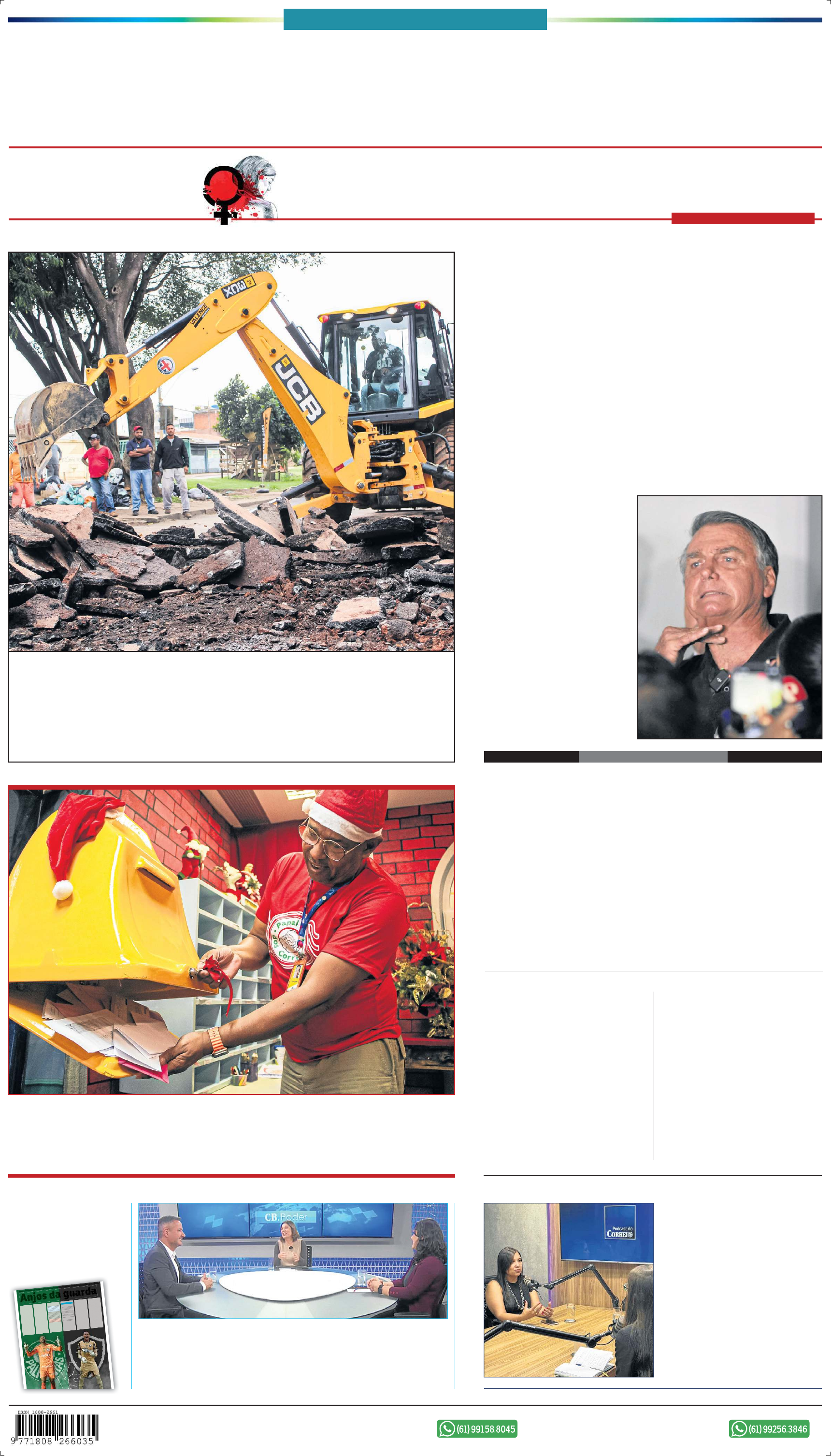 www.correiobraziliense.com.br CORREIO BRAZILIENSE LONDRES, 1808, HIPÓLITO JOSÉ DA COSTA. BRASÍLIA, 1960, ASSIS CHATEAUBRIAND BRASÍLIA, DISTRITO FEDERAL, TERÇA-FEIRA, 26 DE NOVEMBRO DE 2024 CLASSIFICADOS: 3342.1000 • ASSINATURA / ATENDIMENTO AO LEITOR: 3342.1000 • assinante.df@dabr.com.br • GRITA GERAL: 3214.1166 NÚMERO 22.533 • 26 PÁGINAS • R$ 4,00 Pequenos grandes sonhos de Natal A campanha Papai Noel dos Correios completa 35 anos com uma trajetória de sucesso da solidariedade. Somente no DF, no ano passado, foram adotadas 96 mil cartinhas, que se transformaram em presentes. Edson Borges foi à sede dos Correios para realizar o desejo de uma criança. PÁGINA 17 Ao CB.Poder, o presidente do Sindicato das Indústrias da Informação (Sinfor-DF), Carlos Jacobino, avaliou o uso do IA no mercado de trabalho. Áudios revelam trama militar. Bolsonaro vê “perseguição” De volta a Brasília, o ex-presi- dente Jair Bolsonaro reuniu a im- prensa para criticar as investiga- ções da Polícia Federal que o in- dicam como integrante de um plano para golpe de estado. “To- das as medidas dentro das quatro linhas, dentro da Constituição, eu estudei. A palavra golpe nun- ca esteve no meu dicionário”, ga- rantiu, ao admitir que “a situação é extremamente grave, as acusa- ções são terríveis”. E acrescen- tou: “Sou perseguido o tempo to- do. Posso ser preso assim que sair daqui. Áudios obtidos pelo PF in- dicam que os golpistas tentaram concluir as ações terroristas an- tes de 12 de dezembro de 2022.” PÁGINAS 2 E 3. NAS ENTRELINHAS, 3 Inteligência artificial a caminho da escola PÁGINA 14 Ana Dubeux/CB/D.A PressReprodução/TVBrasília Kayo Magalhães/CB/D.A Press Kayo Magalhães/CB/D.A Press A embaixada brasileira em Paris, na França, emitiu nota em reação à declaração do CEO global da rede Carrefour, Alexandre Bompard, que questionou a qualidade da carne brasileira, e criticou o que chamou de “uma campanha pública baseada na disseminação de desinformação generalizada contra produtos brasileiros”. Na Câmara dos deputados, o presidente, Arthur Lira (PP-AL), disse que vai acelerar a discussão sobre a reciprocidade. O ministro da Agricultura, Carlos Fávaro, apoiou o boicote feito à varejista pelos produtores brasileiros. PÁGINA 5 Brasil aponta desinformação e cobra retratação do Carrefour Força-tarefa do GDF fez, ontem, um mutirão para limpar ruas e casas e consertar a infraestrutura danificada pelo temporal do fim de semana. Moradores da região contam os prejuízos com o mar de lama e sujeira que invadiu casas e comércios. O volume de chuvas para novembro é o dobro do previsto para o mês. PÁGINA 15 Sol Nascente entre prejuízos e consertos No Dia Internacional para a Eliminação da Violência contra as Mulheres, pesquisa da ONU mostra que, todos os dias, 140 adultas e meninas, em todo o mundo, são assassinadas por parceiros, ex-companheiros ou parentes. Outro levantamento, do Instituto Patrícia Galvão (IPG), revela que 17 milhões de mulheres no Brasil estiveram ou estão sob o risco de feminicídio. Feminicídio, uma barbárie mundial Projetos sociais com sustentabilidade PÁGINA 17 Podcast do Correio • ESPOR correiobraziliense.com.br/esportes - Subeditor: Marcos Paulo Lima E-mail: esportes.d f@dabr N o ano passado, Bo- tafogo e Palmeiras se enfrentaram co- mo líder e vice-lí- der na 31ª rodada do Brasi- leirão, em partida épica no Nilton Santos. Na ocasião, a vitória do alviverde, por 4 x 3 de virada, deu o tom do restante do campeona- to. A Serie A terminou com título para o Palestra. Desta vez, o cara a ca- ra ficou para a 36ª rodada, mas com posições inversas e um status ainda maior de final antecipada. Para o ti- me de Abel Ferreira, vale a possibilidade de encami- nhar o sonho para ser cam- peão no fim de semana, enquanto, para o alvine- gro, está em jogo a chance de afastar o fantasma de 2023 e ganhar moral antes da decisão da Libertadores. Valendo muito para ambos os lados, o resulta- do do confronto de hoje, às 21h30, no Allianz Par- que, passa por dois pro- tagonistas distantes dos holofotes, mas ambos são anjos da guarda das duas melhores defesas do país: Weverton e John Victor. Se grandes times come- çam por grandes goleiros, a lógica não é diferente pa- ra os líderes do Brasileirão 2024. O paredão palmei- renses sofreu 26 gols em 34 jogos, enquanto o arquei- ro botafoguense levou 23 em 32 atuações. A estatís- tica é a melhor entre atle- tas com ao menos 25 parti- das disputadas. Não à toa, Weverton marca presença constantemente nas con- vocações da Seleção Bra- sileira e John Victor figurou na pré-lista do técnico Do- rival Júnior para a data Fifa de outubro. A dupla também osten- ta a marca de 16 jogos deste Brasileirão sem serem va- zados, cinco a mais do que João Ricardo (Fotaleza), terceiro no quesito. Ou se- ja, é quase um turno inteiro sem buscar a bola no fundo da própria rede. O confronto direto pelo título do campeonato ser- ve como novo capítulo em uma rivalidade que envol- ve o drama do Brasileirão de 2023, eliminação na Li- bertadores em 2024 e alfine- tadas entre os gestores Leila Pereira e John Textor. Se to- do o histórico não serve co- mo aclimatação suficiente, o desafio para os goleiros é maior por se tratar de uma partida entre os dois melho- res ataques da competição. Com 57 gols marcados, o Palmeiras dará trabalho a John, enquanto Weverton quer aumentar a sequên- cia ruim do Botafogo. Ape- sar de ter feito 53 gols, o al- vinegro está de mal com as redes, tendo marcado uma vez nas últimas três parti- das. O lance decisivo, ainda por cima, foi contra. Adversário do Botafogo na final da Libertadores, o Atlético-MG também entra em campo hoje, às 21h30, contra o Juventude, no In- dependência, em Belo Ho- rizonte. Ainda sem torcida após os atos de vandalismo na partida contra o Flamen- go, o Galo amarga uma se- quência de nov