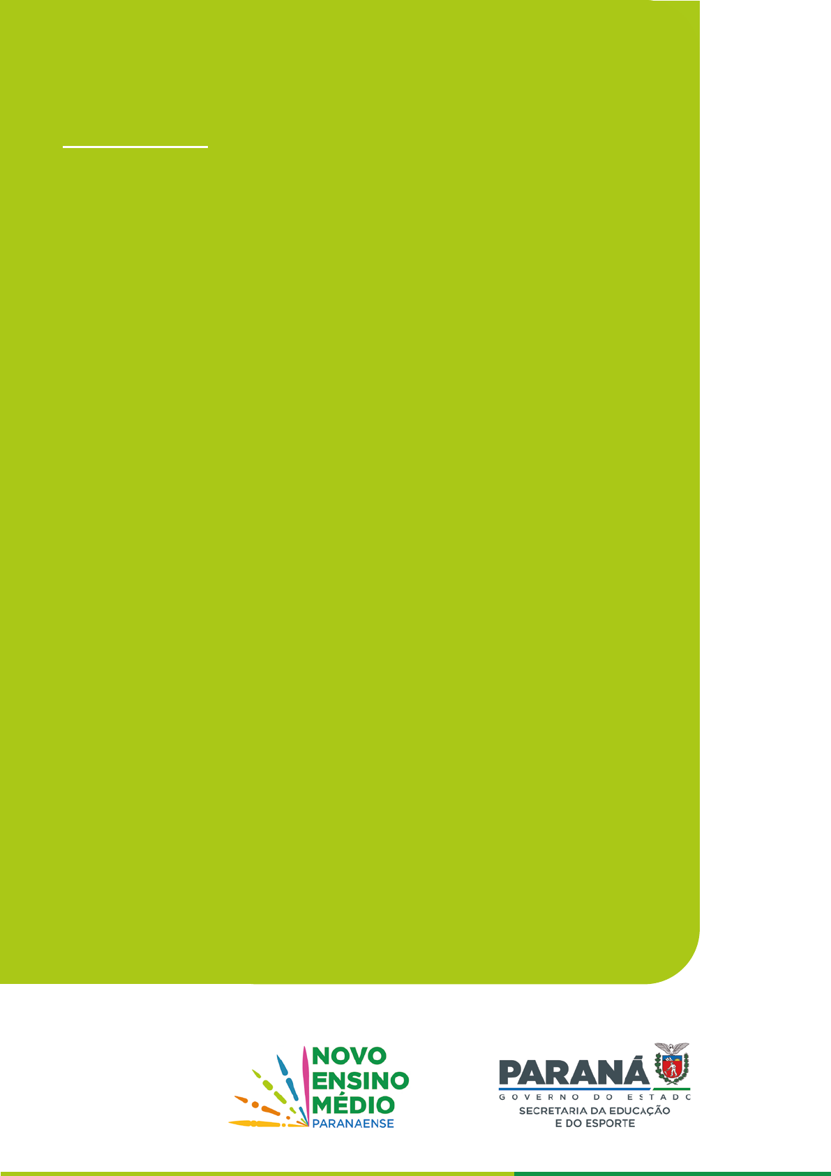 SECRETARIA DE EDUCAÇÃO E DO ESPORTE DO ESTADO DO PARANÁ REFERENCIAL CURRICULAR PARA O ENSINO MÉDIO DO PARANÁ 2021 VOL. 3 SECRETARIA DE ESTADO DA EDUCAÇÃO E DO ESPORTE REFERENCIAL CURRICULAR PARA O ENSINO MÉDIO DO PARANÁ VOL. 3 CURITIBA SEED/PR 2021 Depósito legal na Fundação Biblioteca Nacional, conforme Lei n 10.994, de 14 de dezembro de 2004. É permitida a reprodução total ou parcial desta a obra, desde que seja citada a fonte. CATALOGAÇÃO NA FONTE – CEDITEC-SEED-PR Secretaria de Estado da Educação e do Esporte (Paraná) Referencial curricular para o ensino médio do Paraná / Secretaria de Estado da Educação e do Esporte. – Curitiba : SEED/PR., 2021. 8.753.487 kb ; Epub Inclui bibliografia ISBN 978-85-8015107-7 1. Ensino médio-Paraná. 2. Educação-Paraná. 3. Currículo-Ensino médio. I. Paraná. Secretaria de Estado da Educação e do Esporte. II. Título CDD 370 Governador Carlos Massa Ratinho Junior Vice-Governador Darci Piana Chefe da Casa Civil Guto Silva Secretário de Estado da Educação e do Esporte Renato Feder Chefe de Gabinete Silvana Avelar de Almeida Kaplum Diretor-Geral Fercea Myriam Duarte Matheus Maciel Diretor de Educação Roni Miranda Vieira Diretora de Planejamento e Gestão Escolar José Carlos Pereira Guimarães Diretor de Tecnologia e Inovação André Gustavo Souza Garbosa FICHA TÉCNICA Coordenador Estadual do Ensino Médio Anderfábio Oliveira dos Santos Coordenadora de Etapa do Ensino Médio Ane Caroline Chimanski Articuladora entre Etapas Vanessa Roberta Massambani Ruthes Articuladora de Itinerários Mariley Duarte Rocha de Oliveira Articuladora do Conselho Estadual de Educação do Paraná Larice Nadia Pajewski Klichovski Consultoria de Gestão – UNESCO Luana Funchal Couto REDATORES TEXTO INTRODUTÓRIO Bárbara Yuri Katahira Carlos Henrique Martins Torra Helvig Cristiane Severino da Silva Daiane Carnelos Resende Laibida Dolores Follador Edne Aparecida Claser Fernanda Estrada Martins Mendonça Minelli Flávia Leal King Baleche Galindo Pedro Ramos Ivana Suski Vicentin Ivanildo Luiz Monteiro Rodrigues dos Santos Juliana Wolff Jussara Turin Luana Funchal Couto Maria Regina Bach Marilene Parmezan Mariley Duarte Rocha de Oliveira Natália Cristina Granato Paula Rodakiewski Rafael Estefano Busato Tiago Ungericht Rocha Vanessa Roberta Massambani Ruthes Ionara Blotz Melissa Colbert Bello Michelle Renata Borsatto FORMAÇÃO GERAL BÁSICA Área de Linguagens e suas Tecnologias Adilson Carlos Batista Adriana Zaze de Abreu Alexandra Maria dos Santos Ana Flavia Davies Ana Paula Istschuk Angélica Mayara Gonçalves Rodrigues Cidarley Grecco Fernandes Coelho Edilson José Krupek Fernando Richardi da Fonseca Liane Maria Barreto de Azevedo Luci Teresa Sampaio Gohl Roberta Jorge da Silva Wisnievski Sandra Andréia Ferreira Similaine Sibeli da Silva Sissi Pereira Vânia Rosczinieski Brondani Área de Matemática e suas Tecnologias Abimael Fernando Moreira Catia Joze de Souza Mattoso Fernando Fisco Jaqueline de Melo de Freitas Lucimar Donizete Gusmão Narjara Boppre Philippi Área de Ciências da Natureza e suas Tecnologias Ana Caroline de Lazzari de Oliveira Elizabete Maria Bellini Hélio Luiz Augusto Bueno Matos de Almeida Donini dos Santos Leticia Perez da Costa Lilian Kelly dos Santos Romanholi Márcia Regina Viero Maria Isabel Moutinho Branco Sayde Mauren Martini Lobo Maycon Adriano Silva Paulo Henrique Taborda Área de Ciências Humanas e Sociais Aplicadas Andréa Bassin Camila Flávia Fernandes Roberto Cristina Elena Taborda Ribas Eloi Correa dos Santos Lorena Pantaleão da Silva Marcos Antonio Queiroz Natália Cristina Granato Pollyana Aguiar Fonseca Santos Rafael Estefano Busato Renata Caroline Zanquetta Cardozo Vanessa Maria Rodrigues Viacava ITINERÁRIOS FORMATIVOS Área de Linguagens e suas Tecnologias Adilson Carlos BatistaAna Paula Istschuk Angélica Mayara Gonçalves Rodrigues Cidarley Grecco Fernandes Coelho Danielle Bonvechio Rissi Edilson José Krupek Fernando Richardi da Fonseca Janaína Pires de Oliveira Jefferson Januario dos Santos Luci Teresa Sampaio Gohl Lucimar Araujo Braga Similaine Sibeli da Silva Thais Cristina Pinto Raggio Valdir Olivo Junior Vânia Rosczinieski Brondani Viviane Maria Dissenha Área de Matemática e suas Tecnologias Abimael Fernando Moreira Catia Joze de Souza Mattoso Jaqueline de Melo de Freitas Lucimar Donizete Gusmão Área de Ciências da Natureza e suas Tecnologias Elizabete Maria Bellini Márcia Regina Viero Mauren Martini Lobo Paulo Henrique Taborda Área de Ciências Humanas e Sociais Aplicadas Andréa Bassin Camila Flávia Fernandes Roberto Daiane Carnelos Resende Laibida Eloi Correa dos Santos Lorena Pantaleão da Silva Marcos Antonio Queiroz Natália Cristina Granato Pollyana Aguiar Fonseca Santos Vanessa Maria Rodrigues Viacava Vanessa Roberta Massambani Ruthes Itinerário da Formação Técnica e Profissional Ângela Stevanelli Joelma Silveira Marcos Afonso Zanon Rosângela Parodi Vanessa Morais e Silva REVISORES Agnaldo Almeida de Jesus; Alexandra Maria dos Santos; Daiane Carnelos Resende Laibida; Flávia Leal King Baleche; Helen Jossania Goltz; Lorena Pantaleão da Silva; Luana Funchal Couto; Lucélio Helder Cherubim; Sandra Andréia Ferreira; Tatiane Valéria Rogério de Carvalho; Vanessa Roberta Massambani Ruthes. COLABORADORES Afife Maria dos Santos Mendes Fontanini; Ângela Pereira Teixeira Victoria Palma Anísio Calciolari Júnior; Cecília Gusson Santos; Cleonice José de Souza; Darice Alessandra Deckmann Zanardini; Dcheimy Janyna Baessa; Eder Fernando do Nascimento; Edy Célia Coelho; Elaine Cristina Nascimento; Elaine Ferreira Machado; Eliane Adriana Neves Nepel; Eliane Provate Queiroz; Eliete de Lara; Constante Serafim; Elisandra Angrewski; Elisane Fank; Everson Grando; Fábia Zamprônio Coginotti Pansera; Fábio Aparecido Ferreira; Fabiola Martins Stavny; Francisco Manoel de Carvalho Neto; Gabriela Calderon; Geceoní Fátima Canteli Jochelavicius; Giane Fernanda Schneider Gros
