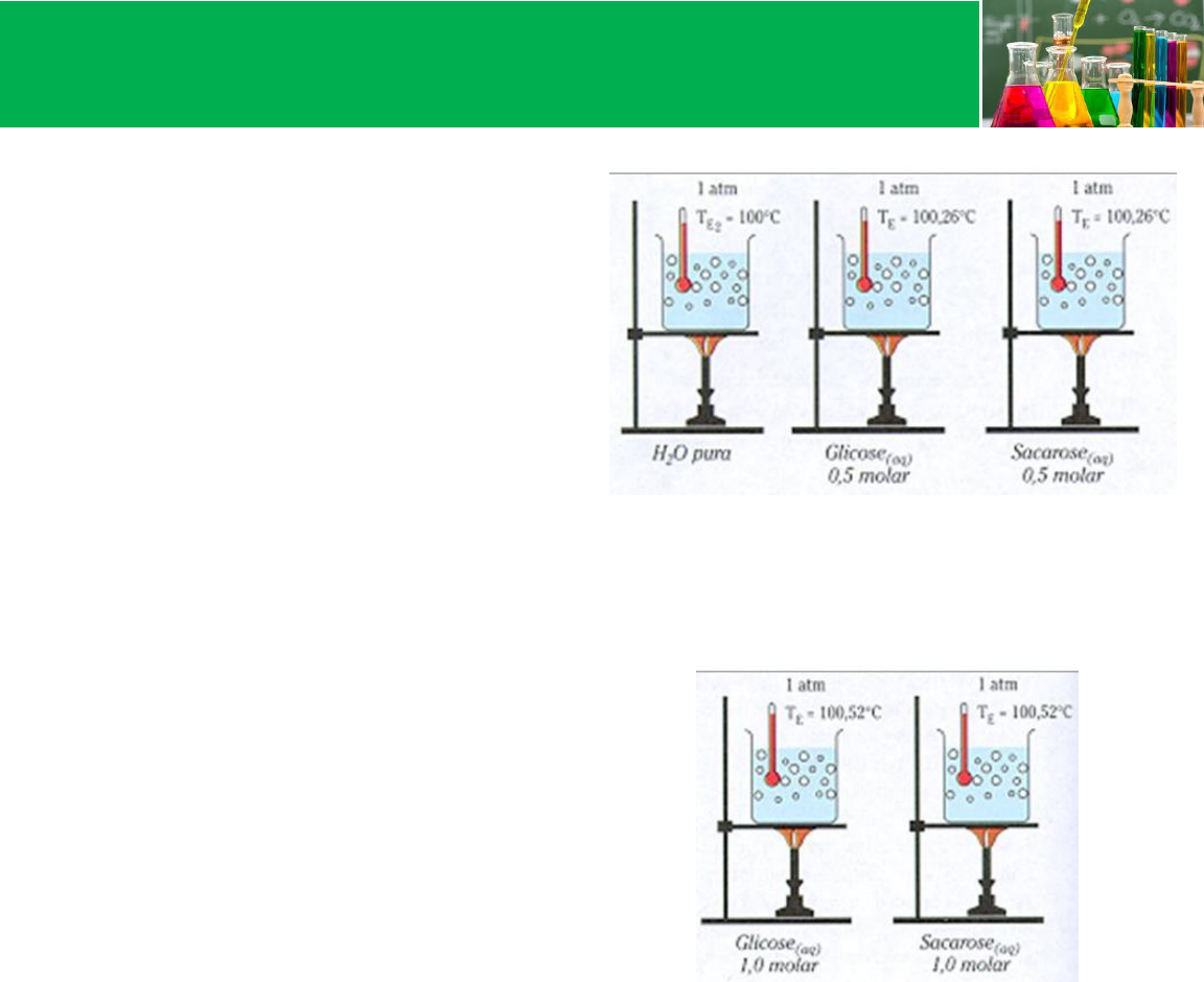 QUÍMICA – FRENTE II – FICHA 11 – PROPRIEDADES COLIGATIVAS Propriedades Coligativas São aquelas propriedades das substâncias puras que são modificadas quando se adiciona um soluto não volátil a elas. Essas propriedades, portanto, não são explicadas pela natureza da substância, mas sim pela quantidade de suas moléculas, partículas ou átomos. Existem quatro estudos principais destas propriedades. O estudo das quatro propriedades coligativas permite responder e entender questões como: Qual o motivo de se acrescenta sal ao gelo para gelar cerveja em lata? Quando se acrescenta sal ou açúcar a uma quantidade de água que está iniciando fervura, ela quebra a fervura? O que acontece quando se coloca sal sobre um pedaço de carne? O que ocorre a um pedaço de fruta já desidratada dentro de um recipiente com água? Qual a razão do peixe de um rio não conseguir sobreviver em ambiente marítimo e o peixe provindo do mar não conseguir sobreviver no rio? Por que as águas dos oceanos não congelam totalmente, mesmo em locais extremamente gelados? Ebulioscopia Estudo da elevação da temperatura de ebulição do solvente numa solução. Perceba na Figura 1 que a temperatura de ebulição da água é 100ºC e ao adicionar 0,5 molar de glicose a temperatura de ebulição se eleva para 100,26ºC. Já na Figura 2, ao adicionar 1 molar de glicose ou sacarose a temperatura ebulição se eleva para 100,52ºC. Dessa forma, percebe que a temperatura de ebulição aumenta proporcionalmente a concentração do soluto adicionado, pois 0,5 molar teve uma variação de 0,26ºC e ao dobrar a concentração, 1 molar, a variação de temperatura dobrou também, 0,52ºC. Figura 1: Aumento da Temperatura de Ebulição com o Aumento da Concentração do Soluto. Disponível e modificada em: http://images.slideplayer.com.br/2/5613221/slides/slide_20. jpg. Figura 2: Variação de Temperatura é Proporcional ao Aumento da Concentração do Soluto. Disponível e modificada em: http://images.slideplayer.com.br/2/5613221/slides/slide_20. jpg. Tonoscopia Estudo da diminuição da pressão máxima de vapor de um solvente quando lhe é adicionado um soluto não-volátil. Em uma mesma temperatura, note que na Figura 3a as moléculas de água não possuem dificuldade em passar do estado líquido para o gasoso. Porém, ao adicionar NaCl (sal) a água, Figura 3b, isso não ocorre com facilidade, pois ocorre uma interação entre a molécula de sal e água. QUÍMICA – FRENTE II – FICHA 11 – PROPRIEDADES COLIGATIVAS Figura 3: a) moléculas de água sendo evaporadas facilmente e possuem uma determinada pressão máxima de vapor. b) interação da molécula de água com NaCl e com uma pressão máxima de vapor menor em relação a imagem a. Disponível em: http://image.slidesharecdn.com/propriedadescoligativaston oscopia-fsico-qumica-140422142353- phpapp02/95/propriedades-coligativas-tonoscopia- fsicoqumica-9-638.jpg?cb=1398176685. A tonoscopia pode ser visualizada através do Gráfico 1. Em uma mesma temperatura, o solvente puro possui uma pressão P0, e a solução 1 (solvente puro + soluto), possui uma pressão menor. Ou seja, ao adicionar um soluto a um solvente a pressão máxima de vapor diminui. Gráfico 1: Gráfico da Pressão Máxima de Vapor em Função da Temperatura. Disponível em: http://mundoeducacao.bol.uol.com.br/upload/conteudo/grafi co-press%C3%A3o-de-vapor-temperatura.jpg. Crioscopia Estudo da diminuição do ponto de congelamento de um líquido a 0ºC quando adicionado um soluto não-volátil. Na Figura 4 a crioscopia pode ser entendida melhor. Ao adicionar glicose ou sacarose 0,5 molar a água a 0ºC, a temperatura de congelamento diminui para -0,93ºC. Já ao adicionar 1 molar de glicose ou sacarose a água a temperatura diminui para - 1,86ºC, ou seja, ao dobrar a concentração do soluto dobra-se a diminuição da temperatura de congelamento. Figura 4: Diminuição da temperatura de congelamento ao adicionar um soluto ao solvente. Modificada e disponível em: http://images.slideplayer.com.br/2/5613221/slides/slide_24. jpg. Osmoscopia Através de uma membrana semipermeável, ocorre o fluxo do solvente de uma solução em menor concentração em direção a de maior concentração, com a finalidade de igualar as concentrações de ambos os lados da membrana semipermeável. Geralmente, o solvente envolvido é a água. Thiago Almeida Thiago Almeida Thiago Almeida Thiago Almeida Thiago Almeida Thiago Almeida Thiago Almeida Thiago Almeida Thiago Almeida Thiago Almeida Thiago Almeida Thiago Almeida Thiago Almeida Thiago Almeida Thiago Almeida Thiago Almeida Thiago Almeida Thiago Almeida Thiago Almeida Thiago Almeida Thiago Almeida Thiago Almeida Thiago Almeida Thiago Almeida Thiago Almeida Thiago Almeida Thiago Almeida Thiago Almeida Thiago Almeida Thiago Almeida Thiago Almeida QUÍMICA – FRENTE II – FICHA 11 – PROPRIEDADES COLIGATIVAS Figura 5: Fluxo de água através de uma membrana semipermeável para a solução de maior concentração. Disponível e modificada em: http://images.slideplayer.com.br/2/5590255/slides/slide_7.j pg. Exercícios Resolvidos 1 – (UFPE) Por que a adição de certos aditivos na água dos radiadores de carros evita que ocorra o superaquecimento da mesma e também o seu congelamento, quando comparada com a da água pura? a) Porque a água mais o aditivo formam uma solução que apresenta pontos de ebulição e de fusão maiores que os da água pura. b) Porque a solução formada (água + aditivo) apresenta pressão de vapor maior que a água pura, o que causa um aumento no ponto de ebulição e de fusão. c) Porque o aditivo reage com a superfície metálica do radiador, que passa então a absorver energia mais eficientemente, diminuindo, portanto, os pontos de ebulição e de fusão quando comparados com a água pura. d) Porque o aditivo diminui a pressão de vapor da solução formada com relação à água pura, causando um aumento do ponto de ebulição 
