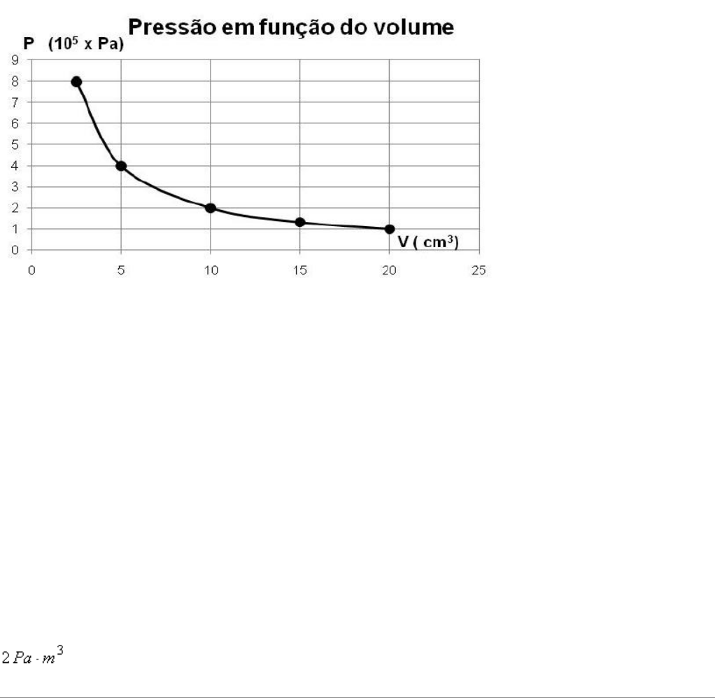 Questão 1 Um gás ideal em uma seringa de injeção, a uma temperatura constante, é comprimido e os resultados são apresentados no gráfico a seguir. A partir das informações constantes do gráfico, assinale a afirmativa correta. A) O processo como representado no gráfico é irreversível. B) O processo de transformação é isobárico. C) O produto da pressão pelo volume é constante e igual a 2 Pa × m3. D) O fenômeno descrito no gráfico é regido pela lei de Charles e Gay-Lussac. E) O valor da pressão, quando o volume for de 10 cm3, será igual a 2 × 105 atm. Gabarito: C Resolução: Através do grafico, observa-se que o produto da pressão pelo volume é constante e vale Questão 2 Um gás ideal sofre a transformação termodinâmica quase estática A → B → C, representada no diagrama P × V ilustrado a seguir. De acordo com esse diagrama, assinale o que for correto. 01) A temperatura absoluta do gás no estado B é maior do que a temperatura absoluta do gás no estado A. 02) A energia interna do gás no estado B é maior do que a energia interna do gás no estado A. 04) O trabalho realizado pelo gás, para mudar do estado A, passando por B e chegar ao estado C, pode ser calculado por meio da equação W = (PC – PA) × (VC – VA). 08) Para mudar do estado A ao estado B, o gás absorveu energia na forma de calor. 16) Para mudar do estado B para o estado C, a variação de energia interna do gás é igual à quantidade de calor cedida pelo gás, na mesma transformação. Gabarito: 27 Resolução: 01 + 02 + 08 + 16 = 27 01) Correta. Observando que P × V = n × R × T, ou que o produto P × V é proporcional à temperatura absoluta, então PA × VB > PA × VA, que caracterizam os estados B e A, respectivamente, porque VB > VA e PA = PB. 02) Correta. Como U = n × R × T, vemos que a energia interna é proporcional também à temperatura absoluta. Desta forma, se PA × VB > PA × VA tal que TB > TA, então UB > UA. 04) Incorreta. Pode ser calculado por: , sendo que: e Assim: 08) Correta. É um processo isobárico, onde a temperatura sobe proporcionalmente ao aumento de volume, o que indica um trabalho positivo por parte do sistema (gás). Como a energia interna aumenta de A para B e a 1ª Lei da Termodinâmica nos dá , então o gás absorveu calor pra aumentar a energia interna e realizar trabalho. 16) Correta. Sim, porque . Como o trabalho é proporcional ao aumento de volume, se não há aumento de volume, não há trabalho (W = 0). Assim, como , então se w = 0, , ou seja, a pressão cai em um processo isovolumétrico, porque a temperatura caiu. Podemos concluir que a energia interna variou para menos porque o gás cedeu calor. Questão 3 Um forno a gás de cozinha é utilizado para assar um bolo. O forno, inicialmente à temperatura de 30 oC, é pré-aquecido durante 15 minutos até atingir 180 oC e, após o bolo ser colocado para assar, esta temperatura é mantida por 45 minutos. O forno, que é construído com diferentes materiais, possui capacidade térmica média de 600 J/K. A absorção de energia pelo bolo somada à perda de energia para o ambiente ocorre a uma taxa de 500 J/s. Sabe-se que a capacidade energética do gás é de 120 MJ/m3. Nessas condições, calcule a a) potência total consumida para pré-aquecer o forno e assar o bolo; b) quantidade total de gás consumida, em m3. Gabarito: (Resolução oficial) a) O tempo total de preparo do bolo é tTotal = 3600 s Tempo de aquecimento é Tempo de cozimento é tTotal = 2700 s Energia gasta para pré-aquecer o forno EAq = C⋅ T = 600⋅(180−30) = 600⋅150 = 90000 J A potência consumida é Portanto, a potência consumida foi de 400 W. b) A capacidade energética do gás de cozinha é Cgc = J/m3 O volume consumido é m3 O volume consumido de gás foi de 0,012 m3 ou 1,20 × 10–2 m3 Questão 4 Um filme fino de sabão é sustentado verticalmente no ar por uma argola. A parte superior do filme aparece escura quando é observada por meio de luz branca refletida. Abaixo da parte escura aparecem bandas coloridas. A primeira banda tem cor vermelha ou azul? Justifique sua resposta. Gabarito: Por gravidade, a água da bolha ou filme de sabão vai para baixo. Ou seja, o filme será mais espesso na parte de baixo, quando suspenso. Quando a espessura é muito pequena, favorece a interferência destrutiva. Os raios de luz branca incidem sobre as faces externa e depois interna do filme. A reflexão se dá com inversão de fase na parte externa e sem inversão de fase na parte interna. As duas vindas para o observador farão uma interferência destrutiva. Por isso é escura a visão da parte superior (mais fina) do filme. Essas considerações se fazem então quando a espessura do filme é menor ou da ordem do comprimento de onda da luz para qualquer cor. À medida que descemos a espessura vai aumentando e se aproximando de . Começam a aparecer as interferências construtivas. Os comprimentos de onda menores aparecerão primeiro e o menor entre o azul e o vermelho é o do azul. Logo, a primeira cor a aparecer, entre o azul e o vermelho, será o azul. Questão 5 Um gás ideal sofre três processos termodinâmicos na seguinte sequência: dilatação isotérmica, compressão isobárica e transformação isocórica. Esses processos estão representados no diagrama PV (Pressão × Volume) a seguir. Nessas circunstâncias, o diagrama VT (Volume × Temperatura) correspondente é: Gabarito: C Resolução: (1) dilatação isotérmica: aumento de volume com temperatura constante; (2) compressão isobárica: diminuição de volume com pressão constante; (3) transformação isocórica: nessa transformação o volume é constante, a pressão varia com a temperatura. De acordo com o gráfico a pressão aumentou, então a temperatura aumentou. Examinando essa sequência nos gráficos V × T, temos: Questão 6 Um fenômeno comum, observado por muitos cozinheiros, é o surgimento de uma cor amarela intensa quando o líquido de uma p