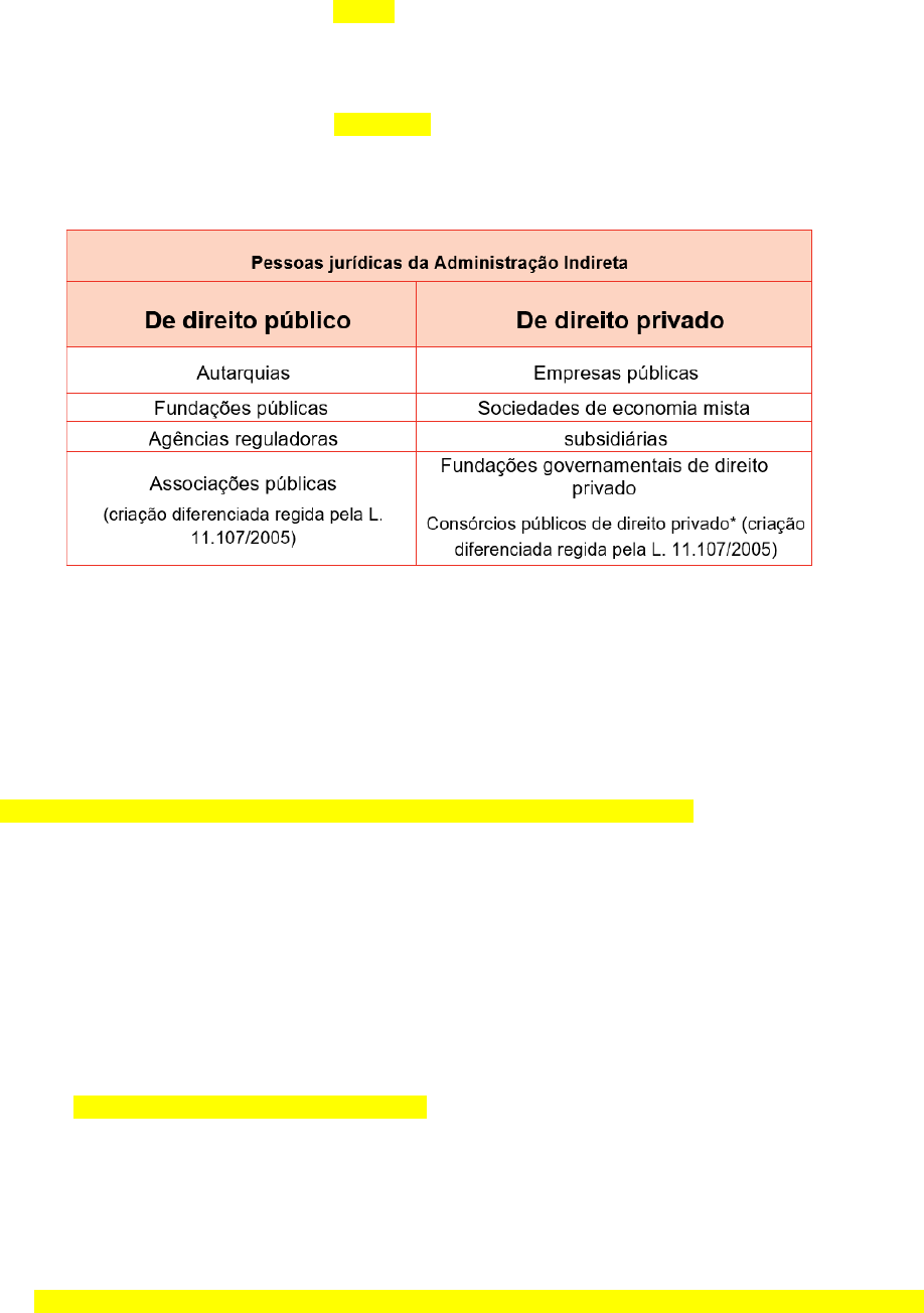 ADMINISTRAÇÃO INDIRETA CRIAÇÃO Composta por pessoas jurídicas autônomas com natureza de direito público ou privado Pessoas jurídicas de direito público são criadas por lei (Autarquias, Fundações púb., Agências reg.) Surge com a entrada em vigor da lei instituidora sem necessidade de registro em cartório Se não houver previsão da vacatio legis, ocorre entrada em vigor da lei na data de sua publicação Se houver vacatio legis, ocorre entrada em vigor da lei após o fim do prazo Pessoas jurídicas de direito privado são autorizadas por lei (Empresas púb., S.E.M., subsidiárias, Fundações priv.) Surge com a publicação da lei permitindo a criação Executivo expede decreto regulamentando a criação A personalidade nasce com o registro dos atos constitutivos em cartório AUTARQUIAS Art. 5, I, D.L 200/67 - Autarquia - o serviço autônomo, criado por lei, com personalidade jurídica, patrimônio e receita próprios, para executar atividades típicas da Administração Pública, que requeiram, para seu melhor funcionamento, gestão administrativa e financeira descentralizada. São pessoas jurídicas de direito público interno, pertencentes à administração pública indireta, criadas por lei específica para o exercício de atividades típicas da administração pública ☠A existência de uma autarquia pressupõe a aplicação do princípio da especialidade CARACTERÍSTICAS São pessoas jurídicas de direito públicoI. Regime jurídico aplicável a tais entidades é o regime jurídico público Autarquias não podem ter personalidade jurídica de direito privado São criadas e extintas por lei específicaII. Art. 37, XIX, CF - Somente por lei específica será criada autarquia [...] Dotadas de autonomia gerencial, orçamentária e patrimonialIII. Possui autonomia (Capacidade de autogoverno), possuindo um certo nível de liberdade na gestão de seus próprios assuntos, intermediário entre a subordinação hierárquica e a independência Não estão subordinadas hierarquicamente à administração pública direta Sofrem controle finalístico de supervisão ou tutela ministerial Não caracteriza independência por ainda estar ligada à administração central Nunca exercem atividade econômicaIV. Podem desempenhar somente atividades típicas da administração pública Exemplo: Prestar serviços públicos, exercer o poder de polícia ou promover o fomento São imunes a impostosV. Taxas, contribuições de melhorias, empréstimos compulsórios e contribuições especiais devem ser pagos Seus bens são públicosVI. Os bens das autarquias por serem considerados bens públicos são revestidos de impenhorabilidade, inalienabilidade e Organização administrativa II - (Administração indireta) segunda-feira, 4 de dezembro de 2023 16:48 Página 1 de Direito Administrativo Os bens das autarquias por serem considerados bens públicos são revestidos de impenhorabilidade, inalienabilidade e imprescritibilidade Praticam atos administrativosVII. Os atos praticados pelos agentes públicos pertencentes às autarquias são considerados atos administrativos Esses atos são dotados de presunção de legitimidade, exigibilidade, imperatividade e autoexecutoriedade Celebram contratos administrativosVIII. Os contratos celebrados por autarquias qualificam-se como contratos administrativos As regras dos contratos administrativos possuem superioridade contratual da administração pública sobre os particulares contratados Regime normal de vinculação é estatutárioIX. Em regra, agentes públicos pertencentes às autarquias ocupam cargos públicos Compõem a categoria dos servidores públicos estatutários São regidos por CLT Possuem as prerrogativas especiais da fazenda públicaX. Autarquias possuem todos os privilégios processuais característicos da atuação da Fazenda Pública em juízo Prazo em dobro para recorrer, contestar e responder recurso, desnecessidade de adiantar custas processuais e de anexar procuração do representante legal, dever de intimação pessoal, execução de suas dívidas pelo sistema de precatórios Responsabilidade objetiva e diretaXI. Respondem objetivamente (Sem necessidade de comprovação de dolo ou culpa), pelos prejuízos causados por seus agentes e particulares A administração Direta (Entidade federativa) só poderá ser acionada em caráter subsidiário, logo, se a autarquia não possuir condições patrimoniais e orçamentárias de indenizar a integralidade do valor da condenação Outras características Sofrem controle dos tribunais de contasI. Devem observar as regras de contabilidade públicaII. Sujeitar à vedação de acumulação de cargos e fundações públicaIII. Devem realizar licitaçãoIV. Seus dirigentes (Chefes) ocupam cargos em comissão de livre provimento e exoneraçãoV. XII. ESPÉCIES Autarquias administrativas ou de serviçoI. São as autarquias comuns dotadas de regime jurídico ordinário dessa espécie de pessoa pública Exemplo: INSS Autarquias especiaisII. São autarquias especiais dotadas de peculiaridades normativas que as diferenciam das autarquias comuns Possuem mais autonomia Autarquias especiais strictu sensua) Autarquias especiais que desfrutam de maior grau de independência administrativa em relação à administração indireta, nos termos da lei Agências reguladorasb) São autarquias especiais dotadas de uma qualificada autonomia garantida pela presença de lideres com mandatos fixos e estabilidade no exercício das funções Anatel, Anvisa e Antaq Autarquias coorporativas (Corporações profissionais ou autarquias profissionais)III. São entidades com atuação de interesse público encarregadas de exercer controle e fiscalização sobre determinadas categorias profissionais Exemplos: Conselhos de Classe como Crea, CRO e CRM Autarquias fundacionais (Fundações públicas)IV. São criadas mediante a afetação de determinado patrimônio público a certa finalidade Exemplo: Procon, Funasa e Funai Autarquias t