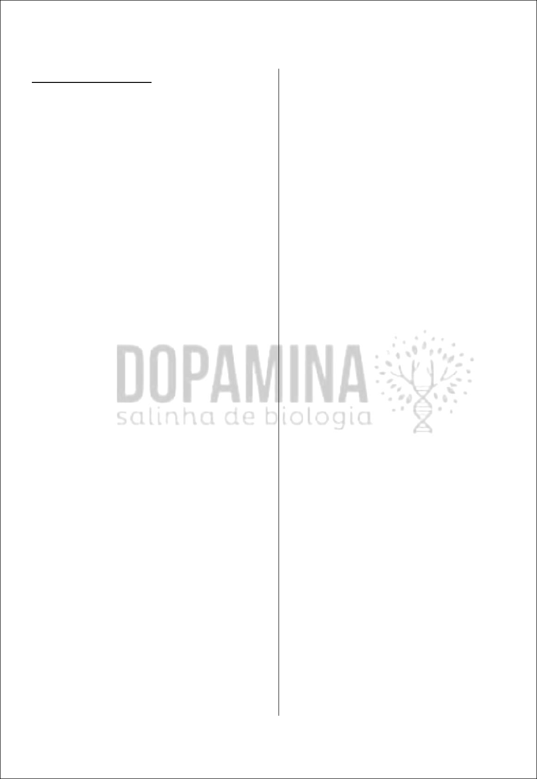 PROFESSORA MARINA ESPÍNOLA SALINHA DOPAMINA 4 1.1 Ácidos Nucléicos Questão 01 - (ENEM/2015) O formato das células de organismos pluricelulares é extremamente variado. Existem células discoides, como é o caso das hemácias, as que lembram uma estrela, como os neurônios, e ainda algumas alongadas, como as musculares. Em um mesmo organismo, a diferenciação dessas células ocorre por a) produzem mutações específicas. b) possuírem DNA mitocondrial diferentes. c) apresentarem conjunto de genes distintos. d) expressarem porções distintas do genoma. e) terem um número distinto de cromossomos. Questão 02 - (ENEM/2012) Os vegetais biossintetizam determinadas substâncias (por exemplo, alcaloides e flavonoides), cuja estrutura química e concentração variam num mesmo organismo em diferentes épocas do ano e estágios de desenvolvimento. Muitas dessas substâncias são produzidas para a adaptação do organismo às variações ambientais (radiação UV, temperatura, parasitas, herbívoros, estímulo a polinizadores etc.) ou fisiológicas (crescimento, envelhecimento etc.). As variações qualitativa e quantitativa na produção dessas substâncias durante um ano são possíveis porque o material genético do indivíduo a) sofre constantes recombinações para adaptar-se. b) muda ao longo do ano e em diferentes fases da vida. c) cria novos genes para biossíntese de substâncias específicas. d) altera a sequência de bases nitrogenadas para criar novas substâncias. e) possui genes transcritos diferentemente de acordo com cada necessidade. Questão 03 - (ENEM/2012) O DNA (ácido desoxirribonucleico), material genético de seres vivos, é uma molécula de fita dupla, que pode ser extraída de forma caseira a partir de frutas, como morango ou banana amassados, com uso de detergente, de sal de cozinha, de álcool comercial e de uma peneira ou de um coador de papel. O papel do detergente nessa extração de DNA é a) aglomerar o DNA em solução para que se torne visível. b) promover lise mecânica do tecido para obtenção do DNA. c) emulsificar a mistura para promover a precipitação do DNA. d) promover atividades enzimáticas para acelerar a extração do DNA. e) romper as membranas celulares para liberação do DNA em solução. Questão 04 - (ENEM/2011) Nos dias de hoje, podemos dizer que praticamente todos os seres humanos já ouviram em algum momento falar sobre o DNA e seu papel na hereditariedade da maioria dos organismos. Porém, foi apenas em 1952, um ano antes da descrição do modelo do DNA em dupla hélice por Watson e Crick, que foi confirmado sem sombra de dúvidas que o DNA é material genético. No artigo em que Watson e Crick descreveram a molécula de DNA, eles sugeriram um modelo de como essa molécula deveria se replicar. PROFESSORA MARINA ESPÍNOLA SALINHA DOPAMINA 5 Em 1958, Meselson e Stahl realizaram experimentos utilizando isótopos pesados de nitrogênio que foram incorporados às bases nitrogenadas para avaliar como se daria a replicação da molécula. A partir dos resultados, confirmaram o modelo sugerido por Watson e Crick, que tinha como premissa básica o rompimento das pontes de hidrogênio entre as bases nitrogenadas. GRIFFITHS, A. J. F. et al. Introdução à Genética. Rio de Janeiro: Guanabara Koogan, 2002. Considerando a estrutura da molécula de DNA e a posição das pontes de hidrogênio na mesma, os experimentos realizados por Meselson e Stahl a respeito da replicação dessa molécula levaram à conclusão de que a) a replicação do DNA é conservativa, isto é, a fita dupla filha é recém-sintetizada e o filamento parental é conservado. b) a replicação de DNA é dispersiva, isto é, as fitas filhas contêm DNA recém- sintetizado e parentais em cada uma das fitas. c) a replicação é semiconservativa, isto é, as fitas filhas consistem de uma fita parental e um recém-sintetizada. d) a replicação do DNA é conservativa, isto é, as fitas filhas consistem de moléculas de DNA parental. e) a replicação é semiconservativa, isto é, as fitas filhas consistem de uma fita molde e uma fita codificadora. Questão 05 - (ENEM/2009) A figura seguinte representa um modelo de transmissão da informação genética nos sistemas biológicos. No fim do processo, que inclui a replicação, a transcrição e a tradução, há três formas proteicas diferentes denominadas a, b e c. Depreende-se do modelo que a) a única molécula que participa da produção de proteínas é o DNA. b) o fluxo de informação genética, nos sistemas biológicos, é unidirecional. c) as fontes de informação ativas durante o processo de transcrição são as proteínas. d) é possível obter diferentes variantes proteicas a partir de um mesmo produto de transcrição. e) a molécula de DNA possui forma circular e as demais moléculas possuem forma de fita simples linearizadas. Questão 06 - (ENEM/2008) Define-se genoma como o conjunto de todo o material genético de uma espécie, que, na maioria dos casos, são as moléculas de DNA. Durante muito tempo, especulou-se sobre a possível relação entre o tamanho do genoma — medido pelo número de pares de bases (pb) —, o número de proteínas produzidas e a complexidade do organismo. As primeiras respostas começam a aparecer e já deixam claro que essa relação não existe, como mostra a tabela abaixo. Internet: www.cbs.dtu.dk e . De acordo com as informações acima, a) o conjunto de genes de um organismo define o seu DNA. b) a produção de proteínas não está vinculada à molécula de DNA. c) o tamanho do genoma não é diretamente proporcional ao número de proteínas produzidas pelo organismo. d) quanto mais complexo o organismo, maior o tamanho de seu genoma. PROFESSORA MARINA ESPÍNOLA SALINHA DOPAMINA 6 e) genomas com mais de um bilhão de pares de bases são encontrados apenas nos seres vertebrados. Questão 07 - (ENEM/2008) Durante muito tempo, os cientistas acreditaram que variações anatômicas 