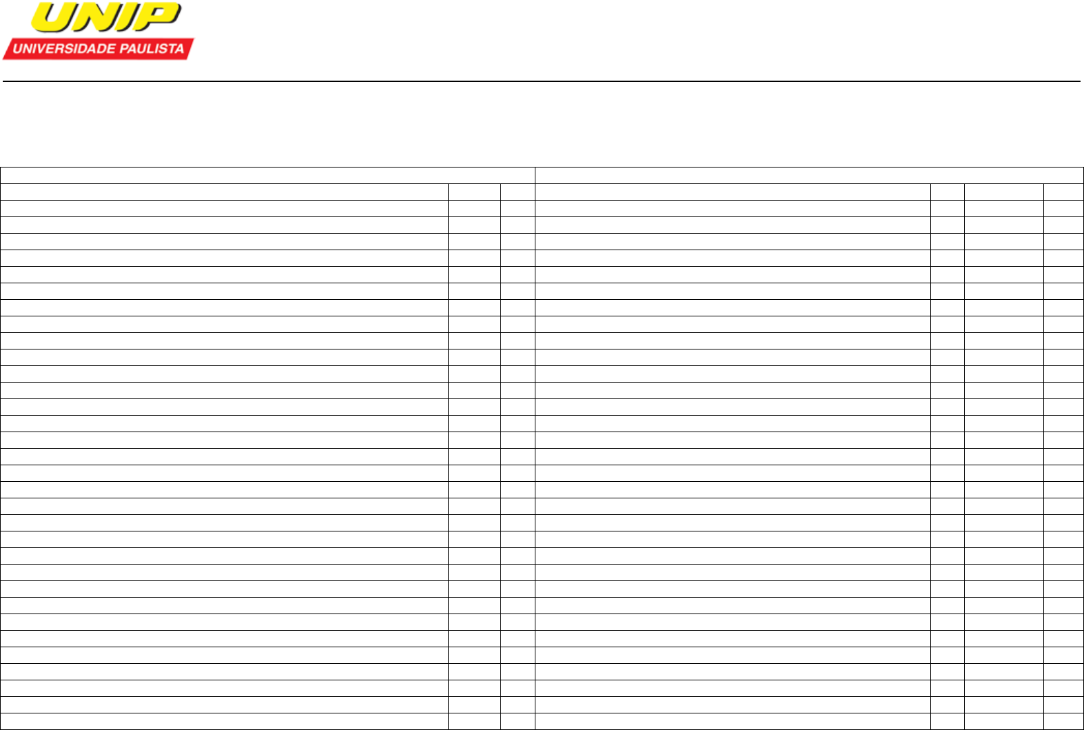 Aproveitamento de estudos Aluno: 2446902 - LAÍS CAROLINE GONCALVES TEODORO Curso: FISIOTERAPIA Currículo: EAD-20213 Série: 7 * IES (Instituição de ensino superior) de origem Dispensa: c5a2c650-fcc7-49f7-90b5-b1ab0131e005 - IES 1 - UNIVERSIDADE PAULISTA - UNIP Disciplinas do currículo Disciplinas dispensadas pelo Coordenador Disciplina Série C.H Disciplina relacionada/situação C.H Situação IES* 6550-20 - INTRODUÇÃO À EDUCAÇÃO A DISTÂNCIA 1 20 6979-30 - COMUNICAÇÃO E EXPRESSÃO 1 30 D253 COMUNICAÇÃO E EXPRESSÃO 30 Dispensa 1 7058-60 - BIOLOGIA (CITOLOGIA) 1 60 N441 BIOLOGIA (CITOLOGIA) 60 Dispensa 1 7396-30 - TÉCNICAS DE INFORMÁTICA 1 30 7398-30 - ESTUDOS DISCIPLINARES III 1 30 7399-30 - ESTUDOS DISCIPLINARES IV 1 30 7467-60 - BIOQUIMICA 1 60 J19A BIOQUIMICA 60 Dispensa 1 7550-60 - FISIOLOGIA GERAL 1 60 J364 FISIOLOGIA GERAL 60 Dispensa 1 7551-30 - FISIOTERAPIA PREVENTIVA 1 30 197Y FISIOTERAPIA PREVENTIVA 30 Dispensa 1 7552-90 - ANATOMIA DO APARELHO LOCOMOTOR 1 90 35A4 ANATO DO APARELHO LOCOMOTOR 90 Dispensa 1 7553-30 - PATOLOGIA 1 30 4362Z PATOLOGIA 30 Dispensa 1 5365-30 - HOMEM E SOCIEDADE 2 30 D267 HOMEM E SOCIEDADE 30 Dispensa 1 7064-60 - BIOMECÂNICA 2 60 J35A BIOMECANICA 60 Dispensa 1 7405-30 - ESTUDOS DISCIPLINARES V 2 30 7406-30 - ESTUDOS DISCIPLINARES VI 2 30 7554-30 - NEUROANATOMIA 2 30 35A6 NEUROANATOMIA 30 Dispensa 1 7555-30 - FISIOLOGIA DO SISTEMA REGULADOR 2 30 N182 FISIOLOGIA DO SISTEMA REGULAD 30 Dispensa 1 7556-30 - FUNDAMENTOS ACOES PREVENTIVAS EM SAUDE 2 30 D936 FUND AÇÕES PREVENT EM SAÚDE 30 Dispensa 1 7557-30 - INTERPRETACAO E PRODUCAO DE TEXTOS 2 30 D277 INTERPRETAÇÃO E PROD DE TEXTOSS 30 Dispensa 1 7558-60 - CINESIOLOGIA 2 60 52A5 CINESIOLOGIA 60 Dispensa 1 7559-90 - SEMIOLOGIA APLICADA A FISIOTERAP 2 90 187Y SEMIOLOGIA APLIC A FISIOTERAP 90 Dispensa 1 7661-60 - ANATOMIA DOS SISTEMAS 2 60 J623 ANATOMIA DOS SISTEMAS 60 Dispensa 1 5368-30 - CIÊNCIAS SOCIAIS 3 30 D243 CIÊNCIAS SOCIAIS 30 Dispensa 1 6576-20 - LÍNGUA BRASILEIRA DE SINAIS (OPTATIVA) 3 20 6579-20 - MARKETING PESSOAL (OPTATIVA) 3 20 6580-20 - RELAÇÕES ÉTNICO-RACIAIS E AFRODESCENDÊNCIA (OPTATIVA) 3 20 6583-20 - DESENVOLVIMENTO SUSTENTÁVEL - OPTATIVA 3 20 6585-20 - ATUAÇÃO JUNTO A PESSOA IDOSA - OPTATIVA 3 20 6586-20 - EDUCAÇÃO AMBIENTAL - OPTATIVA 3 20 6975-20 - DIREITOS HUMANOS - OPTATIVA 3 20 7069-60 - FISIOLOGIA APLICADA A ATIVIDADE MOTORA 3 60 N399 FISIOL APLIC A ATIV MOTORA 60 Dispensa 1 7412-30 - ESTUDOS DISCIPLINARES VII 3 30 Gerado em 08/08/2024 19:35:23 Página 1 Aproveitamento de estudos 7413-30 - ESTUDOS DISCIPLINARES VIII 3 30 7561-30 - RECURSOS TERAPEUTICOS MANUAIS 3 30 35A8 REC TERAP MANUAIS 30 Dispensa 1 7562-60 - AVALIACAO FUNCIONAL 3 60 52A6 AVALIAÇÃO FUNCIONAL 60 Dispensa 1 7563-60 - TERMO E FOTOTERAPIA 3 60 52A7 TERMO E FOTOTERAPIA 60 Dispensa 1 7564-30 - FUNDAMENTOS DE SAUDE COLETIVA 3 30 D995 FUND SAUDE COLETIVA 30 Dispensa 1 7565-90 - EVOLUCAO HISTORICA DA FISIOTERAPIA 3 90 D946 EVOLUÇÃO HIST DA FISIO 90 Dispensa 1 7566-30 - FISIOTERAPIA AQUATICA 3 30 35A9 FISIOTERAPIA AQUATICA 30 Dispensa 1 7567-30 - REEDUCACAO FUNCIONAL 3 30 36A1 REEDUCAÇÃO FUNCIONAL 30 Dispensa 1 7568-60 - CINESIOTERAPIA 3 60 52A8 CINESIOTERAPIA 60 Dispensa 1 5387-30 - METODOLOGIA DO TRABALHO ACADEMICO 4 30 7420-30 - ESTUDOS DISCIPLINARES IX 4 30 7421-30 - ESTUDOS DISCIPLINARES X 4 30 7569-30 - CONTROLE MOTOR E NEUROCIENCIAS 4 30 36A6 CONTR MOTOR E NEUROCIENCIAS 30 Dispensa 1 7570-60 - FISIOTERAPIA PEDIATRICA 4 60 36A4 FISIOTERAPIA PEDIATRICA 60 Dispensa 1 7571-60 - FISIOTERAPIA ORTOPEDICA FUNCIONAL 4 60 36A5 FISIO ORTOPEDICA FUNCIONAL 60 Dispensa 1 7572-60 - BIOSSEGURANCA 4 60 D294 BIOSSEGURANÇA 60 Dispensa 1 7573-90 - FISIOTERAPIA RESPIRATORIA 4 90 36A3 FISIOTERAPIA RESPIRATÓRIA 90 Dispensa 1 7574-60 - ELETROTERAPIA 4 60 54A1 ELETROTERAPIA 60 Dispensa 1 7716-60 - MEDIDAS E AVALIAÇÕES 4 60 5393-30 - MÉTODOS DE PESQUISA 5 30 D105 MÉTODOS DE PESQUISA 30 Dispensa 1 7078-30 - POLÍTICAS PÚBLICAS E INCLUSÃO SOCIAL 5 30 7080-30 - AVALIAÇÃO DIAGNÓSTICA 5 30 7429-25 - ESTUDOS DISCIPLINARES XI 5 25 606Q ESTUDOS DISCIPLINARES 40 Dispensa 1 7430-25 - ESTUDOS DISCIPLINARES XII 5 25 606Q ESTUDOS DISCIPLINARES 40 Dispensa 1 7575-30 - FISIOTERAPIA GERIATRICA E GERONTOLOGICA 5 30 98A2 FISIO GERIATRICA E GERONTOLOG 30 Dispensa 1 7576-60 - FISIOTERAPIA TRAUMATOLOGICA FUNCIONAL 5 60 36A9 FISIO TRAUMATOLOGICA FUNCIONAL 60 Dispensa 1 7577-30 - FISIOTERAPIA CARDIOLOGICA 5 30 37A2 FISIOTERAPIA CARDIOLOGICA 30 Dispensa 1 7578-60 - PSICOLOGIA APLICADA A FISIOTERAPIA 5 60 D274 PSICOLOGIA APLICADA A FISIOTER 60 Dispensa 1 7579-30 - FISIOTERAPIA INTERDISCIPLINAR 5 30 7580-60 - FISIOTERAPIA NEUROFUNCIONAL 5 60 36A8 FISIO NEURO FUNCIONAL 60 Dispensa 1 7581-30 - FISIOTERAPIA REUMATOLOGICA 5 30 37A1 FISIOTERAPIA REUMATOLOGICA 30 Dispensa 1 7582-30 - FISIOTERAPIA EM TERAPIA INTENSIVA 5 30 37A3 FISIOTERAPIA EM TERAPIA INTENS 30 Dispensa 1 7583-30 - FISIOTERAPIA APLICADA A SAUDE DA MULHER 5 30 447Z FISIO APLIC A SAUDE DA MULHER 30 Dispensa 1 7009-30 - CORPOREIDADE E MOTRICIDADE HUMANA 6 30 D827 CORPOREIDADE E MOTRIC HUMANA 30 Dispensa 1 7010-30 - PRIMEIROS SOCORROS 6 30 D846 PRIMEIROS SOCORROS 30 Dispensa 1 7086-30 - EPIDEMIOLOGIA E SAÚDE PÚBLICA 6 30 7087-30 - NOÇÕES BÁSICAS DE FARMACOLOGIA 6 30 7438-25 - ESTUDOS DISCIPLINARES XIII 6 25 37A6 ESTUDOS DISCIPLINARES 50 Dispensa 1 7439-25 - ESTUDOS DISCIPLINARES XIV 6 25 37A6 ESTUDOS DISCIPLINARES 50 Dispensa 1 Gerado em 08/08/2024 19:35:24 Página 2 Aproveitamento de estudos 7584-160 - ESTAGIO CURRICULAR 6 160 7585-30 - FISIOTERAPIA APLICADA A DERMATOFUNCIONAL 6 30 54A4 FISIO APLIC À DERMATOFUNCIONAL 30 Dispensa 1 7586-30 - ERGONOMIA E GINASTICA LABORAL 6 30 7587-30 - FISIOTERAPIA INTEGRADA 6 30 7093-60 - NUTRIÇÃO APLICADA AO ESPORTE 7 60 7449-25 - ESTUDOS DISCIPLINARES XV 7 25 37A9 ESTUDOS DISCIPLINARES 50 Dispensa 1 7450-25 - ESTUDOS DISCIPLINARES XVI 7 25 37A9 ESTUDOS DISCIPLINARES 50 Dispensa 1 7588-320 - ESTAGIO CURRICULAR 7 320 7589