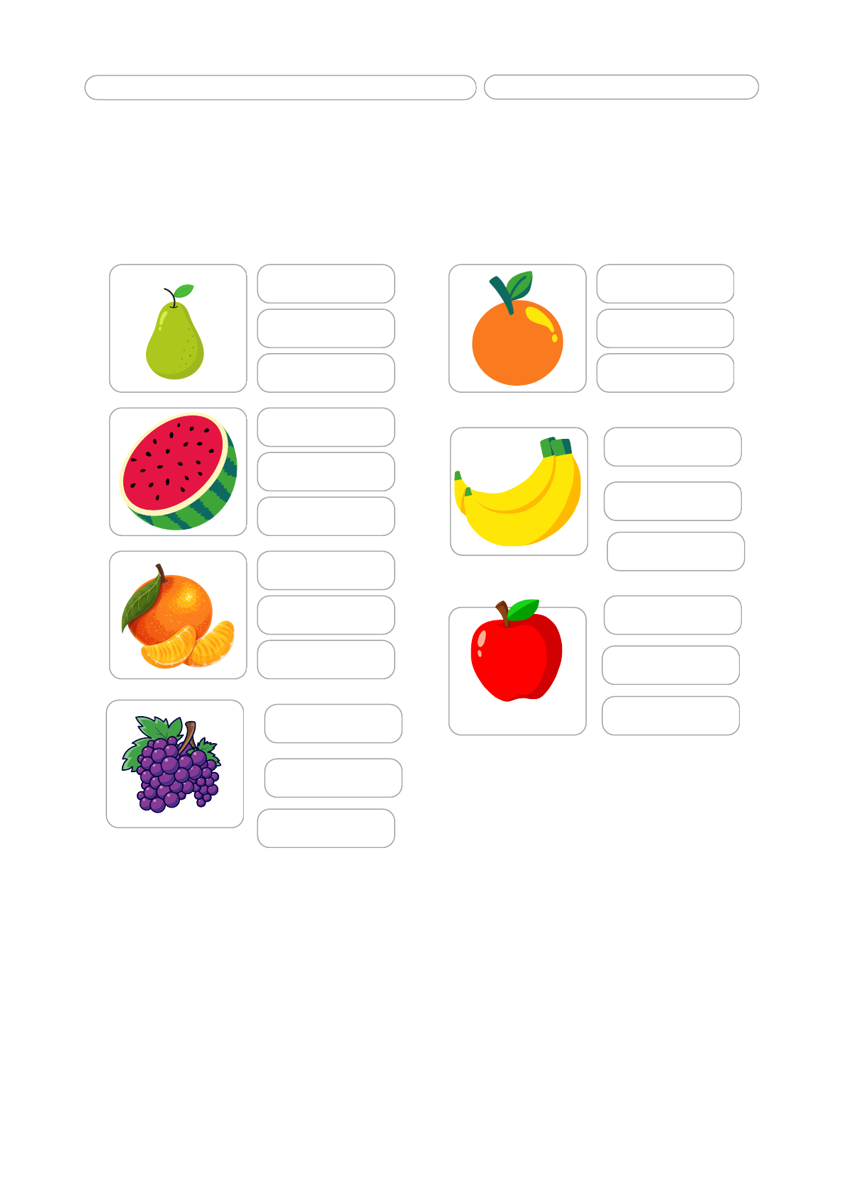 Fruits Name: Class: Look at each fruit and choose the correct option. Watermelon Mango Pear Orange Grapes Pineapple Cherry Strawberry Watermelon Grapefruit Tangerine Kiwi Watermelon Mango Banana banana grape strawberry Watermelon Pear apple Matching WorksheetMatching Worksheet Answer the correct word with word list and the picture! Banana Orange Peach Apple Tangerine Apricot Pumpkin Watermelon Pear Strawberry Name: Number: Fruits Orange Grapes Pineapple Tangerine Blueberry Banana Watermelon Pineapple Pear Peach Apple Banana Look at the pictures and circle the correct words Name: Date: