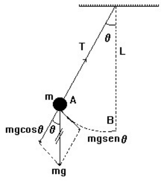 1 UNIVERSIDADE FEDERAL DO CEARÁ DEPARTAMENTO DE FÍSICA LABORATÓRIO DE FÍSICA PARA ENGENHARIA PRÁTICA 3: PÊNDULO SIMPLES 3.1 OBJETIVOS - Verificar as leis do pêndulo. - Determinar a aceleração da gravidade local. 3.2 MATERIAL - Pedestal de suporte com transferidor; - Massas aferidas m1 e m2; - Cronômetro (alternativamente pode ser usado a função cronômetro de um celular); - Fita métrica; - Fio (linha). 3.3 FUNDAMENTOS Pêndulo simples é o sistema constituído por uma massa puntiforme, presa à extremidade de um fio inextensível e de massa desprezível, capaz de se mover, sem atrito, num plano vertical, em torno de um eixo situado em sua outra extremidade. Pela própria definição, vemos que o pêndulo simples é uma concepção ideal. O que montaremos é aproximadamente um pêndulo simples. Figura 3.1. Pêndulo simples. Fonte: o autor. Quando afastada da posição de equilíbrio e solto, o pêndulo oscila sob a ação da gravidade. O movimento é oscilatório e periódico. Numa posição qualquer, afastada de um ângulo da posição de equilíbrio, as forças aplicadas à massa são: mg (peso) e T (tração no fio ). Decompondo o peso conforme indica a Figura 3.1, obtemos as componentes mgcos e mgsen. A resultante da tração e mgcos produz a aceleração centrípeta. A outra componente, 2 mgsen, é a força restauradora que age sobre m . Ela não é proporcional à alongação e sim a sen, F = - mgsen (3.1) Para que o movimento seja harmônico simples é necessário que a força restauradora seja proporcional ao deslocamento e dirigida no sentido oposto. Podemos substituir sen por , caso seja pequeno. Esta aproximação é válida para