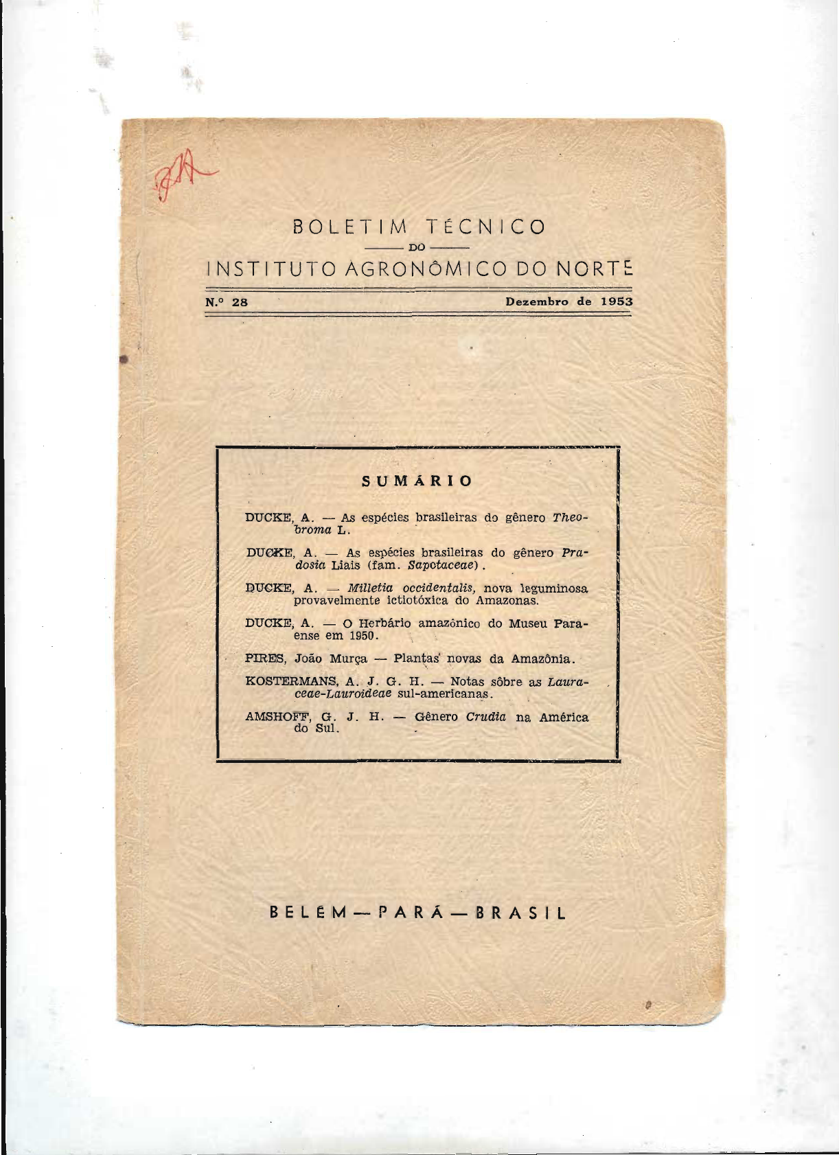 IzyxwvutsrqponmlkjihgfedcbaZYXWVUTSRQPONMLKJIHGFEDCBA N.OdcbaZYXWVUTSRQPONMLKJIHGFEDCBA2 8 B O L E T IM T É C N IC O --D O -- IN S T IT U T O A G R O N ô M IC O D O N O R T E : Dezembro de 1953GFEDCBA SUM ÁRIO DUCKE,A. - As espécies brasileiras do gênero Theo- . brom a L. - DUeKE, A. - As espécies brasileiras do gênero Pra- âosu:Liais (fam. sapotaceae). .. a Y € K E , A . - M illetia occide~talis,nova legumínosa provavelmente ictiotóxica do Amazonas. DUCKE; A. .-: O Herbárlo amazônico do Museu Para- . ense em 1950. . . PffiES, João Murça - Plantas' novas da Amazônia .. . . ' \ \. KOSTERMANS, A.J. G. H. - Notas sôbre as Laura-ZYXWVUTSRQPONMLKJIHGFEDCBA c e a e - L a u r o iâ e a e sul-amerícanas. AMSHOFF, G. J. H. - Gênero Crudia na América do Sul. BELl:M-PARA NOTAS SÔBRE ASZYXWVUTSRQPONMLKJIHGFEDCBAL A U R A C E A E - L A U R O I D E A E SUL AMERICANASdcbaZYXWVUTSRQPONMLKJIHGFEDCBA(*) A . J. G . H . KOSTERM ANS (* *) De 1936 a 1938 o autor publicou uma série de mono- grafias sôbre os gêneroslkjihgfedcbaZYXWVUTSRQPONMLKJIHGFEDCBALauraceae-Lauroiâeae da América. Desde então, nova literatura tem sido considerada e material adicinal pôde ser examinado graças a cortesia do Instituto Agronômico do Norte, Belém do Pará, Museu Nacional e Jardim Botânico do Rio de Janeiro, Padre RA .M oo S.J., Col- legio Anchieta, Pôrto Alegre, e Arnold Arboretum, U. S. A. -'- aos quais expressa sua gratidão. Os resultados estão apre- sentados a seguir. As espécies e os gêneros são tratados em ordem alfabética. As abreviações dos herbários são usadas em concordância com as adotadas nas monografias acima citadas . . .Além das espécies pertencentes à sub-família L a u r o iâ e a e , muito material tem sido recebido dos gêneros O cotea, N ectan- dra, P hoebe e P ersea, Como não existem monografias dêstes gêneros, o autor não está em condição de identificá-Ias com propriedade. CHAVEPARA G1!:NEROSDE L A U R A C E A E - L A U R O I D E A E Ia.· Fruto com pedicelo nú, não entumecído , Estames fér- teis 9; ciclo interno com glândulas . . . . . . . . . . . . . . . . . . . . . . . . . . . . . . B E I L S C H M I E D I A Nees. ( ') Tradução portuguêsa autorizada pelo autor. (.') D. Se. Botany Forest Survey, Division of Planning of the Forest Service of Indonêsi'a. -", lzyxwvutsrqponmlkjihgfedcbaZYXWVUTSRQPONMLKJIHGFEDCBA - 50- b. Fruto segurado por uma cúpula pateriforme muito pe- quena. Estames férteis 3, sem glândulas .ZYXWVUTSRQPONMLKJIHGFEDCBA · . . . . . . . . . . . . . . . . . . . . . . . . . M E Z I L A U R U S O. Kuntze. c. Fruto sôbre uma cúpula rasa em um pedicelo engros- sado, obcônico, carnoso. Estames férteis 3,6 ou 9. Es- tamlnódíos do 4.° cíclo largos, conspícuos. Pedicelos e raminhos da inflorescência esguios a filiformes . · . . . . . . . . . . . . . . . . . . . . . . . . . . . . . . . . . . . . A I O U E A Aubl. d. Fruto coberto até a metade do comprimento por uma cupula com pedícelo lenhoso, cilíndrico ou (emlkjihgfedcbaZYXWVUTSRQPONMLKJIHGFEDCBAE ndli- cheriav com cúpula mais rasa e o pedicelo carnoso e obcôníco (flôres dioicas, neste caso). Estames férteis 6 ou 9 2 e. Fruto completamente imerso no tubo acrescente da flôr. Estames férteis 9 C R Y P T O C A R Y A R. Br. 2a. Flôres dióicas. Cúpula frutífera bastante rasa com pe- dicelo carnoso. Estames férteis 9 .. E N D L I C H E R I A Nees. b. Flôres hermafroditas. Cúpula frutífera hemisférica com pedicelo cilíndrico, lenhoso. Estames férteis 6 ou 9 .. 3 3a. Tépalas 9; estames dos verticílos 2.° e 3.° férteis. · • . . . . . . . . . . . . . P H Y L L O S T E M O N O D A P H N E Kosterm. b. Tépalas 6; estames dos verticilos 1.0, 2.°, 3.°, férteis, (4 exceçõesem A niba, onde o verticilo 3.° é estéril) .. 4 c. Tépalas 6; estames dos verticilos 1.0 e 2.° estaminodiais ou ausentes; 3.° verticilo fértil, não conglutínados ou concrescidos '" . . . . . . . . . . . . . . . . . . . . .. L I C A R I A Aubl. 4a. Todos os estames com glândulas . · . . . . . . . . . . . . . . . . . . . . . . . . . . U R B A N O D E N D R O N Mez. b. Somente os estames do 3.° ciclo com glândulas ou glân- dulas ausentes... .. .. . . .. . . . . . . .. .. . . . . ... . . . .. .. 5 5a. Os 3 estames internos conatos ou conglutinados. Cúpu- la frutífera com margem externa reflexa e interna erecta S Y S T E M O N O D A P H N E Mez. b. Os 3 estames internos livres. Cúpula frutífera com mar- gem simples A N I B A Aubl. - 51lkjihgfedcbaZYXWVUTSRQPONMLKJIHGFEDCBA A IO U E A Aubl.dcbaZYXWVUTSRQPONMLKJIHGFEDCBA .. KOSTERMANSin Rec. travo boto néerl. 35: 57-104. 1938; ido in J. scient. research Indones. 1: 88. 1952; GMELlN, S yst.: 574. 1791 (not 1867); LINDLEY,Nat. syst., ed. 2: 201. 1836 (A jouea); ENDLICHER,Gen., Suppl. 4 (2): 57. 1847; DALLA TORRE& HARMS, Gen.: 178. 1900-07, Suppl.: 609; UPHOF, Pflgatt.: 155. 1910 (A juea); MACBRlDEin Publ. Field Mus. Nat. Hist. Bot. 13 (2): 844. 1938; ALLENin Ann. Missouri .Bot. Gard. 35 (1): 63. 1948; RECORD& HESS, Timb. New World: 204. 1943. - E ndocarpa Rafinesque, Sylva tellur.: 135. 1838; O. KUNTZEin Post& Ktze., Lexikon: 197. 1904; .MERRlL,Index Rafin.: 127. 1949; KOSTERMANSin J. scient. res., 1.C. 123. Visto que E ndocarpa corym bosa Raf., a espécie tipo de E ndocarpa Raf., é idêntica a A iouea dubia (H.B.K.) Mez., D. KUNTZEestava certo substituindo o nome subgenérico H u- jelandiopsis Mez por E ndocarpa (Raf.) O. Ktze. Conseqüentemente os três subgêneros devem ser nomea- dos: E ndooarpa (Rafin.) Ktze., E uaiouea Mez (=ZYXWVUTSRQPONMLKJIHGFEDCBAE u a iu e a K tze.) e T rianthera Mez. . . o A . C O S T A R IC E N S IS (Mez) Kosterm.; RECORD& HEss in "I'rop. Woods 69: 9. 1942; ALLENin J. Arnold Arb. 26: 419. 1945; DAYTONin Phytologia 4: 237. 1953. - A iouea lun- â e ü ia n a Allen ín J. Arnold Arb. 26: 419. 1945; ido in Ann. Missouri Bot. Gard. 35 (1): 64. 1948, tab. 41. Mesmo não tendo examinado o espécime 