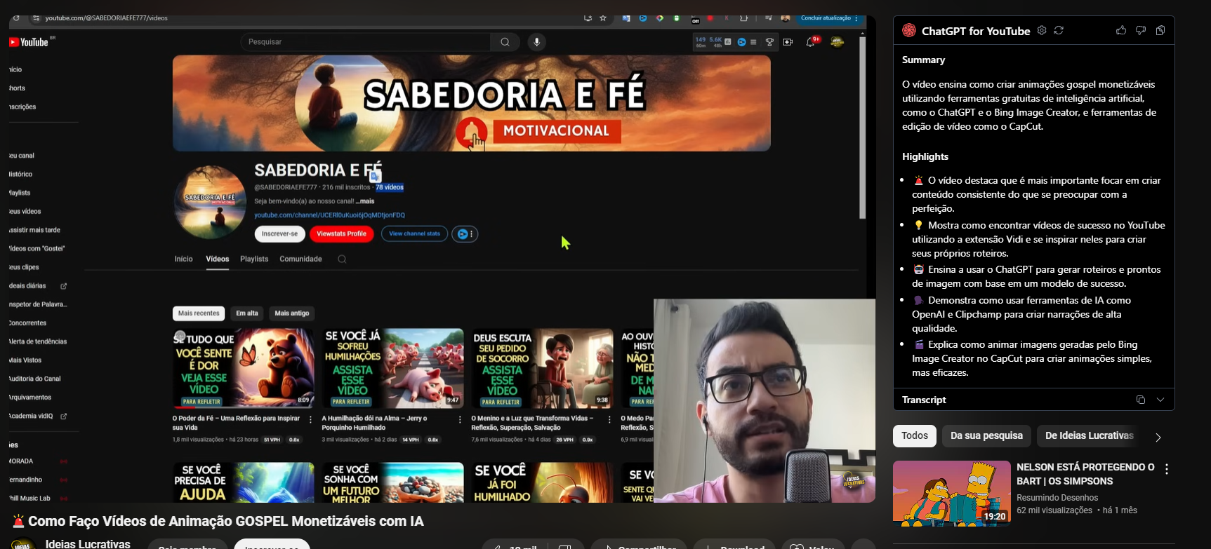 atualização ChatGPT for YouTube YouTube Summary horts SABEDORIA E FÉ O vídeo ensina como criar animações gospel monetizáveis utilizando ferramentas gratuitas de inteligência artificial. como ChatGPT e Bing Image Creator. e ferramentas de MOTIVACIONAL edição de vídeo como CapCut eu canal Highlights listórico SABEDORIA E O vídeo destaca que é mais importante focar em criar @SABEDORIAEFE777 216 mil videos Playlists conteúdo consistente do que se preocupar com a Seja bem ao nosso videos perfeição. youtube mais tarde Mostra como encontrar vídeos de sucesso no YouTube Inscrever-se Viewstats Profile View channel stats utilizando a extensão Vidi e se inspirar neles para criar com Videos Playlists Comunidade seus próprios roteiros. eus clipes Ensina a usar ChatGPT para gerar roteiros e prontos deais diárias de imagem com base em um modelo de sucesso. de Demonstra como usar ferramentas de IA como Mais recentes Em alta Mais antigo OpenAl e Clipchamp para criar narrações de alta Concorrentes SE VOCÊ JÁ qualidade. de tendências TUDO QUE DEUS ESCUTA AO OUV SOFREU VOCÊ SENTE SEU PEDIDO Explica como animar imagens geradas pelo Bing Mais Vistos HUMILHAÇÕES DE SOCORRO NÃO É DOR Image Creator no CapCut para criar animações simples, ASSISTA ASSISTA MED Auditoria do Canal VEJA ESSE mas eficazes. ESSE ESSE DE VIDEO VIDEO Arquivamentos PARA REFLETIR PARA REFLETIR PARA REFLETIR PARA Transcript Academia Poder da Fé Uma Reflexão para Inspiran A Humilhação na Alma Jerry Menino Luz que Transforma Vidas Medo sua Vida Porquinho Humilhado Reflexão, Superação Salvação visualizações 23 horas mil visualizações dias visualizações Todos Da sua pesquisa De Ideias Lucrativas ies MORADA SE VOCÊ SE VOCÊ SE VOCÊ NELSON ESTÁ PROTEGENDO ernandinho SONHA COM SE V PRECISA DE BART I os SIMPSONS Music AJUDA UM FUTURO SENTE O MELHOR HUMILHADO VE Resumindo Desenhos 62 mil visualizações há 1 mês Como Faço Vídeos de Animação GOSPEL Monetizáveis com IA 19:20 Ideias Lucrativas N