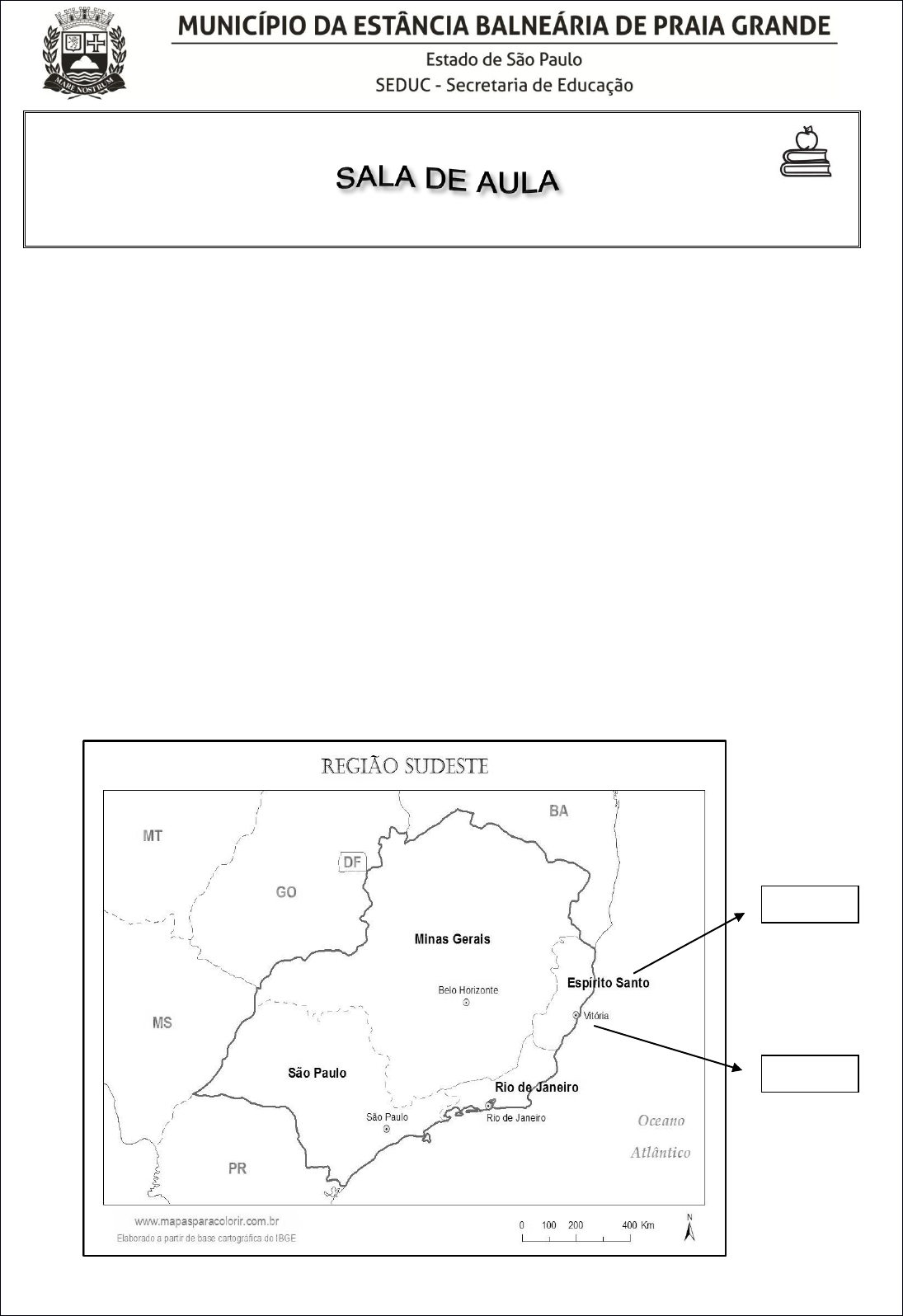 Olá pessoal, tudo bem? Na atividade de Geografia das semanas 5 e 6 aprendemos que nossos país tem 27 unidades federativas, distribuídas em 5 regiões brasileiras. Vimos também que o município de Praia Grande está localizado na região Sudeste. Na atividade de hoje iremos conhecer um pouco mais sobre a região onde moramos. Vamos lá! Região Sudeste A Região Sudeste, em extensão territorial, é a segunda menor do país, atrás apenas da região Sul. Abrange uma área de, aproximadamente, 924.620 km2, e é composta por quatro estados, dois deles considerados os mais representativos do Brasil, no que tange ao desenvolvimento, São Paulo e Rio de Janeiro. https://suportegeografico77.blogspot.com/2017/11/mapa-regiao-sudeste.html SEMANAS 7 e 8 Disciplina: Geografia 4º ano do Ensino Fundamental Estado Capital Aspectos sociais, físicos e econômico. Sociais: É a região mais populosa do Brasil, com uma população que ultrapassa 85 milhões de habitantes, correspondendo a, aproximadamente, 44% da população do país. Considerada uma das regiões que mais atraem migrantes, essa é região com maior densidade demográfica, 92,05 hab/km2. Físicos: O Sudeste do Brasil abrange, predominantemente, os climas: tropical atlântico e tropical de altitude, além de subtropical e semiárido, em algumas partes. O relevo é composto por serras, planaltos e planícies costeiras. A vegetação também é bastante diversa e conta com formações como a Mata Atlântica, o Cerrado e a Caatinga. No que tange à hidrografia, nessa região há predomínio dos rios de planalto. Econômicos: É considerada a região mais desenvolvida do país, correspondendo a 55,2% do PIB nacional. É, portanto, a região de maior destaque industrial, comercial e financeiro do Brasil. Por representar oportunidades de trabalho, essa região enfrenta problemas como a favelização e superpopulação. Há destaque para indústrias de automóveis, petrolíferas e siderúrgicas. https://escolakids.uol.com.br/geografia/regioes-do-brasil.htm Atividades Não esqueça de registrar as respostas em seu caderno 1- Quais os estados que formam a região Sudeste? Resposta: ______________________________________________________________ _______________________________________________________________________ 2- De acordo com o texto, a região Sudeste tem 2 estados que se destacam em todo o território nacional devido seu desenvolvimento econômico. Quais são eles? ( A ) Minas Gerais e São Paulo. ( B ) Rio de Janeiro e Espírito Santo. ( C ) Minas Gerais e Espírito Santo. ( D ) São Paulo e Rio de Janeiro. 3- Qual o maior estado da região Sudeste? ( A ) São Paulo ( B ) Rio de Janeiro ( C ) Minas Gerais ( D ) Espírito Santos https://escolakids.uol.com.br/geografia/regioes-do-brasil.htm 4- O Estado da Região Sudeste que não é banhado pelo Oceano Atlântico é: ( A ) Espírito Santo ( B ) Minas Gerais ( C ) Rio de Janeiro ( D ) São Paulo 5- Ligue os estados a suas capitais. ESTADOS CAPITAIS São Paulo Belo Horizonte Rio de Janeiro São Paulo Minas Gerais Vitória Espirito Santo Rio de Janeiro A Região Sudeste. https://youtu.be/fLOxH5NKCbc As capitais são as cidades em que está instalada a sede do governo – estadual ou federal – e onde estão localizados os principais órgãos e entidades que compõem os quadros governamentais. https://mundoeducacao.uol.com.br/geografia/capitais-do-brasil.htm Para saber mais!!!! https://youtu.be/fLOxH5NKCbc