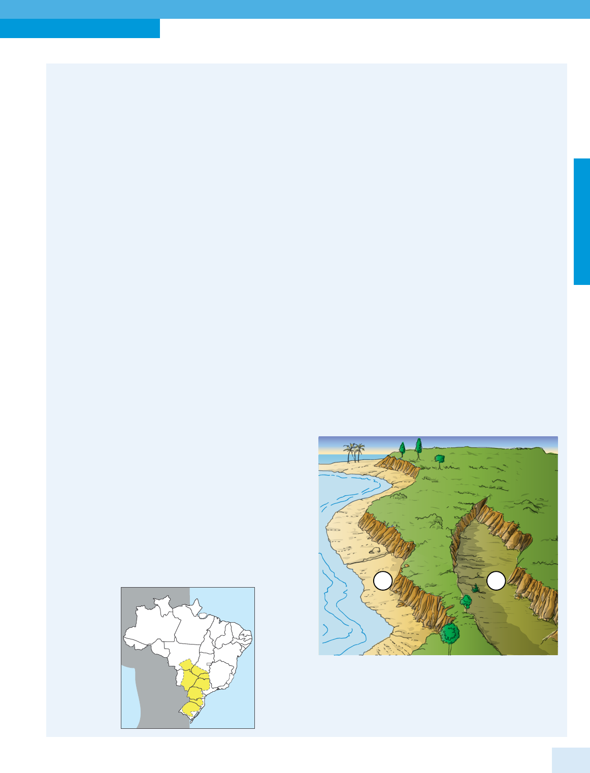 EXERCÍCIOS DE APRENDIZAGEM 01. (Unicamp-SP–2015) As restingas podem ser definidas como depósitos arenosos produzidos por processos de dinâmica costeira atual (fortes correntes de deriva litorânea, podendo interagir com correntes de maré e fluxos fluviais), formando feições alongadas, paralelas ou transversais à linha da costa. Podem apresentar retrabalhamentos locais associados a processos eólicos e fluviais. Quando estáveis, as restingas dão forma às “planícies de restinga”, com desenvolvimento de vegetação herbácea e arbustiva e até arbórea. As restingas são áreas sujeitas a processos erosivos desencadeados, entre outros fatores, pela dinâmica da circulação costeira, pela elevação do nível relativo do mar e pela urbanização. SOUZA, Célia Regina G. et al. Restinga: conceitos e emprego do termo no Brasil e implicações na legislação ambiental. São Paulo: Instituto Geológico, 2008. É correto afirmar que as restingas existentes ao longo da faixa litorânea brasileira são áreas A) pouco sobrecarregadas dos ecossistemas costeiros, devido ao modo como ocorreu a ocupação humana, com o processo de urbanização. B) onde a cobertura vegetal ocorre em mosaicos, encontrando-se em praias, cordões arenosos, dunas, depressões, serras e planaltos, sem apresentar diferenças fisionômicas importantes. C) suscetíveis à erosão costeira causada, entre outros fatores, por amplas zonas de transporte de sedimentos, elevação do nível relativo do mar e urbanização acelerada. D) onde o solo arenoso não apresenta dificuldade para a retenção de água e o acesso a nutrientes necessários ao desenvolvimento da cobertura vegetal herbácea em praias e dunas. 02. (UPE–2016) O território brasileiro apresenta uma grande variedade de estruturas geológicas, de compartimentos regionais e locais de relevo e um expressivo número de biomas. Isso acontece em face da interação de diversos fatores que ocorrem na superfície continental do país. Com relação a esse assunto, apresenta-se o mapa a seguir no qual desponta uma área amarela que corresponde, na sua totalidade, ao(à) OCEANO ATLÂNTICO OCEANO ATLÂNTICO O C EA N O PA C ÍF IC O A) Planalto Sul-Atlântico. B) Bacia sedimentar do Paraná. C) Distribuição original da Mata dos Pinhais. D) Planície dos Pampas Meridionais. E) Escudo sul-rio-grandense. 03. (UDESC) O Pão de Açúcar, situado no Rio de Janeiro, é uma grande elevação constituída por rochas gnáissicas (rocha metamórfica). Possui 390 m de altitude e se localiza na entrada da baía de Guanabara. Seu nome é uma denominação brasileira, utilizada para designar os cumes arredondados e abruptos do relevo. ADAS, 2001, p. 433. O principal agente formador desse tipo de relevo é A) a ação antrópica, que modelou a região através de desmatamentos e queimadas. B) o vento, que, através do trabalho abrasivo, modelou rochas de diferentes resistências ao desgaste. C) o intemperismo físico, que ocorre em virtude das variações térmicas em regiões de elevada altitude. D) o intemperismo químico, que atua com maior intensidade em regiões tropicais úmidas. E) o gelo, que, em eras geológicas pretéritas, erodiu e transportou partículas terrosas, esculturando o relevo. 04. (UNIFESP) Observe a figura. I II PENTEADO. As grandes unidades de relevo. 1994. A) Identifique corretamente as formas de relevo I e II apontadas na figura. B) Explique o processo de formação das formas de relevo I e II. Relevo Brasileiro e a Dinâmica Externa Modeladora do Relevo Terrestre G EO G R A FI A 11Bernoulli Sistema de Ensino
