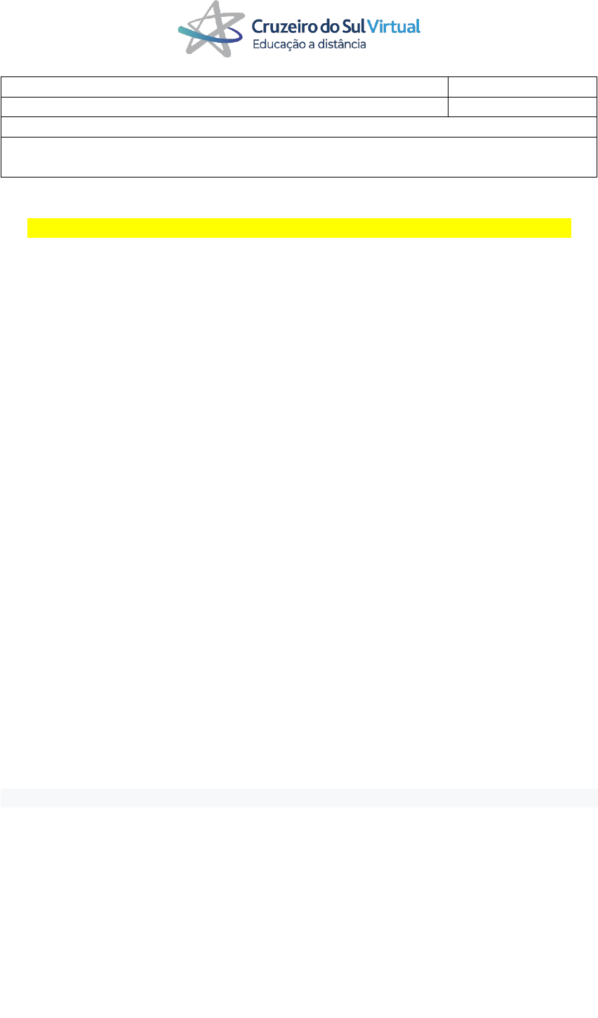 Nome Completo: JACKSON LUIZ SANTOS FERREIRA RGM: 18610871 Instituição: UNIFRAN CRUZEIRO DO SUL Data:02/11/2020 Curso: UNIFRAN CRUZEIRO DO SUL Disciplina: ESTG CURR SUOERV EM EDUC FÍS NOS ANOS FIN DO ENSINO FUND E NO ENS MÉD ATIVIDADE 1.1 - BNCC E SEUS DESAFIOS PARA IMPLEMENTAÇÃO Analise a BNCC e sua correlação com os direitos humanos e as ODS 2030 e elabore um texto dissertativo, com o mínimo de uma lauda, conforme as orientações a seguir: Materiais de referência para realização da atividade: Texto da BNCC (Educação Infantil, Ensino Médio ou Ensino Fundamental, conforme o segmento do estágio), Declaração Universal dos Direitos Humanos e ODS 2030. Produção do Texto Dissertativo. O texto dissertativo (com suas palavras) deverá fazer menção à: a) Origem da declaração dos direitos humanos (E ODS 2030); b) Propostas gerais presentes na BNCC (consultar a introdução documento); c) Uma competência específica (fundamental e médio) ou campo de experiência (infantil), a pelo menos 01 artigo da DUDH ou a pelo menos 01 ODS (para Educação Infantil, deve-se considerar a ODS 4 Meta 4.2); d) Correlação entre a importância da presença e do desenvolvimento dessa competência na formação do estudante egresso na educação infantil, do ensino médio ou fundamental, explicando-a adequadamente. Digite aqui o seu texto: A Base Nacional Comum Curricular (BNCC) e os direitos humanos:A Declaração Universal dos Direitos Humanos, que delineia direitos básicos, f oi consubstanciada em 10 de dezembro de 1948, durante a Assembléia Geral das Nações Unidas que aconteceu em Paris. É uma meta a ser alcançada por todos os povos e nações, promovendo o respeito a esses direitos através do ensino e da educação, que preza pela proteção universal dos direitos humanos. Tendo em vista que a habilidade da BNCC, Base Nacional Curricular, é relacionar a Carta dos Direitos Humanos ao processo de afirmação dos direitos fundamentais e de defesa da dignidade humana valorizando as instituições voltadas para a defesa desses direitos e para a identificação dos agentes responsáveis por sua violação então, a Base Nacional Curricular (BNCC) propõe uma aprimoração na Educação Básica, e tem como objetivos a aprendizagem e o desenvolvimento dos estudantes, propondo metas para os que trabalham na educação e tornando uma referência para a garantia da formação da cidadania e a vida em sociedade. O desenvolvimento das habilidades e capacidades dos alunos na educação básica são fundamentais para a vida coletiva dos estudantes, por isso os direitos humanos estão em evidência, e são essenciais para que seja alcançado os objetivos e meta s propostos pela BNCC, e para que se cumpra as exigências Jurídicas existentes em nosso País. Muitos são os desafios em meio tantas desigualdades, sendo um desafio para as políticas sociais em todo o mundo. Portanto as violações dos direitos humanos podem ocorrer, ainda, em uma dimensão de reconhecimento, de forma que algumas pessoas ou grupos podem não ser considerados como iguais nos vários ambientes da vida social (Fraser, 1997) e sofre rem discriminação, mesmo havendo pactos públicos e leis que garantam seu cumprimento. Os direitos humanos se faz necessário , precisando ser foco da atenção pública para que a sociedade seja de fato democrática e justa. Assim, os Estados Membros das Nações Unidas se comprometem a trabalhar uns com os outros visando promover os trinta artigos de direitos humanos reunidos e codificados num único documento. As Propostas gerais presentes na BNCC, ganharam um título que sintetiza suas principais características: Conhecimento. Pensamento científico, crítico e criativo. Repertório cultural. Comunicação Cultura digital. Trabalho e projeto de vida. À uma competência específica (fundamental e médio) ou campo de experiência (infantil), a pelo menos 01 artigo da DUDH ou a pelo menos 01 ODS (para Educação Infantil, deve-se considerar a ODS 4 Meta 4.2): 1. O eu, o outro e o nós , 2. Corpo, gestos e movimentos , 3. Traços, sons, cores e formas , 4. Escuta, fala, pensamento e imaginação , 5. Espaço, tempo, quantidades, relações e transformações . Esses são os 5 campos de Experiência para Educação Infantil estabelecidos pela Base comum curricular (BNCC), esses Campos enfatizam noções, habilidades, atitudes, valores e afetos que as crianças devem desenvolver de 0 a 5 anos e buscam garantir os direitos de aprendizagem dos bebês, crianças bem pequenas e crianças pequenas onde indicam as experiências fundamentais para o aprendizado e o desenvolvimento das crianças. Assim sendo o conhecimento é adquirido pelas experiências vivenciadas pela criança no ambiente escolar. Brasil Até 2030, assegurar a todas as meninas e meninos o desenvolvimento integral na primeira infância, acesso a cuidado s e à educação infantil de qualidade, de modo que estejam preparados para o ensino fundamental. Indicadores 4.2.1 - Proporção de crianças com menos de 5 anos que estão com desenvolvimento adequado da saúde, aprendizagem e bem -estar psicossocial, por sexo 4.2.2 - Taxa de participação no ensino organizado (um ano antes da idade oficial de ingresso no ensino fundamental), por sexo Nações Unidas Até 2030, garantir que todos as meninas e meninos tenham acesso a um desenvolvimento de qualidade na primeira infância, cuidados e educação pré-escolar, de modo que eles estejam prontos para o ensino primário. Desse modo as competências gerais da Base Nacional Comum Curricular (BNCC) são um conjunto de conhecimentos, habilidades, valores e atitudes que buscam o desenvolvimento intelectual, físico, social, emocional e cultural dos estudantes. Contribuindo para que alunos do ensino médio e fundamental, desenvolva características importantes, como a empatia, a comunicação, a resiliência, a coragem e a comunicação, essenciais para o sucesso no mercado profissional e 