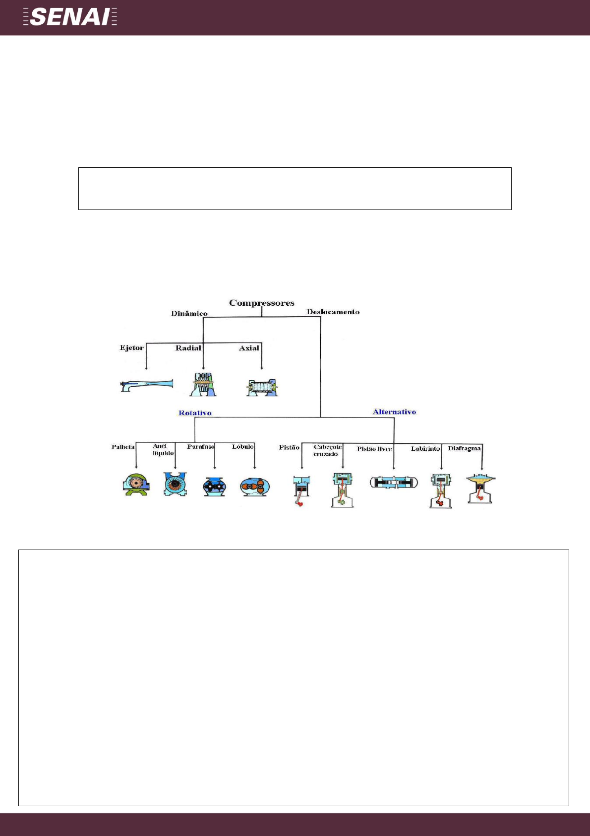 Técnico em Eletromecânica UNIDADE CURRICULAR – MONTAGEM DE SISTEMAS DE CONTROLE E ACIONAMENTOS ELETROMECÂNICOS SITUAÇÃO DE APRENDIZAGEM 1 – TESTE SURPRESA ATIVIDADE 1 Nome do aluno: MANUEL MESSIAS SOUSA CAJÁ Atividade: 1. Observe a imagem abaixo, selecione dois tipos de compressores e faça uma explanação sintetizada, porém rica em informações sobre os itens de sua escolha (foco em pneumática industrial): Desenvolva aqui sua explanação: O compressor de fuso roscado ou de parafuso é bastante aplicado na produção de ar comprimido para fins industriais. Comparando-o com o compressor linear de pistão, cite as características de ambos e dê sua opinião sobre qual você escolheria para utilizar numa oficina mecânica de uma média empresa de usinagem. 1 – Compressor de parafuso rotativo Esse compressor é usado em muitas aplicações, que incluem sistemas de ar comprimido industrial, processo de gás natural, sistema de vácuo, sistema de refrigeração e muito mais. Entre as vantagens dele, destacam-se a alta eficiência e a capacidade de atuar em cargas contínuas. O compressor parafuso consome cerca de 50% menos energia elétrica. No geral, a operação total desses modelos também é 60% mais econômica, já que as trocas de óleo também são mais prolongadas (a cada 8 mil horas). Os compressores parafuso também são mais silenciosos, têm manutenção mais simples, possuem maior vida útil e não vibram durante a operação. Além de todas essas características, o principal aspecto que faz esses compressores se destacarem é fundamental: são mais eficientes. 2 – Compressor de pistão Também são conhecidos como compressores de êmbolo, os compressores de pistão são os modelos mais comuns no mercado. Eles usam um ou mais pistões em movimento alternado para comprimir o gás ou o ar e são muito comuns em ambientes comerciais e industriais. A utilização do compressor de pistão traz várias vantagens para a produção das indústrias. Sua robustez garante a geração de ar comprimido em escala industrial, que pode ser armazenado para uso posterior. O equipamento possui longa vida útil, desde que receba as manutenções ideais instruídas pelo fabricante. Sua praticidade proporciona eficiência energética para diversos segmentos da indústria, que demandam um sistema de ar comprimido eficaz para aumentar a produtividade. Além disso, a aquisição do equipamento representa um investimento de rápido retorno e garantia. https://pressurecompressores.com/pressureupload/2020/10/qJEi-YD3.jpeg https://pressurecompressores.com/pressureupload/2020/10/qJEi-YD3.jpeg Técnico em Eletromecânica Análise de compressores Linear de Pistão Parafuso Vantagens: • A pressão necessária pode ser obtida independentemente do fluxo. • A capacidade da máquina única é qualquer fluxo abaixo de 500m3 / min • Na faixa de pressão geral, os requisitos para materiais são baixos. • A eficiência térmica é alta. • O peso e as características do gás têm pouco efeito no desempenho de funcionamento do compressor. Vantagens: • Eficiência na compressão de ar: o compressor pistão tem uma perda de 20% a 25%, o compressor parafuso possui 99,9% de eficiência. • Mais econômico: este é um modelo que utiliza a energia elétrica de forma inteligente, não ocupa muito espaço e é fácil de instalar. • Menor número de paradas de manutenção • Baixo nível de ruído • Ar mais limpo Desvantagens: (1) A estrutura é complexa e volumosa, com muitas partes vulneráveis, grande área útil, alto investimento, grande carga de trabalho de manutenção e vida útil curta, mas pode chegar a mais de 8.000 horas por meio de esforços; (2) A velocidade de rotação não é alta, o volume da máquina é grande e pesado e o volume de exaustão de uma única máquina é geralmente inferior a 500m3 / min; (3) Vibração durante a operação da máquina; (4) A exaustão é descontínua e o fluxo de ar tem pulsação, o que é fácil de causar vibração na tubulação. Em casos graves, a rede de tubos ou peças são frequentemente danificadas devido à pulsação e ressonância do fluxo de ar; (5) O regulamento de fluxo adota volume auxiliar ou válvula de desvio. Embora seja simples, conveniente e confiável, tem grande perda de energia e eficiência reduzida durante a operação de carga parcial; (6) Para compressores lubrificados com óleo, o óleo do gás precisa ser removido; (7) Quando várias unidades de compressor são usadas em grandes fábricas, há muitos operadores ou a intensidade de trabalho é alta. Desvantagens: O ruído de execução é grande. Sob circunstâncias normais, equipamentos de redução e redução de ruído devem ser instalados. 2. Devido ao seu forte equilíbrio, ele pode funcionar em alta velocidade, portanto, o consumo de energia é relativamente alto. 3. Após uma operação de longo prazo, a folga do parafuso aumentará e o custo de reparo ou substituição regular será grande. Imagem: Imagem: Argumente neste local sobre a sua escolha: Técnico em Eletromecânica Em geral, os compressores parafuso são mais eficientes energeticamente e costumam apresentar uma maior robustez devido ao seu projeto mais apropriado para ambientes industriais. O compressor de parafuso pode ser utilizado continuamente por 24 horas devido ao seu funcionamento com baixo aquecimento e poucas partes moveis. O compressor de parafuso utiliza muito menos lubrificação do que o compressor de pistão. Isso gera um ar comprimido com menos óleo e um custo de manutenção muito menor. A troca de óleo do compressor de parafuso é significativamente menor do que a troca de óleo em compressor de pistão. No compressor de pistão é necessário trocar o óleo a cada 200 horas, enquanto no parafuso só precisa fazer a troca a cada 8 mil horas, ou seja, são 40x mais que no compressor a pistão. O custo de aquisição do compressor de parafuso é um pouco maior, porém como mos