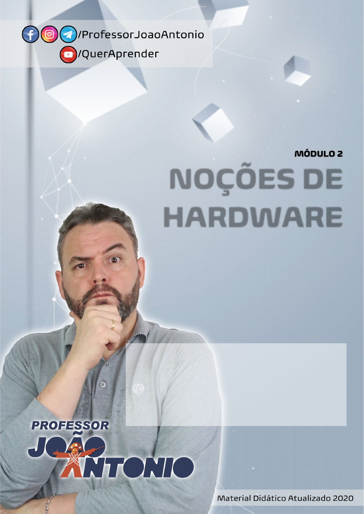 Noções de CRIPTOGRAFIA E AFINS TEORIA E QUESTÕES MÓDULO 2 NOÇÕES DE HARDWARE "Se você sempre acreditou que todos deveriam seguir as mesmas regras e ser julgados pelos mesmos padrões, isso faria com que você fosse rotulado como radical há 60 anos, um liberal há 30 anos e um racista hoje." Thomas Sowell Noções de Hardware – www.professorjoaoantonio.com Página 2 Apresentação do Autor Olá, querido leitor, estimada leitora, Meu nome é João Antonio e sou professor de informática há mais de 20 anos. Destes, 18 especificamente dedicados ao ensino para Concursos Públicos. Este material foi desenvolvido para abordar o assunto de Noções de Hardware, que ministro em cursos que disponibilizo em diversos sites [especialmente: www.professorjoaoantonio.com ]. Aqui estão meus contatos: Minha Página no Facebook: https://www.facebook.com/ProfessorJoaoAntonio [se quiser acompanhar questões e dicas!!] Meu Canal no Youtube: https://www.youtube.com/QuerAprender [Trago novidades aqui! Muito conteúdo!] Meu Instagram: @ProfessorJoaoAntonio Meu Telegram: https://t.me/ProfessorJoaoAntonio Meu Canal [para receber materiais e dicas]: https://t.me/CanalJoaoAntonio Meu Site: https://www.professorjoaoantonio.com [muitas aulas e materiais gratuitos aqui] Meu E-mail: professorjoaoantonio@yahoo.com Curso de Inglês Gratuito no Face/Insta: https://www.facebook.com/ingles.no.insta https://www.instagram.com/ingles.no.insta Noções de Hardware – www.professorjoaoantonio.com Página 3 Sumário 1. Introdução às Noções de Hardware ........................................................................................ 6 2. Microprocessador ......................................................................................................................... 6 2.1. Componentes da CPU .......................................................................................................................... 7 2.1.1. A Unidade de Controle [UC] ...................................................................................................... 7 2.1.2. A Unidade Lógica e Aritmética [ULA] .................................................................................... 8 2.1.3. Registradores .............................................................................................................................. 8 2.2. Marca e modelo ................................................................................................................................... 8 2.3. Clocks [frequências] ........................................................................................................................... 9 2.3.1. Clock Interno ............................................................................................................................... 10 2.3.2. Clock Externo .............................................................................................................................. 11 2.3.3. Relação Clock Interno / Clock Externo ............................................................................... 11 2.3.4. Aumento da Frequência – Overclocking ............................................................................. 12 2.4. Memória cache ................................................................................................................................... 12 2.5. Outras Características ...................................................................................................................... 16 2.5.1. Palavra do Processador .......................................................................................................... 16 2.5.2. Quantidade de Núcleos de Execução .................................................................................. 17 2.5.3. Litografia [ou Tecnologia de Miniaturização] de Fabricação ....................................... 19 2.6. Marcas e Modelos de Processadores ......................................................................................... 20 2.6.1. Processadores da família Intel ............................................................................................ 20 2.6.2. Processadores da AMD ........................................................................................................... 23 2.6.3. Processadores para Celular e Tablets (Mobile) ............................................................. 24 2.7. Palavras finais sobre processadores ......................................................................................... 25 3. Placa-mãe ..................................................................................................................................... 25 3.1. O que é a Placa-mãe e o que ela Tem? ....................................................................................... 25 3.2. O Chipset da Placa-mãe .................................................................................................................. 28 3.2.1. Controlador de Memória Integrado à CPU ........................................................................ 30 4. Memórias .................................................................................................................................... 31 4.1. Classificação pelo tipo de memória ............................................................................................ 32 4.1.1. Memória RAM ............................................................................................................................ 32 4.1.2. Memória ROM ............................................................................................................................ 34 4.1.3. Memórias Magnéticas ............................................................................................................ 38 4.1.4. Memórias Ópticas .................................................................................................................... 38 