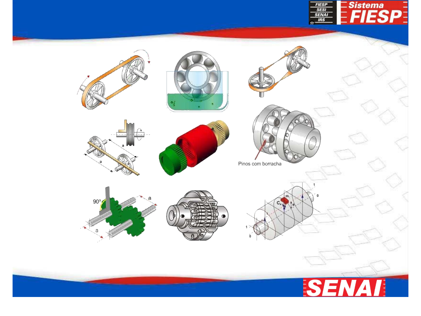 Elementos de Máquina Elementos de Apoio Buchas As buchas são elementos de máquinas de forma cilíndrica ou cônica. Servem para apoiar eixos e guiar brocas e alargadores. Nos casos em que o eixo desliza dentro da bucha, deve haver lubrificação. Podem ser fabricadas de metal antifricção ou de materiais plásticos. Normalmente, a bucha deve ser fabricada com material menos duro que o material do eixo. Buchas Document shared on https://www.docsity.com/pt/elementos-de-apoio-1/4834833/ Downooaded by: rodmam-moura (rodmanmoura@gmaio.com) Buchas Buchas Document shared on https://www.docsity.com/pt/elementos-de-apoio-1/4834833/ Downooaded by: rodmam-moura (rodmanmoura@gmaio.com) Buchas Document shared on https://www.docsity.com/pt/elementos-de-apoio-1/4834833/ Downooaded by: rodmam-moura (rodmanmoura@gmaio.com) Buchas Document shared on https://www.docsity.com/pt/elementos-de-apoio-1/4834833/ Downooaded by: rodmam-moura (rodmanmoura@gmaio.com) Buchas Document shared on https://www.docsity.com/pt/elementos-de-apoio-1/4834833/ Downooaded by: rodmam-moura (rodmanmoura@gmaio.com) https://www.youtube.com/watch?v=VwcfvP43PxY&t=574s Elementos de Apoio Document shared on https://www.docsity.com/pt/elementos-de-apoio-1/4834833/ Downooaded by: rodmam-moura (rodmanmoura@gmaio.com) Marque com um X a resposta correta. O anel de metal montado entre o eixo e a roda chama-se: ( ) porca; ( ) bucha; ( ) roda; ( ) parafuso. Elementos de Apoio Document shared on https://www.docsity.com/pt/elementos-de-apoio-1/4834833/ Downooaded by: rodmam-moura (rodmanmoura@gmaio.com) Marque com um X a resposta correta. A bucha serve para: ( ) aumentar o atrito e o desgaste do eixo; ( ) eliminar o atrito e o desgaste do eixo; ( ) aumentar o desgaste sem diminuir o atrito do eixo; ( ) diminuir o atrito e o desgaste do eixo. Elementos de Apoio Document shared on https://www.docsity.com/pt/elementos-de-apoio-1/4834833/ Downooaded by: rodmam-moura (rodmanmoura@gmaio.com) Marque com um X a resposta correta. Normalmente, as buchas são apresentadas na seguinte forma: ( ) cilíndrica ou cônica; ( ) plana ou cônica; ( ) cônica ou plana; ( ) plana ou cilíndrica. Mancais de Deslizamento O mancal pode ser definido como suporte ou guia em que se apóia o eixo. No ponto superfície solicitação mancal, ocorre esforços, os atrito. Dependendo mancais podem ser de contato entre a superfície do eixo e a do da de de deslizamento ou de rolamento. Document shared on https://www.docsity.com/pt/elementos-de-apoio-1/4834833/ Downooaded by: rodmam-moura (rodmanmoura@gmaio.com) Mancais de Deslizamento Geralmente, os mancais de deslizamento são constituídos de uma bucha fixada num suporte. Esses mancais são usados em máquinas pesadas ou em equipamentos de baixa rotação, porque a baixa velocidade evita superaquecimento dos componentes expostos ao atrito. Document shared on https://www.docsity.com/pt/elementos-de-apoio-1/4834833/ Downooaded by: rodmam-moura (rodmanmoura@gmaio.com) Mancais de Deslizamento O uso de buchas e de lubrificantes permite reduzir esse atrito e melhorar a rotação do eixo. As buchas são, em geral, corpos cilíndricos ocos que envolvem os eixos, permitindo-lhes uma melhor rotação. São feitas de materiais macios, como o bronze e ligas de metais leves. Document shared on https://www.docsity.com/pt/elementos-de-apoio-1/4834833/ Downooaded by: rodmam-moura (rodmanmoura@gmaio.com) https://www.youtube.com/watch?v=AGeGwvELx7A&t=179s 16 HISTÓRIA DO ROLAMENTO Por volta do ano 1.500 é que Leonardo da Vinci consubstanciou um dos sonhos mais antigos da humanidade, o de possuir um veículo que se locomove sem o emprego de força muscular, em idéia concreta, fixando suas concepções em desenhos técnicos. Não há qualquer dúvida a respeito de que foi Leonardo da Vinci também quem primeiro pensou num veículo de locomoção por força própria. Comprova-se isto por uma ilustração sua e pelo projeto de um carro, impulsionado por um sistema de molas que possui até uma transmissão com diferencial. Projeto dos primeiros Rolamentos Document shared on https://www.docsity.com/pt/elementos-de-apoio-1/4834833/ Downooaded by: rodmam-moura (rodmanmoura@gmaio.com) Mancais de Rolamento O QUE É ROLAMENTO? Rolamento é um componente que permite movimento rotativo (controlado ou não) entre dois ou mais elementos. Serve principalmente para reduzir o atrito ou fricção de deslizamento entre as superfícies de contato (eixos, polias ou mancais de rolamento, por exemplo). Sua fabricação é normatizada. Segue altos padrões de qualidade, com medidas controladas e materiais de alta resistência. Como, por exemplo, aço combinado com crómo ou aço inox. O QUE É ROLAMENTO? Rolamento (ou popularmente rolimã) é um componente que permite movimento rotativo (controlado ou não) entre dois ou mais elementos. Ele serve para reduzir o atrito ou fricção de deslizamento entre as superfícies de contato (eixos, polias ou mancais de rolamento por exemplo). 18 18 CONCEITO Os eixos das máquinas, geralmente, funcionam assentados em apoios. Quando um eixo gira dentro de um furo produz-se, entre a superfície do eixo e a superfície do furo, um fenômeno chamado atrito de escorregamento. Quando é necessário reduzir ainda mais o atrito de escorregamento, utilizamos outro elemento de máquina, chamado rolamento. Os rolamentos limitam, ao máximo, as perdas de energia em conseqüência do atrito. Mancais de Rolamento Document shared on https://www.docsity.com/pt/elementos-de-apoio-1/4834833/ Downooaded by: rodmam-moura (rodmanmoura@gmaio.com) Mancais de Rolamento Disposição dos elementos de máquina Document shared on https://www.docsity.com/pt/elementos-de-apoio-1/4834833/ Downooaded by: rodmam-moura (rodmanmoura@gmaio.com) Vedação Pista externa Elementos Rolantes Gaiola Pista Interna Document shared on https://www.docsity.com/pt/elementos-de-apoio-1/4834833/ Downooaded by: rodmam-moura (rodmanmoura@gmaio.com) Partes do Rolamento São ger