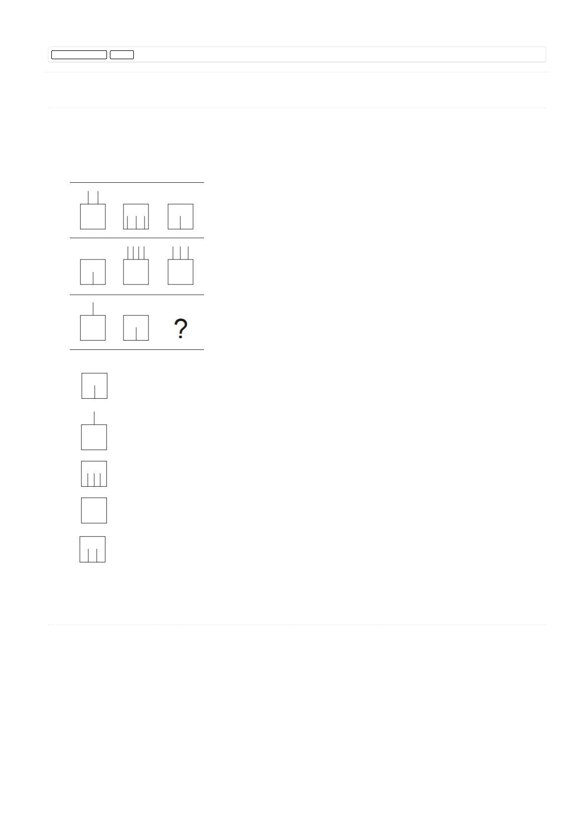 09/12/2017 Questões de Concursos e Perguntas de Concursos Públicos- Aprova Concursos https://www.aprovaconcursos.com.br/questoes-de-concurso/questoes/disciplina/Racioc%25C3%25ADnio+L%25C3%25B3gico/banca/FCC/filtro/2… 1/7 Raciocínio lógico x Fcc x 736) Q36059 (/questoes-de-concurso/questao/36059) (/questoes-de-concurso/questao/36059#imprimir) Provas: FCC - 2007 - TRF - 1ª REGIÃO - Técnico Judiciário - Área Administrativa (/questoes-de-concurso/prova/fcc-2007-trf-1-ordf-regiao-tecnico-judiciario-area-administrativa) Disciplina: Raciocínio Lógico (/questoes-de-concurso/disciplina/raciocinio-logico) - Assuntos: 1.1. Proposições (/questoes-de-concurso/questoes/assunto/1.1.+Proposi%C3%A7%C3%B5es) Assinale a alternativa, entre as cinco relacionadas, que preenche a vaga assinalada pela interrogação. a) b) c) d) e) 737) Q36061 (/questoes-de-concurso/questao/36061) (/questoes-de-concurso/questao/36061#imprimir) Provas: FCC - 2007 - TRF - 1ª REGIÃO - Técnico Judiciário - Área Administrativa (/questoes-de-concurso/prova/fcc-2007-trf-1-ordf-regiao-tecnico-judiciario-area-administrativa) Disciplina: Raciocínio Lógico (/questoes-de-concurso/disciplina/raciocinio-logico) - Assuntos: 1.1. Proposições (/questoes-de-concurso/questoes/assunto/1.1.+Proposi%C3%A7%C3%B5es) https://www.aprovaconcursos.com.br/questoes-de-concurso/questao/36059 https://www.aprovaconcursos.com.br/questoes-de-concurso/disciplina/raciocinio-logico https://www.aprovaconcursos.com.br/questoes-de-concurso/prova/fcc-2007-trf-1-ordf-regiao-tecnico-judiciario-area-administrativa https://www.aprovaconcursos.com.br/questoes-de-concurso/disciplina/raciocinio-logico https://www.aprovaconcursos.com.br/questoes-de-concurso/questao/36061 https://www.aprovaconcursos.com.br/questoes-de-concurso/questoes/assunto/1.1.+Proposi%C3%A7%C3%B5es https://www.aprovaconcursos.com.br/questoes-de-concurso/questoes/assunto/1.1.+Proposi%C3%A7%C3%B5es https://www.aprovaconcursos.com.br/questoes-de-concurso/prova/fcc-2007-trf-1-ordf-regiao-tecnico-judiciario-area-administrativa https://www.aprovaconcursos.com.br/questoes-de-concurso/questao/36061#imprimir https://www.aprovaconcursos.com.br/questoes-de-concurso/questao/36059#imprimir 09/12/2017 Questões de Concursos e Perguntas de Concursos Públicos- Aprova Concursos https://www.aprovaconcursos.com.br/questoes-de-concurso/questoes/disciplina/Racioc%25C3%25ADnio+L%25C3%25B3gico/banca/FCC/filtro/2… 2/7 Considerando as relações horizontais e verticais entre as �guras, assinale a alternativa que substitui a interrogação. a) b) c) d) e) 738) Q298354 (/questoes-de-concurso/questao/298354) (/questoes-de-concurso/questao/298354#imprimir) Provas: FCC - 2007 - TCE-MG - Auxiliar de Controle Externo (/questoes-de-concurso/prova/fcc-2007-tce-mg-auxiliar-de-controle-externo) Disciplina: Raciocínio Lógico (/questoes-de-concurso/disciplina/raciocinio-logico) - Assuntos: (/questoes-de-concurso/questoes/assunto/) Ocultar texto associado à questão Instruções: Para responder às questões de números 53 e 54, você deve observar que em cada um dos dois primeiros pares de palavras dadas, a palavra da direita foi obtida da palavra da esquerda segundo determinado critério. Você deve descobrir esse critério e usá-lo para encontrar a palavra que deve ser colocada no lugar do ponto de interrogação. arborizado - azar asteróides - dias articular - ? a) luar b) arar c) lira d) luta e) rara 739) Q298359 (/questoes-de-concurso/questao/298359) (/questoes-de-concurso/questao/298359#imprimir) Provas: FCC - 2007 - TCE-MG - Auxiliar de Controle Externo (/questoes-de-concurso/prova/fcc-2007-tce-mg-auxiliar-de-controle-externo) Disciplina: Raciocínio Lógico (/questoes-de-concurso/disciplina/raciocinio-logico) - Assuntos: (/questoes-de-concurso/questoes/assunto/) https://www.aprovaconcursos.com.br/questoes-de-concurso/questao/298359#imprimir https://www.aprovaconcursos.com.br/questoes-de-concurso/questao/298354#imprimir https://www.aprovaconcursos.com.br/questoes-de-concurso/questao/298359 https://www.aprovaconcursos.com.br/questoes-de-concurso/prova/fcc-2007-tce-mg-auxiliar-de-controle-externo https://www.aprovaconcursos.com.br/questoes-de-concurso/questoes/assunto/ https://www.aprovaconcursos.com.br/questoes-de-concurso/prova/fcc-2007-tce-mg-auxiliar-de-controle-externo https://www.aprovaconcursos.com.br/questoes-de-concurso/questao/298354 https://www.aprovaconcursos.com.br/questoes-de-concurso/questoes/assunto/ https://www.aprovaconcursos.com.br/questoes-de-concurso/disciplina/raciocinio-logico https://www.aprovaconcursos.com.br/questoes-de-concurso/disciplina/raciocinio-logico