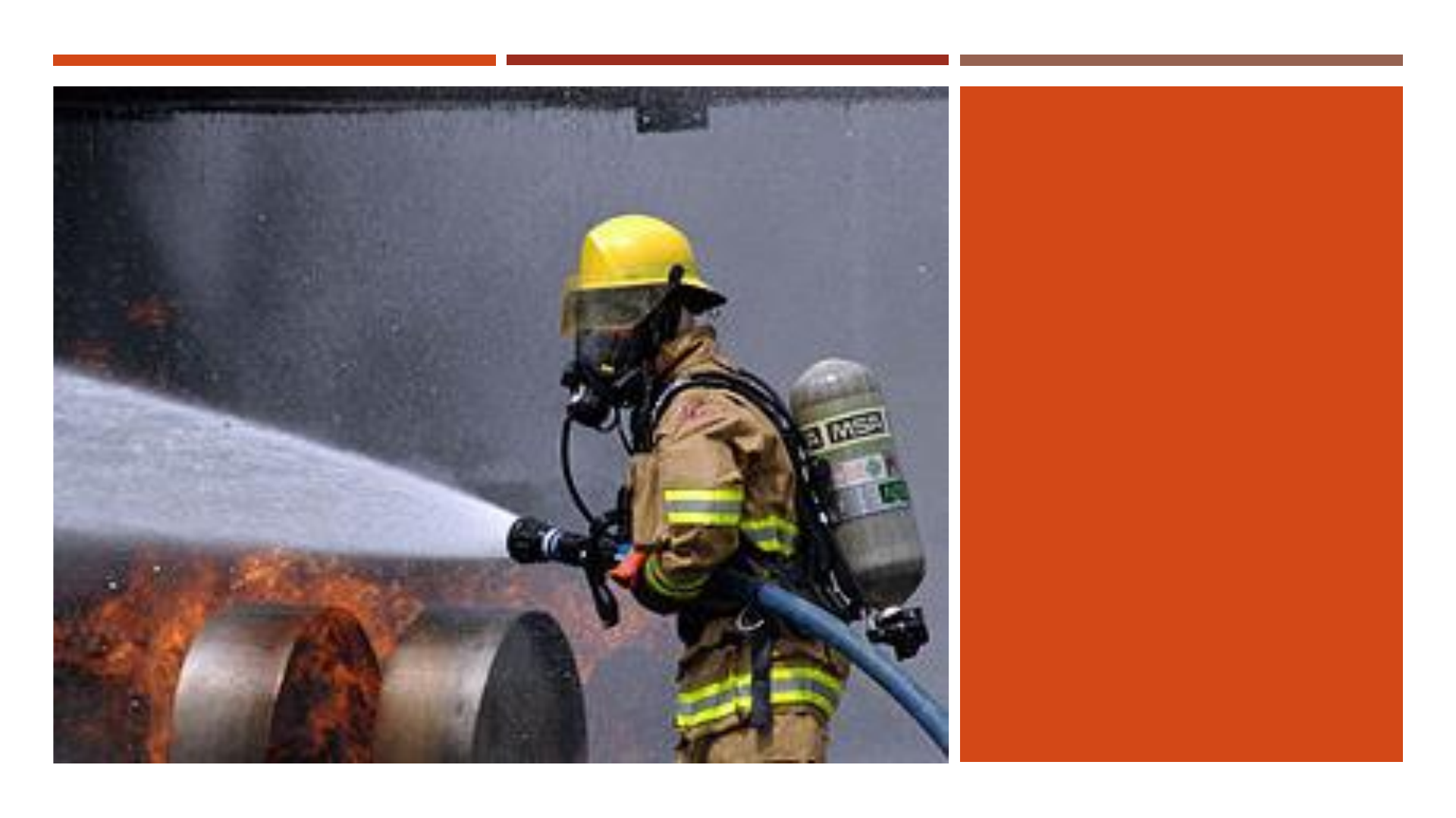 FUNDAMENTOS DE COMBATE A INCÊNDIOS PRINCIPAIS INCÊNDIOS NO BRASIL INCÊNDIOS E TRAGÉDIAS NO BRASIL Gran Circo Norte Americano (1961) RJ 500 mortos e 800 feridos Edifício Andraus (1972) SP 16 mortos e 332 feridos Edifício Joelma (1974) SP 179 mortos e 320 feridos Edifício Grande Avenida (1981) SP 17 mortos e 53 feridos Pojuca (1983) BA 100 mortos e 200 feridos Vila Socó (1984) SP 500 mortos Osasco Plaza (1996) SP 45 mortos e 482 feridos Boate Kiss (2013) RS 242 mortos e 680 feridos FOGO OU INCÊNDIO Fogo Incêndio FOGO OU INCÊNDIO? Incêndio, portanto, é o nome dado ao fogo que foge ao controle e consome aquilo a que não deveria consumir, podendo, pela ação das suas chamas, calor e/ou fumaça, proporcionar danos à vida, ao patrimônio e ao meio ambiente. COMBUSTÃO É definida como sendo uma reação química exotérmica que se processa entre um combustível e um comburente liberando luz e calor. Para que esta reação aconteça e se mantenha, são necessários quatro elementos: o combustível, o comburente, o calor e a reação em cadeia. Estes elementos são, didaticamente, simbolizados pelo tetraedro do fogo. COMBUSTÍVEL Entende-se como combustível toda substância capaz de queimar e propiciar a propagação do fogo. Os combustíveis podem se apresentar em todos os estados da matéria: sólido, líquido e gasoso. Exemplos de Combustíveis Sólidos Madeira, tecido, papel. Líquidos Gasolina, álcool. Gasosos GLP, hidrogênio COMBURENTE Comburente é o elemento que, durante a combustão, dá vida às chamas e as torna mais intensas e brilhantes, além disso, a presença do comburente permite a elevação da temperatura e a ocorrência da combustão. CALOR Calor, no estudo da teoria do fogo, é a energia capaz de iniciar, manter e propagar a reação entre o comburente e o combustível. Especificamente, trata-se da energia transferida de um ambiente para o outro em virtude da diferença de temperatura entre eles. PONTOS DE TEMPERATURA Ponto de Fulgor • É a temperatura mínima em que um combustível desprende vapores em quantidade suficiente para que, na presença de uma fonte externa de calor, se inflamem. No entanto, nesta temperatura, a chama não se manterá uma vez que for retirada a fonte de calor. Ponto de Combustão • É a temperatura em que um combustível desprende vapores em quantidade suficiente para que, na presença de uma fonte externa de calor, se inflamem e mantenham-se inflamando, mesmo na retirada da fonte externa de calor. Ponto de Ignição • É a temperatura em que um combustível desprende vapores em quantidade suficiente para que, em contato com um comburente, se inflamem e mantenham-se inflamando, independentemente da existência de uma fonte externa de calor. FASES DO INCÊNDIO INICIAL QUEIMA LIVRE QUEIMA LENTA FASE INICIAL É a fase em que grande parte do calor está sendo consumido no aquecimento dos combustíveis. A temperatura do ambiente, neste estágio, está ainda pouco acima do normal. O calor está sendo gerado e evoluirá com o aumento das chamas. QUEIMA LIVRE É a fase em que o ar, em virtude do suprimento de oxigênio, é conduzido para dentro do ambiente pelo efeito da pressão negativa provocada pela convecção, ou seja, o ar quente é expulso do ambiente para que ocupe lugares mais altos, enquanto o ar frio é “puxado” para dentro, passando pelas aberturas nos pontos mais baixos do ambiente. QUEIMA LENTA O consumo das fases anteriores torna o comburente insuficiente para manter a combustão plena, então, caso não haja suprimento suficiente de ar (ou de aberturas para que ele entre), as chamas podem deixar de existir. Com a concentração de oxigênio entre 0%e 8%, o fogo é reduzido a brasas. MÉTODOS DE EXTINÇÃO DE INCÊNDIO CONDIÇÃO ESSENCIAL Levando-se em conta o “Tetraedro do Fogo” e seus componentes, os métodos de extinção de incêndio baseiam-se na eliminação de um ou mais dos elementos que compõem o fogo. Didaticamente, se um dos lados do “tetraedro” for quebrado, eis que a combustão será extinta. RESFRIAMENTO O resfriamento é aplicando o agente extintor (normalmente água) de forma (jatos) que ele absorva mais calor do que o incêndio é capaz de produzir. É, sem dúvida, o método mais utilizado de combate a incêndios, dado que principal agente extintor utilizado é a água. O método consiste em reduzir a temperatura do combustível que está em queima, então, reduzindo o calor, diminui-se a liberação dos gases inflamáveis. ABAFAMENTO O abafamento consiste na interrupção do fornecimento do comburente da reação. Podem ser utilizados inúmeros agentes extintores para este fim, como, por exemplo, areia, terra, cobertores, espumas, entre outros. Não havendo comburente, não haverá combustão. No entanto, existe uma exceção à esta regra: elementos que tenham oxigênio em sua composição e que o liberem durante a queima, ou seja, que independem de comburente externo, como é o caso dos peróxidos orgânicos e do fósforo branco. ABAFAMENTO ISOLAMENTO O isolamento é a retirada do material combustível que ainda não queimou ou mesmo separá-lo do combustível que ainda queima. Desta forma, sem mais combustível, a combustão se encerrará por falta do que consumir. Possivelmente, esta é a forma mais simples de combate a incêndios. Pode ser feita com o fechamento de válvula ou interrupção de vazamento de combustível líquido ou gasoso, com a retirada de materiais combustíveis do ambiente em chamas, com a realização de aceiro, entre outros. CLASSES DE INCÊNDIO Muito embora a reação de combustão, representada pelo tetraedro do fogo, ocorra nos incêndios dos diferentes tipos de materiais, é necessário que os materiais combustíveis sejam classificados em classes distintas, para que as formas de queima e as propriedades dos materiais sejam levadas em consideração na escolha das melhores táticas e técnicas de combate e dos melhores agentes extintores a se utilizar. M