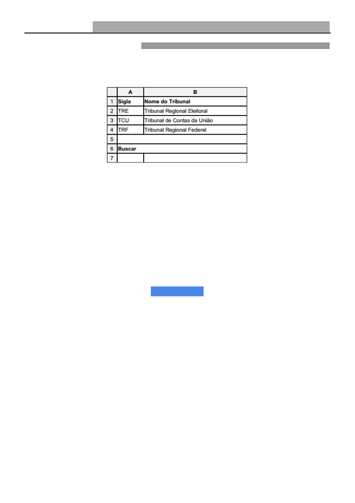 Dominando Informática Para Concursos: 300 Questões Comentadas dos Assuntos mais Cobrados em Provas Capítulo #04 – LibreOffice: Calc – Writer – Impress 151 Ano: 2015 Banca: FCC Órgão: DPE-RR Prova: Técnico em Informática Questão 157. Considere a planilha abaixo, criada no LibreOffice Calc 4.1, em português. Na célula B7 foi digitada uma fórmula que faz com que, ao se digitar na célula A7 a sigla de um dos Tribunais constantes nas células A2, A3 ou A4, o nome do Tribunal correspondente apareça na célula B7. A fórmula usada para essa finalidade foi a) =PROCH(A7;A2:B4;2) b) =PROCV(A7;A2:A4;2) c) =PROC(A7;A2:B4;2) d) =PROC(A7;A2:A4;2) e) =PROCV(A7;A2:B4;2) * * * * * RESPOSTA * * * * * Primeiro, vamos entender o que as funções PROC, PROCV, PROCH são capazes de fazer. PROC: Faz uma procura entre um valor, uma lista de pesquisa e uma lista de resultado. Por exemplo, digamos que você sabe o número de identificação de uma peça automotiva, mas não sabe o preço. Você pode usar a função PROC para retornar o preço em uma célula específica ao inserir o número da peça na célula de pesquisa. A estrutura dessa fórmula é: =PROC (valor_proc, vetor_proc, [Vetor_resultado]) PROCV: Faz uma procura vertical, por isso, é chamada de PROCV. Essa função retorna um valor correspondente de uma busca. Por exemplo, podemos fazer
