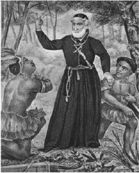 a) A escravidão foi por eles aceita, na expectativa de sua proibição pela Coroa portuguesa, por pressão dos jesuítas. b) Sua participação nos aldeamentos fez parte da integração entre os projetos religioso e bélico de domínio português, executados por jesuítas e bandeirantes. c) A existência de alianças entre indígenas e portugueses não exclui as rivalidades entre grupos indígenas e entre os nativos e os europeus. d) A adoção do trabalho remunerado dos indígenas nos engenhos de São Vicente contrasta com as práticas de trabalho escravo na Bahia e Pernambuco. 83 - (UNIRG TO) Analise a imagem a seguir. LEGRAND, C. Padre Antônio Vieira convertendo os índios do Brasil: Litografia colorida (1611). Arquivo Histórico Ultramarino. Disponível em: . Acesso em: 14 out. 2013. Esta imagem, reproduzida em diversos livros didáticos de história, reforçava, na sociedade brasileira, determinada visão sobre a colonização da América Portuguesa. Expressa no discurso da imagem apresentada, essa visão a) valoriza as contribuições de diferentes culturas na formação do Brasil, atribuindo detalhamento e particularidades aos sujeitos. b) legitima a catequização promovida pelos jesuítas, atribuindo comportamento passivo e submisso aos indígenas. c) destaca a harmonia nas relações entre missionário e indígenas, atribuindo gestos respeitosos e fraternais aos personagens. d) associa o religioso à dominação promovida pela Coroa Portuguesa, atribuindo uma postura autoritária ao padre que aparece com o dedo em riste. 84 - (Fac. Cultura Inglesa SP) A cada canto um grande conselheiro, Que nos quer governar cabana e vinha; Não sabem governar sua cozinha, E podem governar o mundo inteiro. Que os Brasileiros são bestas, e estarão a trabalhar toda a vida por manter maganos* de Portugal. (Gregório de Matos. Poemas escolhidos, 1975.) *Magano: trapaceiro. Estas estrofes, extraídas de dois poemas do escritor baiano Gregório de Matos (1633-1696), apelidado de “Boca do Inferno”, referem-se a) à decadência da administração da Metrópole portuguesa no Brasil e ao empobrecimento econômico da colônia. b) à situação política da sociedade colonial brasileira e às relações econômicas da colônia com a Metrópole. c) à incapacidade dos funcionários metropolitanos de valorizarem economicamente a colônia e à grande religiosidade dos brasileiros. d) à honestidade da nobreza portuguesa instalada no Brasil e à oposição política dos colonos brasileiros a Portugal. e) à corrupção da burocracia metropolitana no Brasil e à desonestidade dos colonos brasileiros. 85 - (Fac. Direito de Franca SP) “*Houve, no território brasileiro, durante o período colonial,+ esta disseminação pasmosa e sem paralelo que aparta e isola os indivíduos, cinde o povoamento em núcleos esparsos de contato e comunicações difíceis, muitas vezes até impossíveis.” Caio Prado Júnior. Formação do Brasil contemporâneo. São Paulo: Brasiliense, 1987, p. 37. Entre os fatores que colaboraram para o tipo de povoamento do território brasileiro, descrito no texto, podemos incluir a) a contínua interferência britânica na colonização do Brasil, que impediu a autonomia comercial, política e administrativa das companhias coloniais de comércio. b) o avanço da ocupação espanhola na região do Prata e do atual Mato Grosso, que impediu a consolidação da hegemonia portuguesa sobre toda a América do Sul c) a ocupação de parte do Nordeste por holandeses, no decorrer do século XVIII e XIX, que dividiu ao meio a zona de colonização portuguesa na América. d) a União Ibérica, que reuniu as colônias espanholas e portuguesa sob o comando de uma mesma Coroa, e eliminou a especificidade da empresa colonial portuguesa. e) o esforço de colonização simultânea, para proteção territorial e defesa da faixa litorânea que coube a Portugal, segundo o Tratado de Tordesilhas. 86 - (IFRS) O domínio holandês sobre uma valiosa parte do Nordeste brasileiro, bem como sobre feitorias portuguesas na África, acarretou transformações na sociedade colonial brasileira e metropolitana. Entre tais transformações, pode-se citar a a) ação dos bandeirantes na busca e aprisionamento de indígenas, que serviriam como mão de obra alternativa ao africano, cujo preço aumentara, algo que veio a provocar uma maior exploração das terras no interior do Brasil. b) plantação do café na região Sudeste, garantindo a exploração lucrativa da área colonial que permaneceu livre da intervenção estrangeira, fato que permitiu o aumento das rendas que, posteriormente, financiariam a luta para a expulsão dos holandeses. c) negociação entre Maurício de Nassau e a Coroa espanhola, que reinava sobre ambos os países ibéricos, com o intuito de garantir a devolução do Nordeste em troca da ajuda de tropas portuguesas para a fixação dos holandeses na colônia francesa ao Norte da Amazônia brasileira. d) decadência do reino de Portugal que, severamente enfraquecido pela crise econômica iniciada pelos holandeses, acabou derrotado pelos espanhóis, que foram responsáveis pela morte do monarca português D. Sebastião, dando assim início à União Ibérica. e) aliança entre os holandeses e os nativos das tribos tupinambás, fato que levou a um maior fortalecimento dos invasores na região, o que culminou no estímulo à criação da Confederação dos Tamoios, liga de diversas tribos inimigas dos portugueses. 87 - (PUC RS) Analise as afirmativas sobre o Descobrimento do Brasil, preenchendo os parênteses com V (verdadeiro) ou F (falso). ( ) Pode ser enquadrado no processo de expansão comercial europeia do início da Era Moderna, que objetivava a descoberta de novas fontes de metais preciosos e de mercadorias atrativas para o mercado consumidor europeu. ( ) Foi fundamental na construção do império ultramarino português, na medida em que as riquezas logo encontradas na nova terra levaram a cor
