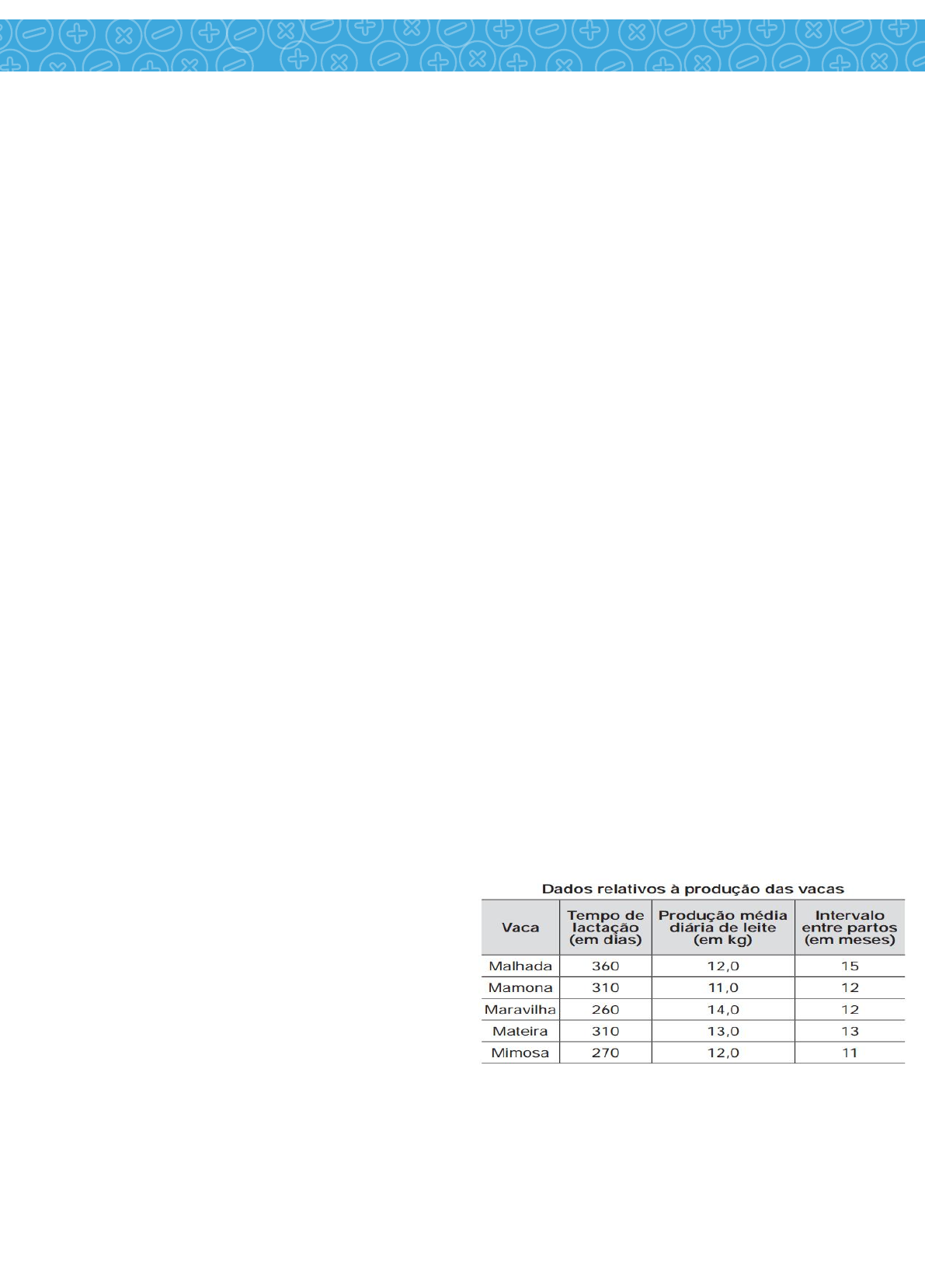 Matemática básica lista 5 Decimal 12.Alberto precisava efetuar uma viagem no final de semana e optou por alugar um carro. A locadora cobra uma taxa fixa diária de R$ 48,00 por 24 horas que inicia às 8 horas de uma manhã e termina às 8 horas da outra manhã, independentemente do horário de retirada ou devolução, e R$ 0,33 o quilometro rodado. Alberto retirou o carro da locadora na sexta-feira, às 17 horas e 32 minutos, e devolveu na segunda-feira, às 16 horas e 10 minutos. Entre a saída da locadora e o retorno para a devolução do carro, rodou 820 km. Diante do exposto, analise as assertivas abaixo. I. O custo variável pago por Alberto foi de R$ 270, 60. II. O total pago por Alberto pela locação foi de R$ 414,60. III. O valor da locação, em minutos, pago por Alberto foi de aproximadamente R$ 0,11. IV. Se com Alberto estivessem na viagem mais 3 pessoas, o custo para cada uma, rateado, seria de R$ 138,20. É correto o que se afirma em: a) I, apenas. b) I e III, apenas. c) II e IV, apenas. d) I, II, III e IV. e) I, II e III, apenas. 13.Até novembro de 2011, não havia uma lei específica que punisse fraude em concursos públicos. Isso dificultava o enquadramento dos fraudadores em algum artigo específico do Código Penal, fazendo com que eles escapassem da Justiça mais facilmente. Entretanto, com o sancionamento da Lei 12.550/11, é considerado crime utilizar ou divulgar indevidamente o conteúdo sigiloso de concurso público, com pena de reclusão de 12 a 48 meses (1 a 4 anos). Caso esse crime seja cometido por um funcionário público, a pena sofrerá um aumento de 1/3. Se um funcionário público for condenado por fraudar um concurso público, sua pena de reclusão poderá variar de a) 4 a 16 meses. b) 16 a 52 meses. c) 16 a 64 meses. d) 24 a 60 meses. e) 28 a 64 meses. 14.Qual alternativa representa a dízima periódica 2,333... ? a) 5/3 b) 7/3 d) 7/4 d) 9/4 e) 11/4 15.O índice de eficiência utilizado por um produtor de leite para qualificar suas vacas é dado pelo produto do tempo de lactação (em dias ) pela produção média diária de leite (em kg), dividido pelo intervalo entre partos (em meses). Para esse produtor, a vaca é qualificada como eficiente quando esse índice é, no mínimo, 281 quilogramas por mês, mantendo sempre as mesmas condições de manejo (alimentação, vacinação e outros). Na comparação de duas ou mais vacas, a mais eficiente é a que tem maior índice. A tabela apresenta os dados coletados de cinco vacas: Após a análise dos dados, o produtor avaliou que a vaca mais eficiente é a: a) Malhada. b) Mamona. d) Mateira. c) Maravilha. e) Mimosa. Matemática básica lista 5 Decimal 16.Uma empresa exportadora recebeu um pedido de 50 toneladas de grãos de soja. O cliente exigiu que a soja fosse embalada em sacas de 60 kg e que cada saca apresentasse sua massa em libras. Considere que 1kg equivale à 2,2 libras. É CORRETO afirmar que a indicação, expressa em libras, em cada saca foi de : a) 132.000 lb. b) 110 lb. c) 200 lb. d) 660 lb. e) 132 lb. 17.Quando a Lua dá uma volta completa ao redor da Terra, isto é chamado de mês lunar. Mas este não é igual ao do calendário solar. O mês lunar tem uma duração aproximada de 27,3 dias terrestres. A duração do mês lunar é, então, aproximadamente de 27 dias e: a) 7 horas e 12 minutos. b) 7 horas. c) 6 horas. d) 6 horas e 2 minutos. 18.Certa máquina copiadora faz, no máximo, 30 cópias por minuto. Essa máquina só pode funcionar, no máximo, duas horas por dia. Para essa máquina fazer 15.000 cópias, são necessários pelo menos: a) 4 dias b) 5 dias c) 6 dias d) 7 dias e) 8 dias 19.Deseja-se comprar lentes para óculos. As lentes devem ter espessuras mais próximas possíveis da medida 3mm. No estoque de uma loja, há lentes de espessuras: 3,10 mm; 3,021 mm; 2,96 mm; 2, 099 mm e 3,07 mm. Se as lentes forem adquiridas nessa loja, a espessura escolhida será, em milímetros, de: a)2,099 b) 2,96. c) 3,021. d) 3,07. e) 3,10. 20.Uma polegada equivale a 25,4 mm. Alguns artigos da construção civil ainda têm suas medidas dadas em polegadas e, por isso, os funcionários das lojas de materiais precisam, eventualmente, fazer as conversões de milímetros para polegadas. Entre as regras abaixo, assinale a que resulta numa melhor aproximação para essa conversão. a) Dividir a medida em milímetros por 4 e deslocar a vírgula uma casa para a esquerda. b) Multiplicar a medida em milímetros por 4 e deslocar a vírgula duas casas para a esquerda. c) Multiplicar a medida em milímetros por 4 e deslocar a vírgula três casas para a esquerda. d) Dividir a medida em milímetros por 5 e deslocar a vírgula uma casa para a direita. e) Dividir a medida em milímetros por 5 e deslocar a vírgula duas casas para a direita. Matemática básica lista 6 MMC e MDC 1. Três viajantes partem num mesmo dia de uma cidade A. Cada um desses três viajantes retorna à cidade A exatamente a cada 30, 48 e 72 dias, respectivamente. O número mínimo de dias transcorridos para que os três viajantes estejam juntos novamente na cidade A é: a) 144. b) 240. c) 360. d) 480. e) 720. 2. Estudos e simulações são necessários para melhorar o trânsito. Por exemplo, imagine que, de um terminal rodoviário, partam os ônibus de três empresas A, B e C. Os ônibus da empresa A partem a cada 15 minutos; da empresa B, a cada 20 minutos; da empresa C, a cada 25 minutos. Às 7h, partem simultaneamente 3 ônibus, um de cada empresa. A próxima partida simultânea dos ônibus das 3 empresas será às a) 9h. b) 9h50min. c) 10h30min. d) 11 h. e) 12h. 3. Um determinado corpo celeste é visível da Terra a olho nu de 63 em 63 anos, tendo sido visto pela última vez no ano de 1968. De acordo com o calendário atualmente em uso, o primeiro ano da era Cristã em que esse corpo celeste esteve visível a olho nu da Terra foi o ano a) 15. b) 19. c) 23. d) 27. e) 31. 4. No sítio de Paulo, a colheita de laranjas ficou entre 500 e 1500 u