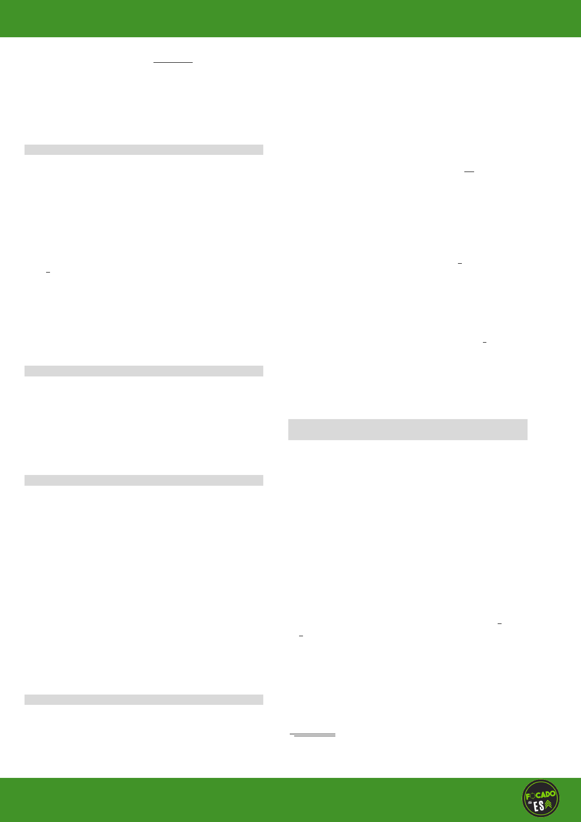 www.focadonaesa.com.br 88. (EEAR – 2006) O conjunto dos valores reais de 𝑥 para os quais a expressão *+$ |*%+$6*)'$| é estritamente positiva é: A) {𝑥 ∈ ℝ|𝑥 > 1} B) {𝑥 ∈ ℝ|𝑥 > 3 e 𝑥 ≠ 7 } C) {𝑥 ∈ ℝ|𝑥 > 1 ou 3 1, 𝑥 ≠ 3 e 𝑥 ≠ 7} INEQUAÇÃO MODULAR 89. (EEAR – 2010) Seja a inequação |𝑥 − 1| ≤ 3. A soma dos números inteiros que satisfazem essa inequação é: A) 8 B) 7 C) 5 D) 4 90. (EEAR – 2007) No conjunto solução da inequação q1 − *%q 0 C) 𝑥 > 4 D) 𝑥 ≤ 2 POTÊNCIA 92. (EsSA – 2013) Encontre o valor numérico da expressão: 𝐸 = 112 + 112 + 112 + 112 + 112 + 112 + 112 + 112 + 112 + 112 + 112. A) 12122 B) 1212 C) 11$& D) 11! E) 1122 93. (EsSA – 2012) Se 5*)' = 100, então 5'* é igual a: A) 4 B) 8 C) 10 D) 16 E) 100 EQUAÇÃO EXPONENCIAL 94. (EsSA – 2015) Identifique a equação exponencial. A) 2𝑥 = 4 B) 2 + 𝑥 = 4 C) 𝑥' = 4 D) log* 4 = 2 E) 2* = 4 95. (EEAR – 2012) No conjunto dos números reais, a equação (3*)* = 9! tem por raízes: A) um número positivo e um negativo. B) um número negativo e o zero. C) dois números negativos. D) dois números positivos. 96. (EEAR – 2018.2) Na função 𝑓(𝑥) = 27 &#% & , tal que 𝑥 ≠ 0, o valor de 𝑥 para que 𝑓(𝑥) = 37, é um número: A) divisível por 2 B) divisível por 3 C) divisível por 5 D) divisível por 7 97. (EEAR – 2019.2) Sabe-se que @' " D * = 4*. Dessa forma, 𝑥 + 2 é igual a A) 5 B) 4 C) 3 D) 2 98. (EEAR – 2009) Se 𝑥 é a raiz da equação @' " D * = 2,25, então o valor de 𝑥 é: A) 5 B) 3 C) −2 D) −4 EQUAÇÃO EXPONENCIAL COM SUBSTITUIÇÃO DE VARIÁVEL 99. (EEAR – 2018.1) O valor real que satisfaz a equação 4* − 2* − 2 = 0 é um número: A) entre –2 e 2 B) entre 2 e 4 C) maior que 4 D) menor que –2 100. (EsSA – 2012) O conjunto solução da equação exponencial 4* − 2* = 56 é: A) {−7, 8} B) {3, 8} C) {3} D) {2, 3} E) {8} 101. (EEAR – 2008) A raiz real da equação 25√* − 24 ∙ 5√* = 25 é um número múltiplo de: A) 7 B) 5 C) 3 D) 2 102. (EsSA – 2009) A soma dos dois primeiros números inteiros do domínios da função definida por 𝑔(𝑥) = $ √8%&'!+"'%&#( . A) 3 B) 1 www.focadonaesa.com.br C) −1 D) 7 E) 5 FUNÇÃO EXPONENCIAL 103. (EEAR – 2019.2) A população de uma determinada bactéria cresce segundo a expressão 𝑃(𝑥) = 30 ∙ 2*, em que 𝑥 representa o tempo em horas. Para que a população atinja 480 bactérias, será necessário um tempo igual a _____ minutos. A) 120 B) 240 C) 360 D) 400 104. (EsSA – 2018) Seja a função definida por 𝑓: ℝ ⟶ ℝ, tal que 𝑓(𝑥) = 2*. Então 𝑓(𝑎 + 1) − 𝑓(𝑎) é igual a: A) 𝑓(𝑎) B) 1 C) 2𝑓(𝑎) D) 𝑓(1) E) 2 105. (EEAr – 2013) Seja uma função real definida por 𝑓(𝑥) = (𝑥 + 1) ∙ 𝑚*+$. Se 𝑓(2) = 6, então 𝑚 é igual a: A) 4 B) 3 C) 2 D) 1 106. (EEAr – 2015) Se 𝑓(𝑥) = 𝑎* + 𝑏 é uma função tal que 𝑓(0) = & " e 𝑓(−1) = 1, então o valor de “𝑎” é A) 1 B) 2 C) $ ' D) " ' 107. (EEAR – 2007) Sejam as funções 𝑓, 𝑔, ℎ e 𝑡 definidas, respectivamente, por 𝑓(𝑥) = @' " D +* , 𝑔(𝑥) = 𝜋*, ℎ(𝑥) = j√2k +* e 𝑡(𝑥) = @√$6 " D * . Dessas quatro funções, é (são) decrescente (s): A) todas B) somente três C) somente duas D) somente uma INEQUAÇÃO EXPONENCIAL 108. (EEAR – 2017.1) A desigualdade @$ ' D "*+% > @$ & D * tem como conjunto solução: A) 𝑆 = {𝑥 ∈ ℝ|𝑥 > 1} B) 𝑆 = {𝑥 ∈ ℝ|𝑥 5} D) 𝑆 = {𝑥 ∈ ℝ|1 1} LOGARITMO (DEFINIÇÃO) 110. (EEAr – 2013) Para que exista a função 𝑓(𝑥) = log(𝑥 −𝑚), é necessário que 𝑥 seja A) maior que 𝑚 B) menor que 𝑚 C) maior ou igual a 𝑚 D) menor ou igual a 𝑚 111. (EEAR – 2007) Se log 8 = 𝑎, então log √2" vale: A) 9 ' B) 9 & C) 9 8 D) 9 7 112. (EEAR – 2016-1) O valor de 𝑥 na equação log$/"(log'2 3𝑥) = 1 é: A) 1 B) 3 C) 9 D) 27 113. (EEAR – 2010) Considerando 𝑛 > 1, se log9 𝑛 = 𝑛, então o valor de 𝑎 é: A) 𝑛 B) 𝑛1 C) $ 1 D) 𝑛 ! ) 114. (EEAR – 2006) O logaritmo de 8 é " & se a base do logaritmo for igual a: A) 4 B) 8 C) 16 D) 64 LOGARITMO (PROPRIEDADES DA DEFINIÇÃO) 115. (EEAr – 2015) Seja 𝑥 um número real positivo e diferente de 1. Assim, log* 1 + log* 𝑥 é igual a: A) −1 B) 0 C) 1 D) 𝑥 116. (EEAR – 2019.2) O valor de log" 1 + log" ( 7& '2 é A) 3/4 B) 9/4 C) 0 D) –3 117. (EEAR – 2012) Dada a função 𝑓:ℝ)∗ → ℝ definida por 𝑓(𝑥) = 5 ∙ log' 𝑥, o valor de 𝑓(1) + 𝑓(2) é: A) 3 B) 5 C) 6 D) 10 www.focadonaesa.com.br 118. (EEAR – 2008) Estudando um grupo de crianças de uma determinada cidade, um pediatra concluiu que suas estaturas variavam segundo a fórmula ℎ = logj106,2 ∙ √𝑖k, onde ℎ é a estatura (em metros), e 𝑖 é a idade (em anos). Assim, segundo a fórmula, a estatura de uma criança de 10 anos dessa cidade é, em m, A) 1,20. B) 1,18. C) 1,17. D) 1,15. 119. (EsSA – 2018) Sejam 𝑓: {𝑥 ∈ ℝ | 𝑥 > 0} ⟶ ℝ e 𝑔: ℝ ⟶ ℝ, definidas por 𝑓(𝑥) = log' 𝑥 e 𝑔(𝑥) = $ & ∙ 2*, respectivamente. O valor de 𝑓 ∘ 𝑔(2) é: A) 4 B) 2 C) −4 D) −2 E) 0 120. (EEAR – 2009) Se 𝑥 e 𝑦 são números reais positivos, colog' $ "' = 𝑥, e log(𝑎 ∙ 𝑐) = log= 𝑎 + log, 𝑐 C) log=(𝑎 ∙ 𝑐) = log= 𝑎 + log= 𝑐 D) log=(𝑎 + 𝑐) = (log= 𝑎)(log= 𝑐) E) log=(𝑎 + 𝑐) = log=(𝑎 ∙ 𝑐) 122. (EEAr – 2015) Se 𝑎 > 0, 𝑏 > 0, 𝑐 > 0 e 𝑐 ≠ 1, então é correto afirmar que A) 𝑙𝑜𝑔?(𝑎 + 𝑏) = (𝑙𝑜𝑔? 𝑎) + (𝑙𝑜𝑔? 𝑏). B) 𝑙𝑜𝑔?(𝑎 + 𝑏) = (𝑙𝑜𝑔? 𝑎). (𝑙𝑜𝑔? 𝑏). C) 𝑙𝑜𝑔?(𝑎𝑏) = (𝑙𝑜𝑔? 𝑎) + (𝑙𝑜𝑔? 𝑏). D) 𝑙𝑜𝑔?(𝑎𝑏) = (𝑙𝑜𝑔? 𝑎). (𝑙𝑜𝑔? 𝑏). 123. (EEAR – 2014) Se 𝑓(𝑥) = log 𝑥 e 𝑎 ∙ 𝑏