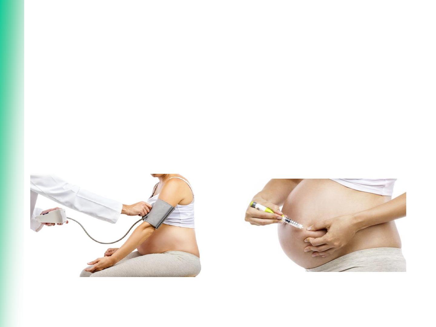 Nutrição Materno Infantil Gravidez de Alto Risco Profa Patrícia Simões Síndromes Hipertensivas da Gestação (SHG) e Diabetes Gestacional 1. HIPERTENSÃO GESTACIONAL - Hipertensão SEM proteinúria com aparecimento após a 20ª SG (Vitolo e Accioly); - Hipertensão: PAD > 140mmHg / PAS > 90mmHg (Krause). - Acomete mulheres normotensas; - Geralmente há normalização da PA no pós parto (após a 6a semana), mas pode evoluir para PE quando a hipertensão associa-se à proteinúria. 2. HIPERTENSÃO ARTERIAL CRÔNICA NA GESTAÇÃO - Diagnosticada antes da 20a SG ou antes da gestação; - Causas: vascular; endócrina; induzida por droga ou de origem renal, obesidade, etc. DIAGNÓSTICO DAS SHG Classificação PAS (mmHg) PAD (mmHg) Normal 160 > 100 Accioly PAS: Pressão arterial sistólica PAD: Pressão arterial diastólica 3. PRÉ-ECLÂMPSIA (PE) - Hipertensão arterial: PA > 140mmHg / 90mmHg ou aumento de 15mmHg na PAD previamente conhecida + proteinúria significativa: valores > 300 mg na urina de 24h, - Geralmente após 20a SG. - Pode haver ou não edema; - Pode acometer mulheres previamente normotensas e sem proteinúria; - Geralmente há remissão dos sinais da PE no puerpério. PE Grave: quando há 1 ou mais critérios: PAD > 110mmHg; proteinúria > 2g/L em 24h; oligúria ( 1,2mg/dl; sinais de encefalopatia hipertensiva*; insuficiência cardíaca; das enzimas hepáticas e bilirrubinas; RCIU. Fatores de risco para o desenvolvimento da PE: primigestas, história familiar ou pessoal de PE ou E; gestação gemelar; HAS crônica; nefropatia; lupus (pelo uso de imunossupressor); DM1 (devido à nefropatia) e DM2 (devido à obesidade e hiperinsulinemia – retenção de Na). DIAGNÓSTICO DAS SHG 4. ECLÂMPSIA - Presença de convulsões generalizadas em gestantes com qualquer dos quadros hipertensivos, não causadas por epilepsia ou qualquer outra patologia convulsiva, podendo ocorrer na gravidez ou parto ou até 10 dias de puerpério. - São observados outros sinais e sintomas, como cefaléia, agitação psicomotora, distúrbios visuais e epigastralgia; - A morte fetal ocorre com frequência por asfixia ou síndrome de aspiração meconial (SAM*). * o mecônio aspirado pode bloquear as vias respiratórias do recém-nascido e causar o colapso e hipertensão pulmonar. DIAGNÓSTICO DAS SHG 5. SÍNDROME HELLP - Em inglês, a sigla significa: H: hemólise; EL: elevação das enzimas hepáticas; LP: baixa contagem de plaquetas. - Quadro clínico que surge como agravamento da PE, caracterizado por hemólise, elevação das enzimas hepáticas e plaquetopenia - Os sinais de extrema gravidade são sinais de insuficiência cardíaca congestiva (ICC), hepatomegalia, icterícia, cianose, diurese 160 x 100 mmHg Internação obrigatória! ✓ Dieta Normossódia (6g/ dia de NaCl) ✓ Em caso de HAS persistente ou crônica, pode-se adotar a dieta hipossódica, com no máximo 2 a 3g/ dia de NaCl. Conclusão: dieta normocalórica, hipo ou normossódica e hiperprotéica. TRATAMENTO NUTRICIONAL AMBULATORIAL DA HAS GESTACIONAL ou CRÔNICA ou PE CÁLCIO ✓ Relação inversa com o desenvolvimento de PE. Autores recomendam suplementação com 2g/dia a partir do 2o trim para gestantes de risco com histórico de SHG. ✓ Na gestação ocorre expansão do volume extracelular, aumento da filtração glomerular, o que aumenta a excreção do Ca (calciúria) e aumento da sua demanda para atender as necessidades fetais. ✓ Acredita-se que a ingestão resulta em do hormônio paratireoidiano (PTH), contração da musculatura lisa vascular, a PA. ÔMEGA 3 - EPA (eicosapentanóico) ✓ Possui efeito inibitório na produção de tromoboxano e da prostaciclina, com da agregação plaquetária e da vasodilatação. ✓ Usar 2 a 3 porções de peixe/ semana. Vitaminas ✓ Ênfase em Vitaminas A, C e E. Antioxidante, controlam a peroxidação lipídica, evitando a lesão endotelial e a ação vasoconstrictora do tromboxano. ASPECTOS NUTRICIONAIS GERAIS E SHG ECLÂMPSIA ✓ Depende do grau de consciência: sonda nasogástrica ou pós-pilórica. ✓ Seguir conduta da HAS estágio 2. SÍNDROME HELLP ✓ Conduta não está muito bem definida, sendo motivo de controvérsias. ✓ Em linhas gerais, adotar conduta similar à HAS estágio 2. TRATAMENTO HOSPITALAR DA ECLÂMPSIA e SÍNDROME HELLP As gestantes diabéticas podem ser divididas em: - Diabetes prévia: tipo 1 ou tipo 2 - Diabetes Gestacional Em todos os tipos quando não tratada pode resultar: risco gestacional; Gestantes diabéticas têm as mesmas chances de gravidez segura que a população em geral. Fatores de risco: - HbA1c ≥ 5,7% - Síndrome dos ovários policísticos (SOP) - Acantose nigricans - História familiar; - Mãe portadora de diabetes; - Antecedentes obstétricos desfavoráveis; - Crescimento fetal excessivo; - Altura uterina maior que a esperada; - Glicosúria gestacional; - Diabetes em gestações anteriores; - Intolerância prévia à carboidratos; - Obesidade central; ganho de peso excessivo. DIABETES GESTACIONAL Repercussões maternas: (Krause, Accioly, MS 2019) ✓ Polidrâmnia ✓ Infecções urinárias ✓ Hiperglicemia ✓ Cetoacidose ✓ Necessidade de parto cirúrgico ✓ Risco do desenvolvimento de DM tipo 2 ao longo da vida. Repercussões fetais: (Krause, Chemin, Dan e Accioly) ✓ Macrossomia ✓ Asfixia neonatal ✓ Sofrimento fetal durante o parto ✓ Complicações pulmonares ✓ Hipoglicemia neonatal ✓ Má formação congênita ✓ Morte fetal ou perinatal ✓ Prematuridade ✓ Traumas no nascimento por desproporção céfalo-pélvica DIABETES GESTACIONAL Fisiopatologia: 1a metade da gestação: - Fase de anabolismo; níveis de Estrogênio e Progesterona hiperplasia das células β níveis de insulina gliconeogênese e lipogênese. Final do segundo trimestre: - Modificação da tendência materna ao anabolismo para o catabolismo visa atender as necessidades fetais crescentes. - Aumento da concentração plasmática de Cortisol, Prolactina e