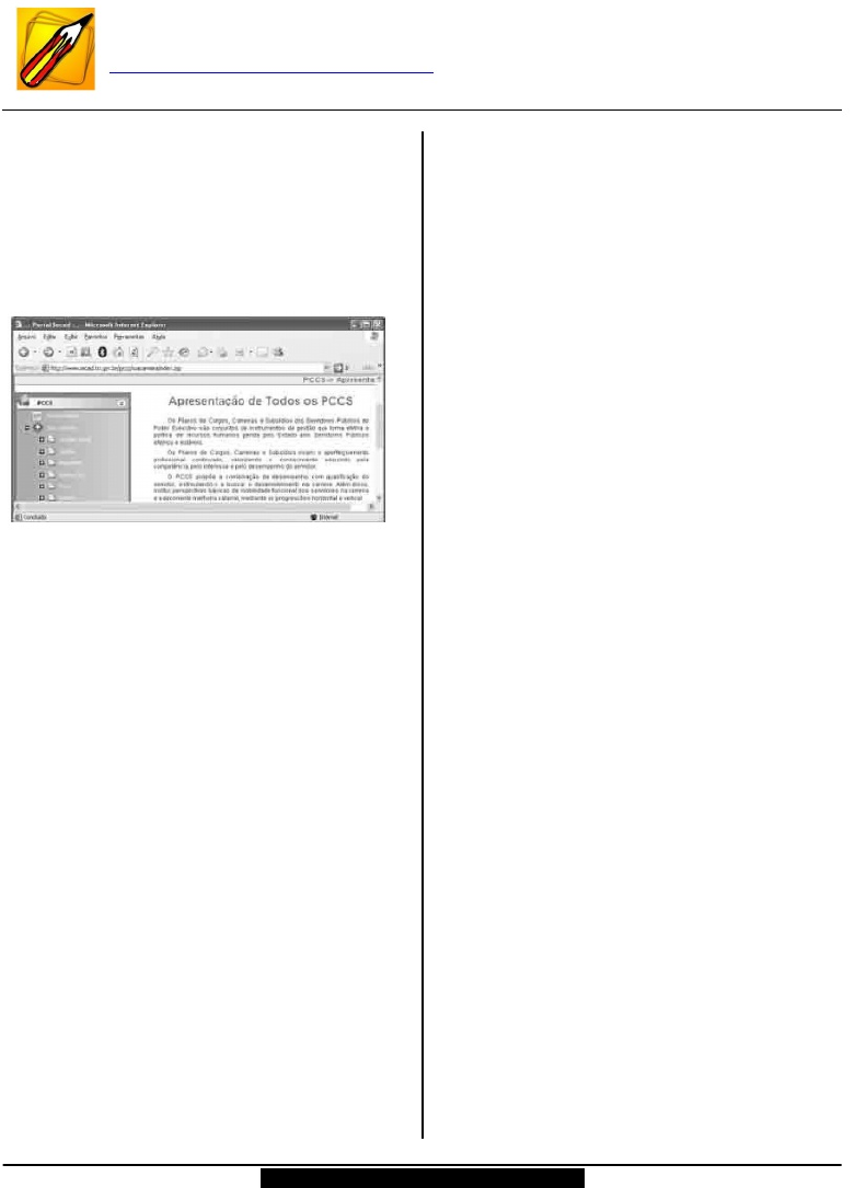 41 www.1001questoesdeconcurso.com.brwww.1001questoesdeconcurso.com.br Quer entrar para lista preferencial para receber mais 1001 QUESTÕES DE CONCURSOQuer entrar para lista preferencial para receber mais 1001 QUESTÕES DE CONCURSO de outras bancas ou matérias? Sim?! Então, cadastre o seu email no meu sitede outras bancas ou matérias? Sim?! Então, cadastre o seu email no meu site www.1001questoesdeconcurso.com.br www.1001questoesdeconcurso.com.br para receber mais questões e outras surpresas. para receber mais questões e outras surpresas. O podcast , um formato de compressão de áudio, disponibiliza um conjunto de ferramentas que facilitam a publicação e a distribuição em blogs de mensagens gravadas nesse formato. ( ) Certo ( ) Errado 204 - CESPE - 2008 - PC-TO - DELEGADO DE204 - CESPE - 2008 - PC-TO - DELEGADO DE POLÍCIAPOLÍCIA Considerando a figura acima, que mostra uma janela do navegador Internet Explorer 6 com a página da Secretaria de Administração do Estado do Tocantins, julgue os itens ado Estado do Tocantins, julgue os itens a seguir.seguir. Ao se clicar a pasta Polícia Civil, é possível acessar, por meio da intranet, o sítio da polícia civil de outros estados, o que garante a integração das informações das secretarias de segurança. ( ) Certo ( ) Errado 205 - CESPE - 2011 - CORREIOS - AGENTE DE205 - CESPE - 2011 - CORREIOS - AGENTE DE CORREIOSCORREIOS Com relação a conceitos, tecnologias eCom relação a conceitos, tecnologias e serviços associados à Internet, assinale aserviços associados à Internet, assinale a opção correta.opção correta. a)a) O Mozilla Firefox é um navegador web que permite o acesso a conteúdo disponibilizado em páginas e sítios da Internet. b)b) O Microsoft Office Access é um tipo de firewall que impede que redes de computadores que façam parte da Internet sejam invadidas. c)c) Serviços de webmail consistem no uso compartilhado de software de grupo de discussão instalado em computador pertencente a uma rede local (LAN) para uso exclusivo, e em segurança, dos computadores pertencentes a essa LAN. d)d) Na conexão denominada banda larga, para que usuários residenciais tenham acesso a recursos da Internet, exige-se o uso de cabos ópticos entre as residências dos usuários e seus provedores de Internet. e)e) O protocolo TCP/IP é utilizado na Internet para operações de transferência de arquivos quando se deseja garantir segurança sem o uso desoftware antivírus. 206 - CESPE - 2011 - CORREIOS - CARGOS206 - CESPE - 2011 - CORREIOS - CARGOS DE NÍVEL SUPERIORDE NÍVEL SUPERIOR Em relação aos conceitos de Internet, julgue os itens a seguir. Redes de acesso situadas na borda da Internet são conectadas ao restante da rede segundo uma hierarquia de níveis de ISPs (Internet service providers). Os ISPs de nível 1 estão no nível mais alto dessa hierarquia. ( ) Certo ( ) Errado 207 - CESPE - 2011 - CORREIOS - CARGOS207 - CESPE - 2011 - CORREIOS - CARGOS DE NÍVEL SUPERIORDE NÍVEL SUPERIOR - Há duas abordagens para a transmissão de dados através de uma rede de comunicação:comutação de circuitos e comutação de pacotes. Na Internet, a transmissão de dados é realizada via comutação de pacotes. ( ) Certo ( ) Errado 208 - CESPE - 2011 - CORREIOS - CARGOS208 - CESPE - 2011 - CORREIOS - CARGOS DE NÍVEL SUPERIORDE NÍVEL SUPERIOR Julgue os próximos itens, relativos aos modos de utilização de tecnologias, ferramentas, aplicativos e procedimentos associados à Internet. A ferramenta denominada Telnet foi desenvolvida com as características de uma aplicação cliente/servidor. ( ) Certo ( ) Errado 209 - CESPE - 2011 - CORREIOS - CARGOS209 - CESPE - 2011 - CORREIOS - CARGOS DE NÍVEL SUPERIORDE NÍVEL SUPERIOR Julgue os itens seguintes, a respeito deJulgue os itens seguintes, a respeito de ferramentas e aplicativos disponibilizados naferramentas e aplicativos disponibilizados na Internet.Internet. O protocolo UDP é usado por mecanismos de pesquisa disponibilizados por determinadas empresas da Internet, tal como a empresa Google, para garantir o rápido acesso a um grande volume de dados.