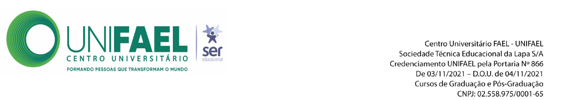RELATÓRIO CENTRO UNIVERSITÁRIO FAEL – UNIFAEL LICENCIATURA EM PEDAGOGIA ESTÁGIO SUPERVISIONADO Emanuela Da Silva Cardoso - 47478048 Paquetá-PIAUI 2024 CENTRO UNIVERSITÁRIO FAEL - UNIFAEL LICENCIATURA EM PEDAGOGIA ESTÁGIO SUPERVISIONADO Trabalho apresentado como requisito parcial para a atribuição de nota na disciplina de Estágio Supervisionado IV, do curso de Licenciatura em Pedagogia do Centro Universitário FAEL – UNIFAEL. Orientador: Prof. (a). Sirlei Bzunek da Silva Emanuela Da Silva Cardoso - 47478048 Paquetá-PIAUI 2024 1. RELATÓRIO Iniciando os estágios no dia 06 de setembro de 2024 na escola Unidade Escolar Municipal Nossa Senhora Dos Remédios me apresentei a pessoa superior da instituição, seu José Acelino de Moura junto com a carta de apresentação do estágio, fizemos um diálogo sobre o estágio e suas condições que seria realizado durante o estágio, em seguida fizemos um pequena volta na instituição, onde mesmo me mostrou-me as salas de aula a as demais instalações. Através da vista foi tirada dúvidas em relação ao dia a dia e como seria a realidade na escola. A Unidade Escolar Municipal Nossa Senhora dos Remédios, e uma instituição pública, a unidade oferta da educação infantil, ensino fundamental I e II e a modalidade EJA, e uma escola de pequeno porte que fica localizada no interior do município de Paquetá-PI, a mesma dispõe um quadro de funcionário com excelentes qualificações. O prédio e localizado no centro do povoado Modesto Lopes, onde possui nove salas de aula, três banheiros, sala de reuniões, direção, depósitos, uma cantina e dois pequenos pátios. Durante o estágio foi possível nota que existe uma rotina diária começar pelo o horário de chegada, os professores sempre recepcionam os alunos com um boa noite alegre e até mesmo conversa todos juntos antes de entrar em sala de aula, tendo em vista que os jovens e adultos são de todas as regiões e se conhecem. Em seguida já realizam um breve dialogo antes de inicia os conteúdos, após isso dão seguimento a aula, a turma surpreende com seu carisma, e sua curiosidade de aprender o novo todo dia mesmo após um dia cansativo de trabalho. Ressalto também como ficou mais perspectivo a figura do professor o quanto é importante não apenas nas séries iniciais, mas também para todas as etapas escolares, como sua postura, metodologia de ensinamento e até mesmo seu carisma que vão diretamente ao aluno, ele é um verdadeiro reflexo, isso me ajudou também a ter mais certeza e paixão pela pedagogia. O plano de aula foi aplicado na turma do 5º ano do EJA na disciplina de ciência, o conteúdo abordado foi a terra, a lua e o sol: Matérias seus estados e transformação. Para o seu desenvolvimento foi utilizado livros-didáticos globo terrestre, abajur, pires, vela, faca e fósforo. Foram realizados também experimento com a abordagem dos conteúdos e data show You tube. Durante a aula os alunos demonstraram já conhecer um pouco sobre o assunto, após reproduzir um vídeo “Experimento de transformação entre os estados físicos da matéria” foi realizado depois esse experimento em sala de aula onde o principal objetivo era entende como era realizado as mudanças de estados sólido para o liquido de liquido para o solido e de liquido para gasoso. O plano foi relacionado com a BNCC, pois seu desenvolvimento envolveu estratégias e métodos que se relacionaram diretamente com a realidade e necessidade pedagógica do aluno. Felizmente não foi possível participar de reuniões, pois, a mesma havia sido realizada dia antes do primeiro contato com a instituição, assim, tive apenas um momento de feedback com u professor da sala de estágio, a mesma me repassou múltiplas orientações e parabenizou-me pelo plano aplicado, por seu desenvolvimento e como foi proveitoso seu resultado. De fato, não mudaria o plano que foi aplicado, pois, com o auxílio do professor da turma e a colaboração de toda turma foi possível aplicá-lo e desenvolvê-lo como perfeitamente desejado, e com sua conclusão o objetivo almejado foi obtido com sucesso. (Etapa Espaço Não Escolar) A instituição escolhida foi uma capela da igreja católica apostólica romana, na qual optei por haver uma maior afinidade. No primeiro contato, apresentei-me à coordenador do grupo de catequeses, o senhor Mateus Leal. Na sacristia da capela, conversamos sobre o estágio, em seguida mostrou-me as demais instalações. Neste momento, também repassou o funcionamento do dia a dia das ações realizadas ali, como, quais dias havia encontros de jovens, grupo de catequeses, encontro de casais entre outros por exemplos. A capela do Divino Espírito Santo é uma igreja católica localizada no centro do povoado Modesto Lopes, do município de Paquetá–PI. Ela dispõe de missas, catequese: de eucaristia e crisma, entre outras pastorais. Seu funcionamento é totalmente de fiéis voluntários, com exceção do pároco, que recebe uma contribuição de toda a paróquia. Ela possui uma nave com presbitério e sacrário para celebrações da palavra, uma sacristia para encontros catequéticos e reuniões, um quarto e um banheiro. Aos domingos, uma equipe voluntária que fez preparação na paróquia e é designada como catequista/coordenador se reúne com jovens e crianças, realizam encontros que compartilham a palavra de Deus, orações e até mesmo abordam situações locais ou da sociedade em geral que se encaixem no tema em questão. Entretanto, eles realizam um trabalho voluntário lindo e admirável por todos. Os momentos de interações sempre bem legais e receptivos. A educação para a igreja é como uma missão divina, é um dever de anunciar a salvação e a vida do Cristo. A pedagogia católica é uma manifestação da concepção pedagógica tradicional do Brasil, pois o pedagogo é responsável pelo desenvolvimento de estratégias no ensino e aprendizagem que possam promover um crescimento intelectua