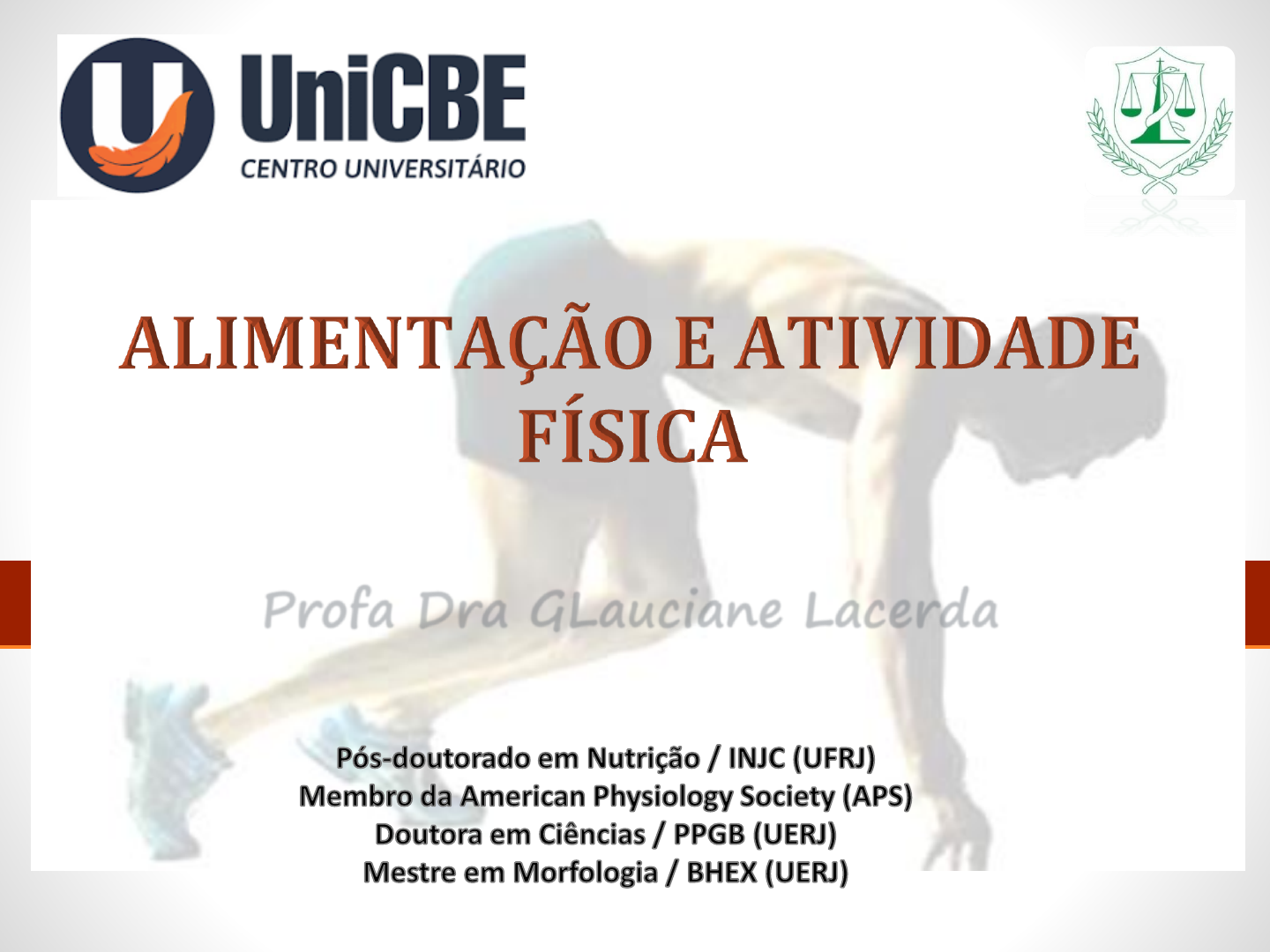 Profa Dra GLauciane Lacerda Nutrição no Exercício Físico “A É sabido que uma dieta adequada auxilia o desempenho, já que fornece os substratos energéticos e a prática regular de exercícios melhora a habilidade do organismo em utilizar os nutrientes” (SOARES, 2001). • O estado nutricional, no plano individual ou biológico, Esse gasto refere-se à utilização dos alimentos pelo organismo para suprir as suas necessidades nutricionais e está relacionado ao estado de saúde e à capacidade de utilização dos nutrientes fornecidos pela alimentação. Recomendações para o praticante de atividade física, M.S 2016. Promoveu em sua teoria a divisão entre o corpo e mente, reduzindo o ser humano a uma máquina, no qual seu funcionamento depende do estado de operação em que se encontra seu mecanismo biológico. Desde então, as ciências médicas, inclusive a NUTRIÇÃO, têm investigado o funcionamento biológico à nível molecular. Apud AMORIM et al, 2001. In: TOLOZA, Daniela Cervo. 2003. “Nós somos o que comemos” • A alimentação, quando adequada e variada, previne as deficiências nutricionais e protege contra as doenças infecciosas, porque é rica em nutrientes que podem melhorar a função imunológica. • Pessoas bem alimentadas são mais resistentes às infecções. 1a Diretriz : os alimentos saudáveis e as refeições. MS, 2006 Alimentação saudável Brasil. Ministério da saúde, 2014. SCRIMSHAW et al., 1968; UNITED NATIONS ADMINISTRATIVE COORDINATING COMMITTEE, 2000; SCRIMSHAW, 2000. A FISIOLOGIA (do grego physis = natureza, função ou funcionamento; e logos = palavra ou estudo) estuda o funcionamento do organismo. • a fisiologia da nutrição aborda o equilíbrio alimentar e o valor energético dos nutrientes. ANGELIS, R. C.; TIRAPEGUI, J. Fisiologia da nutrição humana. Aspectos básicos, aplicados e funcionais. 2007. Gorduras Proteínas Carboidratos Vitaminas e minerais • As pessoas em equilíbrio energético não ganham nem perdem peso; é o que se denomina “balanço energético”. • Portanto, o balanço energético é o “saldo” obtido a partir do total de energia ingerida e o total de energia gasta pelo organismo em suas atividades diárias. Recomendações para o praticante de atividade física, M.S 2016. • Caloria ou quilocalorias (kcal) • é a unidade de medida da energia gasta pelo corpo humano em suas atividades metabólicas e físicas e do teor de energia encontrado nos alimentos : • ; • não fornecem energia. Recomendações para o praticante de atividade física, M.S 2016. Gorduras 9kcal/g Proteínas 4kcal/g Carboidratos 4kcal/g Vitaminas e minerais Recomendações • Baseadas em um consumo energético médio de 2.000 calorias diárias, nos brasileiros: Recomendações para o praticante de atividade física, M.S 2016. alcançam BE em média com 2.400 kcal/dia. A média de 2.000 calorias atende também às NE das pessoas mais jovens. alcançam BE em média com 1.800 ou 2.200 kcal/dia. Lembrando que Metabolismo... • As reações químicas que ocorrem nas células são classificadas como: catabólicas ou anabólicas. Gordura Ácidos Graxos Jejum Ciclo de Krebs Corpos cetônicos Jejum Proteínas Aminoácidos Carboidratos Glicose Glicólise ATP Beta- oxidação Mitocôndria Produção de substrato (citoplasma) Fosforilação oxidativa (Mitocôndria) Funções Celulares (contração muscular, secreção de hormônios, e bomba de íons) Rui Curi & Joaquim Procópio. Fisiologia Básica. Gen Guanabara Koogan, 2009 Via comum para metabolização de glicose, aminoácidos e ácidos graxos Carboidratos Da Dieta Frutose PiruvatoLactato Alanina Glicerol-P TG TG intracelular Frutose-6P Glicose Glicose Glicose-6P Glicose-1P Glicogênio Ciclo de Krebs Acil-CoA TGda DIETAAG Beta- oxidação gerando CO2, H2O e ATP. Diabetes Mellitus DCV Obesidade Pancreatite Aguda Esteatose Hepática Insuficiência Renal Câncer, Etc… Brasil. Ministério da Saúde. Guia alimentar, 2014. Alimentação saudável Contribui para proteção contra as doenças (DCNT) e potencialmente fatais, que, em conjunto, estão entre as principais causas de incapacidade e morte no Brasil e no mundo. ocorre por VIAS AERÓBIAS, como as VIAS DA GLICÓLISE DO CICLO DO ÁCIDO CÍTRICO ou C. de KREBS) • Se a célula possui quantidade adequada de O2 para FOSFORILAÇÃO OXIDATIVA, tanto a glicose quanto os AGs podem ser metabolizados para gerar ATP. Wilmore, JH, 2001; Krause,2010. Substratos predominantes para os músculos no exercício de intensidade ( 70% do VO2 máx). Scott Kline Powers, Edward T. Howley. Fisiologia do exercício: teoria e aplicação ao condicionamento fisico e ao desempenho. 2009 .646 p. • O exercício aeróbio de qualquer duração utiliza tanto CARBOIDRATOS como AGs como substrato energético para produção de energia; • 30 min após início do exercício AERÓBIO: • As concentrações de AGLs no sangue : indicando que os AGLs estão sendo mobilizados do tecido adiposo. Wilmore, JH, 2001; Krause,2010. • Entretanto a β-oxidação de AGs é mais lenta do que o metabolismo via GLICÓLISE, de modo que o músculo usa uma combinação de AGs e GLICOSE para obter energia. Scott Kline Powers, Edward T. Howley. Fisiologia do exercício: teoria e aplicação ao condicionamento fisico e ao desempenho. 2009 .646 p. • Se a necessidade de O2 da fibra muscular exceder seu suprimento de O2, a produção de energia a partir dos AG, diminue consideravelmente, e o metabolismo da glicose é direcionado para vias ANAERÓBIAS. Scott Kline Powers, Edward T. Howley Fisiologia do exercício: teoria e aplicação ao condicionamento fisico e ao desempenho. 2009. Carboidratos Da Dieta Frutose PiruvatoLactato Glicerol-P Acetil coa Frutose-6P Glicose Glicose Glicose-6P Glicose-1P Glicogênio Ciclo de Krebs ou ausência de O2 na célula, para FOSFORILAÇÃO OXIDATIVA Wilmore, JH, 2001; Krause,2010. O produto final da GLICÓLISE PIRUVATO, é convertido a LACTATO, em v