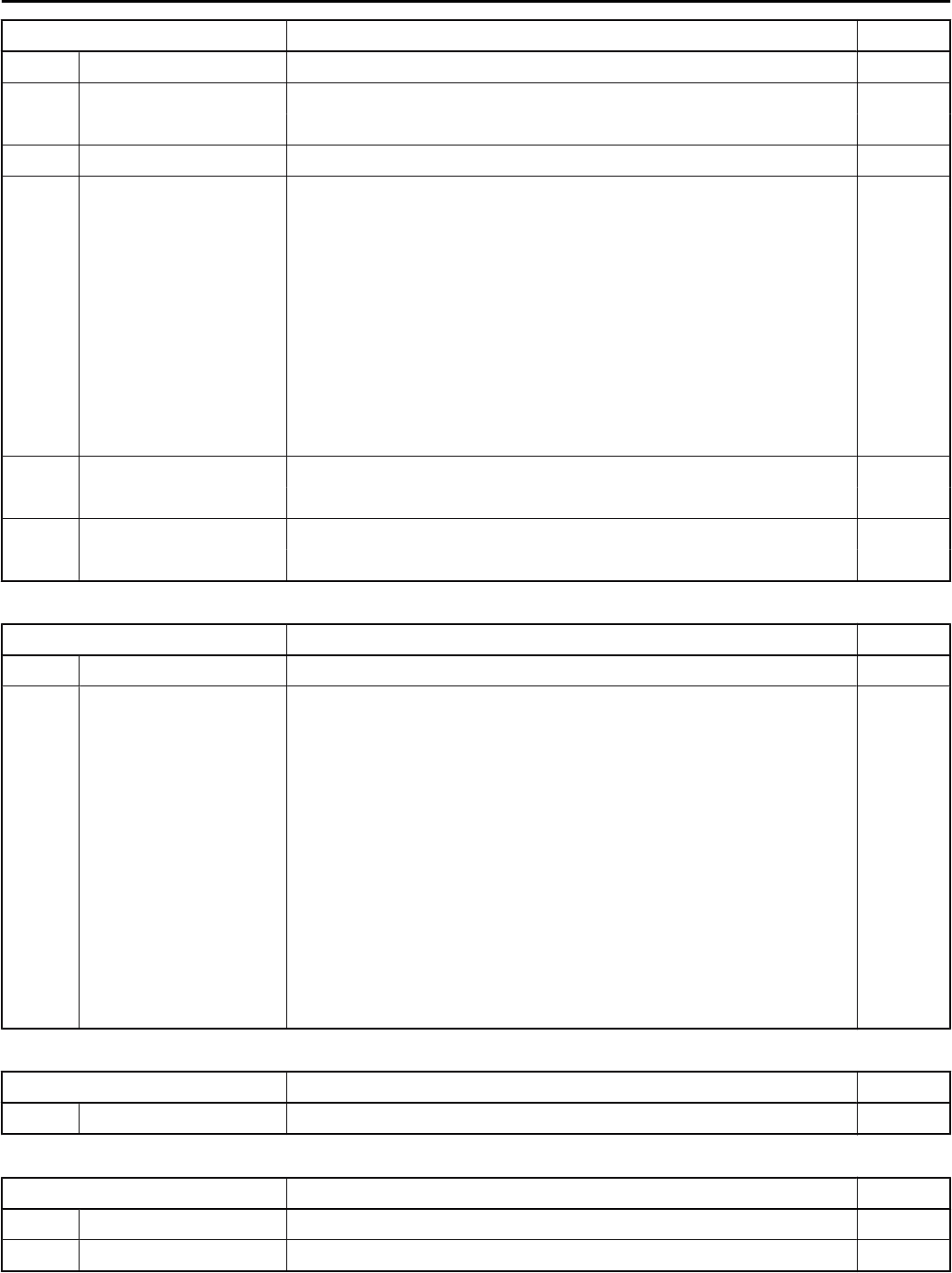 Fuse System Page 20A RL DOOR Power Window (RHD) 226 20A RR DOOR Power Window (LHD) 222 Power Window (RHD) 226 20A WIP Front Wiper and Washer 270 25A D/L Door Lock Control (LHD) 230 Door Lock Control (RHD) 236 Interior Light 166 Light Reminder 194 Smart Entry & Start System 92 Theft Deterrent (LHD) 254 Theft Deterrent (RHD) 262 Wireless Door Lock Control (LHD) 242 Wireless Door Lock Control (RHD w/o Smart Entry & Start System) 248 30A DEF Engine Control 114 Rear Window Defogger 282 30A POWER Power Window (LHD) 222 Power Window (RHD) 226 Fusible Link Block (See Page 42) Fuse System Page 60A MAIN Charging 108 120A ALT Charging 108 Engine Control 114 Front Fog Light 182 Headlight Beam Level Control 154 Light Reminder 194 Power Window (LHD) 222 Power Window (RHD) 226 Rear Fog Light 186 Taillight and Illumination 172 Theft Deterrent (LHD) 254 Theft Deterrent (RHD) 262 Fuse Block (See Page 44) Fuse System Page 7.5A ACC2 Shift Lock 276 Engine Room R/B No.7 (See Page 29) Fuse System Page 10A H-LP HI LH Headlight (HID Type) 146 10A H-LP HI RH Headlight (HID Type) 146 * These are the page numbers of the first page on which the related system is shown. J POWER SOURCE (Current Flow Chart) YARIS (EM02C4EL) 324 Memo YARIS (EM02C4EL) 325 A1 Gray 1 2 A2 Gray 1 2 A3 Dark Gray 1 2 3 4 A4 Gray 1 2 A5 Black 1 2 A6 Yellow 1 2 A7 1 2 A8 Gray 21 A9 1 2 3 4 5 A10 Gray 1 2 A11 1 2 A12 Yellow 1 2 A13 1 3 2 4 A14 Black 21 A15 Black 21 2423 3 4 5 6 13 25 161514 26 27 28 313029 17 18 19 987 10 11 12 222120 32 33 34 A16 Black 1 2 A19 (*1) Gray 2 1 A19 (*2) Gray 2 1 A20 Black 1 2 3 4 5 6 For all additional information, refer to the end of this section. K CONNECTOR LIST YARIS (EM02C4EL) 326 A21 Black 1110987654321 1918171615141312 222120 3029282726252423 4140393837363534333231 4948474645444342 525150 6059585756555453 A24 1 2 3 4 5 6 7 8 9 10 11 12 A25 11 2221 109 2019 87 1817 65 1615 43 1413 1 2 12 A26 Black 1 2 3 4 A27 Black 1 2 A28 1 A30 Black 1 2 A33 Black 1 2 A34 Black 1 2 A35 1 2 A36 Dark Gray 21 3 4 A37 11 2221 109 2019 87 1817 65 1615 43 1413 1 2 12 For all additional information, refer to the end of this section. K YARIS (EM02C4EL) 327 A38 Gray 13 1 2 3 4 5 6 7 8 9 10 11 25 26 27 28 29 30 31 32 33 34 14 15 16 17 18 19 20 21 22 23 24 12 B1 (*3) 1 2 B1 (HID Type) Gray 1 2 B2 Black 1 B3 Brown 1 2 B4 1 2 3 B6 1 2 3 B7 Brown 1 2 B8 (*3) 1 2 B8 (HID Type) Gray 1 2 B9 Black 21 B10 Black 21 B13 1 2 3 4 5 6 7 8 9 10 11 12 B14 Black 1 2 3 B15 Black 1 2 3 B16 Gray 1 2 3 4 B17 Gray 1 2 3 4 B18 Gray 1 2 B19 Gray 1 2 B20 Brown 1 2 B21 Black 1 2 For all additional information, refer to the end of this section. K CONNECTOR LIST YARIS (EM02C4EL) 328 B22 Brown 1 2 B23 Black 1 2 B24 Gray 1 2 B25 Gray 1 2 C1 1 C2 Black 1 2 C3 Blue 1 2 C4 Black 1 2 C5 Gray 1 2 C6 Black 1 2 C7 Gray 1 2 C8 Gray 1 C9 Black 21 3 4 C10 1 C11 Black 1 2 3 4 C12 Gray 1 2 3 4 C13 Black 1 2 3 4 C14 Gray 1 2 3 4 C15 Black 1 C16 Gray 1 C17 Black 1 2 3 4 5 6 C18 Black 1 2 C19 Black 21 For all additional information, refer to the end of this section. K YARIS (EM02C4EL) 329 C20 Black X X X X X X X X X X X X X X X X X X X X X X X X X X X X X X X X X X X X X 38 39 40 41 42 43 44 45 4647 48 49 50 51 52 53 54 55 56 57 58 59 60 61 62 63 64 65 66 67 68 69 70 71 72 73 74 75 76 77 78 79 80 81 82 83 84 85 86 87 88 89 90 91 92 93 94 95 96 97 98 99 100 101 102 103 104 105 106 107 108 109110 111 112 113 114 115 116 117 118 119 120 121 122 123 124 125 126 C22 Gray 1 2 C23 Black 1 2 3 C24 Black 1 2 C25 Gray 1 2 C26 Black 54321 C27 Gray 87 9 21 3 4 65 C28 Gray 1 2 3 4 5 6 7 8 9 10 C29 Black 1 2 C30 1 C36 Dark Gray 1 2 3 4 C37 Gray 1 D1 (*4) 21 13 14 3 15 4 16 5 17 6 18 7 19 8 20 9 21 10 22 11 23 12 24 D1 (*5) 21 13 14 3 15 4 16 5 17 6 18 7 19 8 20 9 21 10 22 11 23 12 24 D1 (*6) Black 21 13 14 3 15 4 16 5 17 6 18 7 19 8 20 9 21 10 22 11 23 12 24 D2 (*4) 9 1 2 3 16 4 5 86 7 10 11 151412 13 D2 (*5) 1312 14 151110 76 854 16 321 9 D2 (*6) Black 1312 14 151110 76 854 16 321 9 D3 (*4) 7 8 1 2 12 4 5 6 9 1110 3 For all additional information, refer to the end of this section. K CONNECTOR LIST YARIS (EM02C4EL) 330 D3 (*7) 121097 641 3 5 11 2 8 D4 1 2 3 4 5 6 7 8 9 10 11 12 13 D5 1 2 3 4 5 6 7 D6 1 2 3 4 5 6 7 8 9 10 D7 Gray 1 2 3 4 D8 8765 4321 D10 Blue 1 2 3 4 5 6 7 8 9 10 D11 1 2 3 4 5 6 D12 1 2 3 4 5 6 7 8 9 10 D13 Black 1 2 D14 1 2 D15 16 15 14 13 12 11 10 9 8 7 6 5 4 3 2 1 D16 Yellow 11 1 3 4 5 6 7 8 9 13 14 15 16 17 18 19 21 23 24 25 26 27 28 29 30 20 10 22 12 2 D18 Yellow 1 2 3 4 D19 1 2 D20 1 2 D21 1 D22 (*4) 7 8 1 2 12 4 5 6 9 1110 3 D22 (*7) 121097 641 3 5 11 2 8 D23 1 6 2 7 3 8 9 10 11 12 13 14 4 15 5 16 D24 Black 1 2 3 4 5 6 7 D25 Black 21 43 65 D28 Dark Gray 21 3 4 For all additional information, refer to the end of this section. K YARIS (EM02C4EL) 331 D31 (*4) 1 2 3 4 5 6 7 8 9 10 11 12 D31 (*7) 1 2 3 4 5 6 7 8 9 10 11 12 D32 1 D33 (*4) 262524232221201918 987654 1713 14 1615 1 122 3 10 11 D33 (*7) 111032 121 15 161413 17 4 5 6 7 8 9 18 19 20 21 22 23 24 25 26 D34 3 5 6 7 9 18 20171614 4 15 8 19 10 21 22 112 1312 1 D35 3 5 6 7 9 18 20171614 4 15 8 19 10 21 22 112 1312 1 D36 3 5 6 7 9 18 20171614 4 15 8 19 10 21 22 112 1312 1 D37 3 5 6 7 9 18 20171614 4 15 8 19 10 21 22 112 1312 1 For all additional information, refer to the end of this section. K CONNECTOR LIST YARIS (EM02C4EL) 332 D38 3 5 6 7 9 18 20171614 4 15 8 19 10 21 22 112 1312 1 D39 3 5 6 7 9 18 20171614 4 15 8 19 10 21 22 112 1312 1 D40 1 2 3 4 5 6 7 8 9 10 11 12 13 D41 11 2221 109 2019 87 1817 65 1615 43 1413 1 2 12 D42 11 2221 109 2019 87 1817 65 1615 43 1413 1 2 12 D43 1 2 3 4 D44 Black 1 2 For all additional information, refer to the end of this section. K YARIS (EM02C4EL) 333 D45 (*8) Gray 3 5 1 24 D45 (*9) 3 5 1 24 D46 3 5 1 2 D47 1 2 3 4 D48 1 2 3 4 D52 Black 1 2 3 4 D53 1 2 3 4 5 6 7 8 9 10 11 12 13 14 15 16 17 18 19 20 D55 Black 1 3 4 5 7 12 1411108 2 9 6 13 D56 Black 1 2 3 4 5 6 7 D58 (*4) 1 2 3 4 5 6 7 8 D58 (*7) 1 2 3 4 5 6 7 8 D60 21 18 19 3 20 4 21 5 22 6 23 7 24 8 25 9 26 27 28 29 30 31 32 10 33 11 34