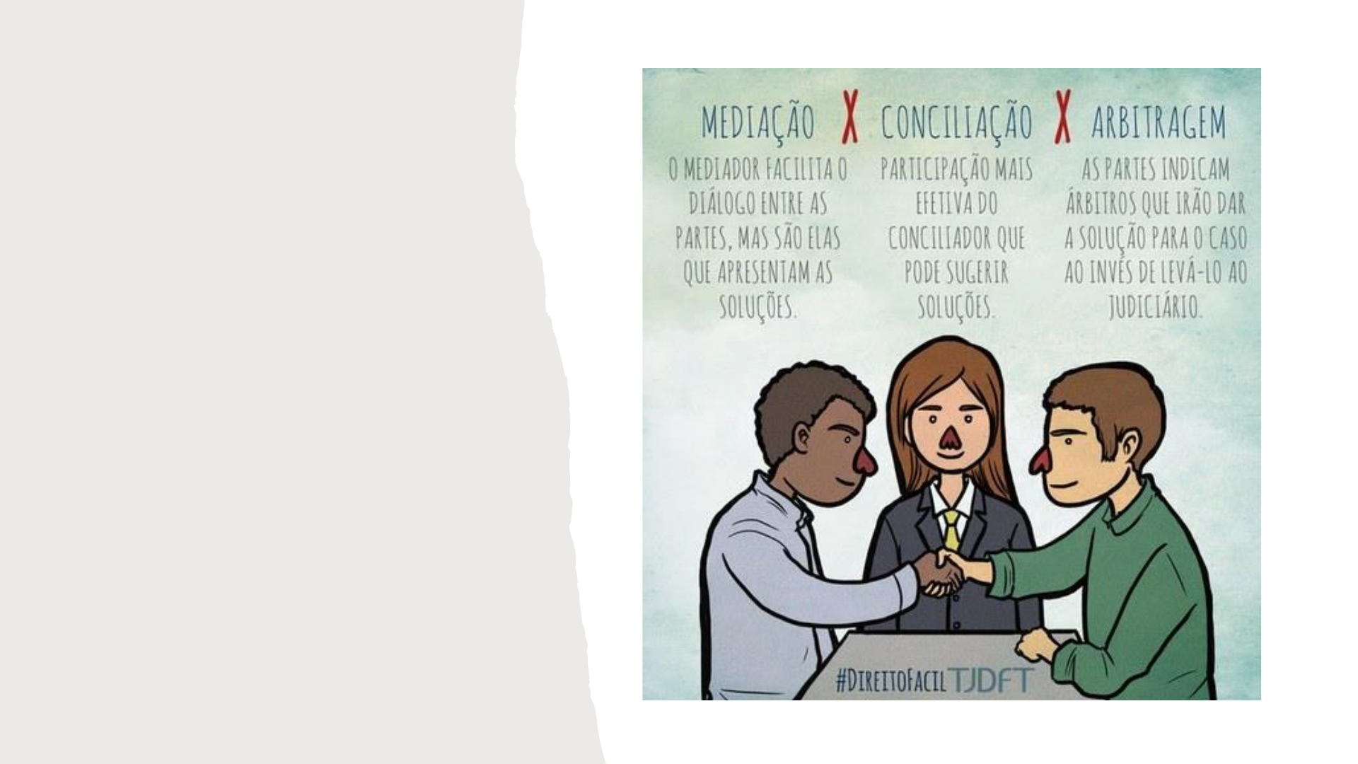 <p>M E I O S</p><p>A L T E R N A T I V O S</p><p>P A R A</p><p>S O L U C I O N A R</p><p>C O N F L I T O S</p><p>S O C I A I S -</p><p>A U L A</p><p>2</p><p>• Prof .DANIELE WEBER</p><p>LEAL</p><p>D A H E T E RO C O M P O S I Ç Ã O :</p><p>Sendo essa modalidade considerada em razão da participação de</p><p>um terceiro, não interessado, poderemos ter:</p><p>1-Arbitragem- esse terceiro é o árbitro, regulada pela Lei 9.307/96,</p><p>alterada pela lei 13.129/2015;</p><p>2-Mediação- esse terceiro é o mediador, regulada pela Lei 13.140, de</p><p>26 de junho de 2015, o CPC, nos arts.175/165, e ainda a resolução</p><p>nº125 do CNJ.</p><p>3-Conciliação: esse terceiro é o conciliador, como por exemplo na Lei</p><p>9.099/95, que estabelece uma primeira audiência de conciliação,</p><p>presidida pelo conciliador, ver art.7º da lei dos Jecs.</p><p>O R G A N I Z A Ç Ã O D O P O D E R J U D I C I Á R I O,</p><p>A RT S . 9 2 A O 1 2 6 DA C F / 8 8 :</p><p>1 - A RB I T RA G E M - L E I 9 . 3 0 7 / 9 6</p><p>A)CONCEITO:</p><p>Sendo a exata extensão do direito violado, materializado através</p><p>de entrega da prestação jurisdicional, não-estatal.</p><p>Processo particular regido pelas mesmas regras cogentes do</p><p>Estado, mesmo que o órgão acionado possua regras processuais</p><p>próprias, desde que não se choquem com Ordenamento Jurídico,</p><p>vigente, podendo ser decidido por equidade.</p><p>Na Arbitragem o(s) Árbitro(s), substituindo a vontade das</p><p>partes em divergência, decide(m) a pendência pela confiança que foi</p><p>nele(s) depositada pela eleição prévia em Cláusula Arbitral (ou</p><p>Cláusula Compromissória)</p><p>B ) C O M O D E F I N I R A O P Ç Ã O P E L A J U S T I Ç A</p><p>A R B I T R A L ?</p><p>A arbitragem provém de um negócio jurídico denominado</p><p>convenção de arbitragem, tendo duas espécies:</p><p>→CLÁUSULA COMPROMISSÓRIA(art.4º da Lei 9307/96)</p><p>nesse caso, se ocorrer um litígio esse será solucionado pelo arbitro,</p><p>portanto a opção pela arbitragem é ANTERIOR ao conflito. E,</p><p>portanto, exclui-se previamente a jurisdição estatal;</p><p>→COMPROMISSO ARBITRAL (art.9º da Lei 9307/96): nessa</p><p>segunda hipótese as partes resolvem escolher um arbitro para</p><p>resolver um conflito já existente, portanto a opção pela arbitragem é</p><p>POSTERIOR ao conflito.</p><p>A S S I M T E M O S Q U E :</p><p>Art.3º As partes interessadas podem submeter a solução de seus litígios ao</p><p>juízo arbitral mediante convenção de arbitragem, assim entendida a cláusula</p><p>compromissória e o compromisso arbitral.</p><p>Art. 4º A cláusula compromissória é a convenção através da qual as partes em</p><p>um contrato comprometem-se a submeter à arbitragem os litígios que possam</p><p>vir a surgir, relativamente a tal contrato.</p><p>§ 1º A cláusula compromissória deve ser estipulada por escrito, podendo estar</p><p>inserta no próprio contrato ou em documento apartado que a ele se refira.</p><p>§ 2º Nos contratos de adesão, a cláusula compromissória só terá eficácia se o</p><p>aderente tomar a iniciativa de instituir a arbitragem ou concordar,</p><p>expressamente, com a sua instituição, desde que por escrito em documento</p><p>anexo ou em negrito, com a assinatura ou visto especialmente para essa cláusula.</p><p>O U A I N DA :</p><p>Art.9º O compromisso arbitral é a convenção através da qual as</p><p>partes submetem um litígio à arbitragem de uma ou mais pessoas,</p><p>podendo ser judicial ou extrajudicial.</p><p>§ 1º O compromisso arbitral judicial celebrar-se-á por termo nos</p><p>autos, perante o juízo ou tribunal, onde tem curso a demanda.</p><p>§ 2º O compromisso arbitral extrajudicial será celebrado por</p><p>escrito particular, assinado por duas testemunhas, ou por</p><p>instrumento público.</p><p>C ) R E Q U I S I T O S PA R A I N S T I T U I R</p><p>Em nosso país a Lei da Arbitragem estipula que todo e qualquer litígio,</p><p>relativo a direitos patrimoniais disponíveis - aqueles bens que podem ser</p><p>livremente alienados ou negociados por encontrarem-se desembaraçados,</p><p>envolvendo pessoas civilmente capazes - pode ser solucionados pela via</p><p>arbitral, sejam de natureza cível, comercial.</p><p>O terceiro que decide, o arbitro é escolhido pelas partes. Frise-se que</p><p>somente teremos a figura da arbitragem quando se tratar de direitos</p><p>disponíveis e as partes envolvidas forem capazes, não se permitindo o juízo</p><p>arbitral sobre questões de estado e capacidade das pessoas, nem tampouco</p><p>sobre coisa fora do comércio (art.1 da Lei), assim resta evidente que a</p><p>arbitragem é constitucional pois envolve direitos disponíveis e pessoas capazes.</p><p>D ) O Á R B I T RO - A RT S . 1 3 / 1 8</p><p>• O arbitro é pessoa capaz e de confiança das partes, podendo ser designado mais de um,</p><p>todavia deve sempre ser em um número impar.(art.13 da Lei 9307/96) Caso as partes</p><p>não optem por a um acordo, a sentença arbitral será proferida por ele(s) no prazo</p><p>acordado, ou 06 meses( art.23 da Lei 9307/96), sendo pontos importantes sobre o</p><p>árbitro:</p><p>• Deverá proferir decisão sobre o conflito, sua sentença não fica sujeita a</p><p>homologação/recurso pelo Poder Judiciário;</p><p>• Deverá agir com imparcialidade, diligência, discrição e independência;</p><p>• É Juiz de fato e de direito para a justiça arbitral;</p><p>• Deverá divulgar previamente sua possível parcialidade.</p><p>• Um Árbitro pode tomar depoimentos das partes, ouvir testemunhas, determinar a</p><p>realização de perícias, requerer diligência ou a realização de qualquer prova, até formar</p><p>seu convencimento.</p><p>E ) S E N T E N Ç A A R B I T R A L :</p><p>A sentença arbitral será proferida no prazo acordado, ou no prazo</p><p>legalmente previsto, 06 meses.( art.23 da Lei 9307/96)</p><p>A parte in