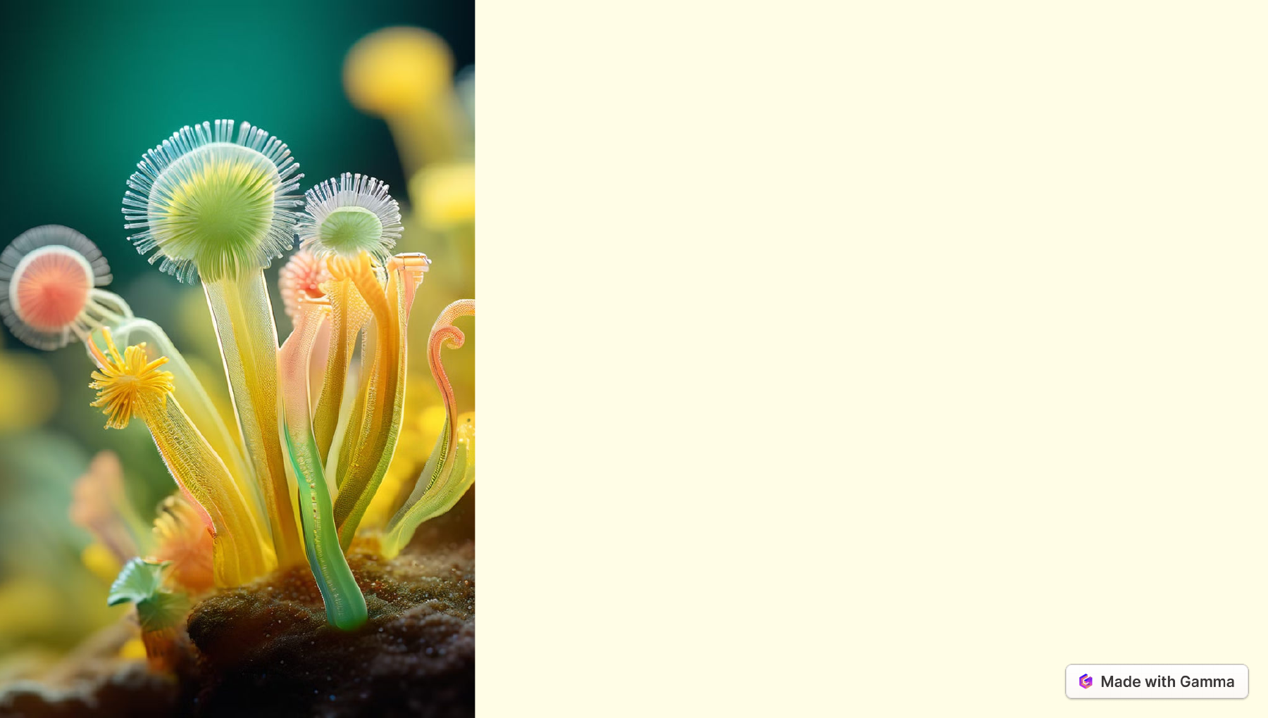 Explorando o Fascinante Reino Protista O Reino Protista é um mundo maravilhoso de organismos unicelulares e multicelulares simples, exibindo uma incrível variedade de formas, funções e comportamentos. Neste reino, destacam-se os protozoários, uma classe de microrganismos eucarióticos que nos fascina com suas capacidades únicas. Vamos mergulhar neste reino diverso e explorar suas características surpreendentes. https://gamma.app Características do Reino Protista 1 Organismos Unicelulares A maioria dos protistas é composta por uma única célula, embora alguns possam formar colônias. Essa simplicidade estrutural esconde uma complexidade biológica impressionante. 2 Eucarióticos Todas as células dos protistas possuem um núcleo verdadeiro, envolto por uma membrana nuclear, característica que os diferencia dos procariotos. 3 Diversidade Morfológica Os protistas exibem uma ampla variedade de formas, desde organismos ameboides até formas mais complexas com estruturas especializadas, adaptadas a diferentes ambientes e modos de vida. https://gamma.app Explorando os Protozoários Esporozoários Parasitismo Intracelular Diferentemente de outros protozoários, os esporozoários são parasitas intracelulares obrigatórios, dependendo totalmente das células de seus hospedeiros para completar seus ciclos de vida. Ciclo de Vida Complexo Os esporozoários geralmente têm ciclos de vida complexos, envolvendo múltiplos estágios de desenvolvimento dentro do hospedeiro e, muitas vezes, envolvendo mais de um tipo de hospedeiro para completar seu ciclo. Transmissão por Vetores A transmissão dos protozoários esporozoários geralmente ocorre através de vetores, como mosquitos, carrapatos ou outros artrópodes, que carregam os estágios infecciosos do parasita de um hospedeiro para outro. https://gamma.app Protozoários com Pseudópodes: Mestres da Locomoção 1 Amebas As amebas são talvez os protozoários com pseudópodes mais conhecidos. Elas habitam uma variedade de ambientes aquáticos e terrestres e são capazes de se moverem de forma bastante flexível, estendendo e retraindo seus pseudópodes conforme necessário. 2 Arcellidae Este grupo de protozoários é caracterizado por suas conchas minerais e pela presença de pseudópodes lobosos. Eles habitam principalmente ambientes de água doce e se alimentam de partículas orgânicas suspensas na água. 3 Foraminíferos Os foraminíferos são protozoários marinhos que formam conchas calcárias distintas e possuem pseudópodes finos e ramificados, chamados de reticulopódios, que utilizam para capturar alimentos e se locomoverem no sedimento marinho. https://gamma.app Protozoários Ciliados: Mestres da Movimentação e Alimentação Cílios Os protozoários ciliados são caracterizados pela presença de cílios curtos e numerosos que revestem sua superfície celular. Esses cílios são estruturas móveis que vibram em coordenação, permitindo aos protozoários uma movimentação rápida e direcional na água. Locomoção A locomoção dos protozoários ciliados é impulsionada pela batida coordenada dos cílios ao longo da superfície celular. Esses movimentos criam correntes de água ao redor do organismo, impulsionando-o na direção desejada. Alimentação Além da locomoção, os cílios dos protozoários ciliados também desempenham um papel importante na captura de alimentos. Eles podem criar correntes de água que transportam partículas alimentares em direção à boca do protozoário, onde são capturadas e digeridas. https://gamma.app Protozoários Flagelados: Navegadores dos Ambientes Aquáticos 1 Flagelos Os flagelos são estruturas de locomoção presentes em muitos protozoários flagelados. Geralmente, eles são longos, finos e se movem de forma ondulante, impulsionando o protozoário através da água. 2 Locomoção A locomoção dos protozoários flagelados é impulsionada pelo batimento coordenado dos flagelos, que cria um movimento fluido e direcional. Esses organismos podem se mover rapidamente em busca de alimento ou em resposta a estímulos ambientais. 3 Ambientes Aquáticos Os protozoários flagelados são mais comumente encontrados em ambientes aquáticos, como lagos, rios, oceanos e lagoas. Eles são especialmente abundantes em ambientes ricos em nutrientes, onde podem se alimentar de matéria orgânica em decomposição. https://gamma.app Algas Diatomáceas: Mestras da Beleza e da Funcionalidade Estrutura Única As algas diatomáceas possuem uma estrutura celular distintiva, composta por uma carapaça de sílica, conhecida como frústula. Essa frústula é formada por duas metades que se encaixam como uma caixa de Petri, criando uma forma intricada e altamente ornamentada. Fotossíntese Assim como outras algas, as diatomáceas realizam fotossíntese, convertendo energia solar em matéria orgânica. Elas são capazes de proliferar em ambientes onde a luz é abundante, desempenhando um papel fundamental na produção primária dos ecossistemas aquáticos. Importância Ecológica As algas diatomáceas são uma fonte essencial de alimento para uma variedade de organismos aquáticos, incluindo pequenos crustáceos, larvas de insetos e peixes. Além disso, elas contribuem significativamente para a produção de oxigênio e a remoção de dióxido de carbono da atmosfera. https://gamma.app Algas Euglenoides: Flexíveis Sobreviventes Flagelo Uma característica distintiva das algas Euglenoides é a presença de um ou dois flagelos que são utilizados para locomoção. Esses flagelos podem ser encontrados em uma estrutura denominada "ressalto", localizada na extremidade anterior do organismo, permitindo movimentos rápidos e direcionais através da água. Cloroplastos e Fotossíntese Muitas espécies de algas Euglenoides são fotossintéticas e possuem cloroplastos contendo pigmentos como clorofila a e b, que lhes permitem capturar energia solar e converter CO2 em carboidratos. No entanto, algumas espécies são capazes
