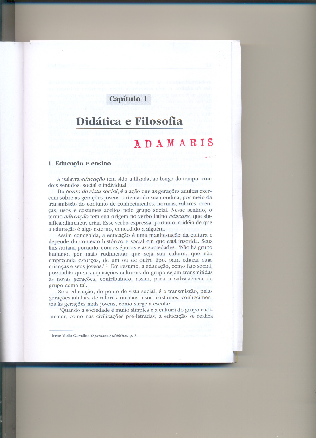 Capítulo 1 Didática e Filosofia ADAMARIS "-' , 1. Educação e ensino A palavra educação tem sido utilizada, ao longo do tempo, com dois sentidos: social e individual. Doponto de vista social, é a ação que as gerações adultas exer- cem sobre as gerações jovens, orientando sua conduta, por meio da transmissão do conjunto de conhecimentos, normas, valores, cren- ças, usos e costumes aceitos pelo grupo social. Nesse sentido, o termo educação tem sua origem no verbo latino educare, que sig- nifica alimentar, criar. Esse verbo expressa, portanto, a idéia de que a educação é algo externo, concedido a alguém. Assim concebida, a educação é uma manifestação da cultura e depende do contexto histórico e social em que está inserida. Seus fins variam, portanto, com as épocas e as sociedades. "Não há grupo humano, por mais rudimentar que seja sua cultura, que não empreenda esforços, de um ou de outro tipo, para educar suas crianças e seus jovens."l Em resumo, a educação, como fato social, possibilita que as aquisições culturais do grupo sejam transmitidas às novas gerações, contribuindo, assim, para a subsistência do grupo como tal. Se a educação, do ponto de vista social, é a transmissão, pelas gerações adultas, de valores, normas, usos, costumes, conhecimen- tos às gerações mais jovens, como surge a escola? "Quando a sociedade é muito simples e a cultura do grupo rudi- mentar, como nas civilizações pré-Ietradas, a educação se realiza I Irene MeJlo Carvalho, O processo didático, p, 3. \ 111 111 -- - - - .......--- 12 Capítulo 1 assistematicamente. As crianças e os jovens participam das ativida- des do adultos, e, pela experiência direta, aprendem as lendas, os mitos, as normas que regulam a conduta, as técnicas de trabalho, as formas de convívio e de recreação. Nas sociedades complexas, em que o acervo cultural é muito vasto, torna-se necessário sistematizar uma parte significativa desse patrimônio cultural, para garantir sua transmissão às novas gerações, em um certo espaço de tempo e den- tro de uma determinada sistemática, achada a mais conveniente naquele momento histórico e dentro daquele quadro cultural. Surge, então, a. escola institujção social criada, especificamente, para educar e ensinar. A escola, sendo instituída e regulamentada pelo grupo, reflete seus valores e seu nível cultural."2 Portanto, a escola surgiu como instituição social, ao longo da história, à medida que a organização das sociedades foi se tornando mais complexa, a tecnologia mais avançada e as aquisições culturais maisvastase sistematizadas. . Do ponto de vista individual, a educação refere-se ao desen- volvimento das aptidões e potencialidades de cada indivíduo, tendo em vista o aprimoramento de sua personalidade. Nesse sentido, o termo educação se refere ao verbo latino educare, que significa fazer sair, conduzir para fora. O verbo latino expressa, nesse caso, a idéia de estimulação e liberação de forças latentes. Como podemos verificar, nos dois sentidos a palavra educação está ligada ao aspecto formativo. Ao falar da necessidade de conciliar os interesses de uma edu- cação centrada no indivíduo com os interesses básicos da ordem social, Walter Garcia afirma que "é necessário verificar em que medida um sistema de ensino coletivo pode, mantendo sua orienta- ção marcadamente social, conservar, em seu interior, elementos que permitam a solução dos problemas de adaptação individual. A convergência dos aspectos sociais e individuais talvez seja um dado fundamental ao qual os novos educadores devam dedicar maior atenção"3. Enquanto a educação pode se processar tanto de forma sistemá- tica como assistemática, o ensino é uma ação deliberada e organi- zada. Ensinar é a atividade pela qual o professor, através de métodos adequados, orienta a aprendizagem dos alunos. 2 Idem, ibidem, p. 11. 3Walter E.Garcia, Educação: visão teórica e prática pedagógica, p. 18. I' 11 11 Didática e Filosofia 13 2. Conceito de Didática A Pedagogia é o estudo sistemático da educação. É a reflexão sobre as doutrinas e os sistemas de educação. A Didática é uma seção ou ramo específico da Pedagogia e se refere aos conteúdos do ensino e aos processos próprios para a construção do conhecimen- to. Enquanto a Pedagogia pode ser conceituada como a ciência e a arte da educação, a Didática é definida como a ciência e a arte do ensino. Mauro Laeng diz que "a pesquisa didática deve adaptar os méto- dos e as técnicas de maneira a obter o máximo resultado com o mínimo de esforço (princípio comeniano da Didática magna4), tendo em conta quer os requisitos objetivos da matéria de ensino e da sua lógica interna quer as capacidades subjetivas do aluno e da sua psicologia"5. Referindo-se ao ensino, que é o objeto da Didática, Laeng escla- rece que "o estudo predominante do ensino caracterizou sobretudo a didática do passado, dominada, até certo ponto, pela figura central do professor; na didática contemporânea cedeu o lugar a uma nova projeção do aspecto correlativo da aprendizagem"6. Ensinar e aprender são como as duas faces de uma mesma moeda. A Didática não pode tratar do ensino, por parte do profes- sor, sem considerar simultaneamente a aprendizagem, por parte do aluno. O estudo da dinâmica da aprendizagem é essencial para uma Didática que tem como princípio básico não a passividade, mas sim a atividade da criança. Por isso, podemos afirmar que a Didática é o estudo da situação instrucional, isto é, do processo de ensino e aprendizagem, e nesse sentido ela enfatiza a relação professor- aluno. Todo sistema de educação está baseado numa concepção do homem e do mundo. São os aspectos filosóficos que dão à educação seu sentido e seus fins. A Filosofia, sendo a reflexão sistemática sobre a concepção da vida, exerce influência direta e está em estrei- ta conexão co