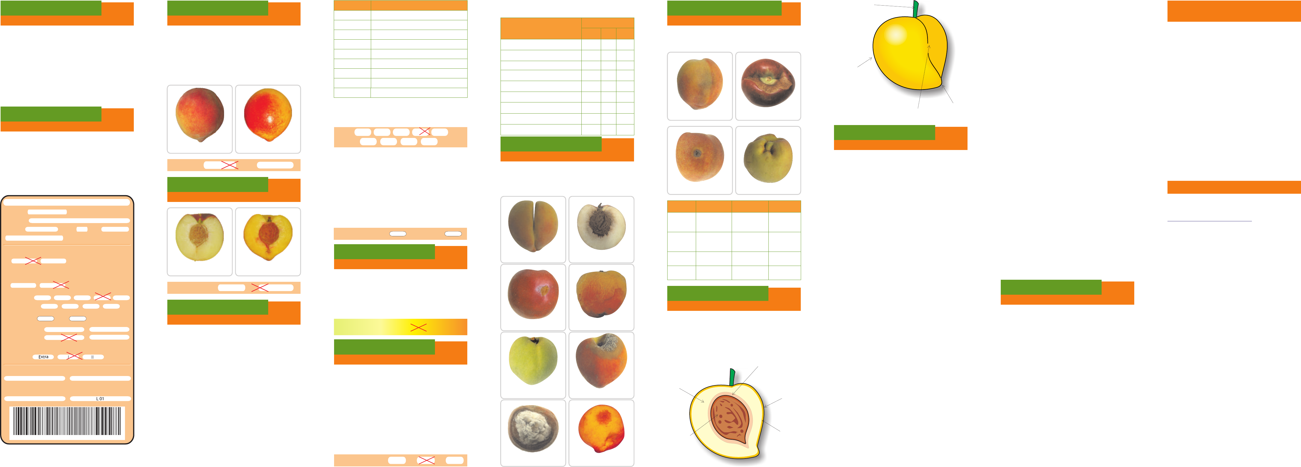 Organização dos cultivares Grupo Garantia de padrão mínimo de qualidade Categoria Muito prejudiciais ao produto Defeitos Graves A gravidade é função da intensidade Defeitos Variáveis Garantia do responsável Rótulo Garantia de homogeneidade de tamanho Classe Caracterização da maturação Subclasse Vocabulário Glossário O nome certo para cada parte do pêssego Morfologia A classificação por categoria descreve a qualidade do produto. A categoria é definida pela tolerância aos defeitos graves, variáveis e leves. O produtor deve eliminar os produtos com defeitos graves, antes do embalamento do produto. O enquadramento na categoria Extra exige, nas variedades coloridas, 2/3 da superfície com a cor de cobrimento e não permite a mistura de classes. É tolerada a mistura no lote de 10% de frutos da classe imediatamente inferior e 15% da classe imediatamente superior. Os defeitos graves causam grande depreciação do valor do produto inviabilizando o seu consumo e/ou podem ser disseminados para outros frutos. A coloração de fundo é o melhor indicador de maturação e do ponto de colheita do pêssego e nectarina. O estádio de maturação deve ser informado pelo produtor na remessa do produto. Calibre Diâmetro em mm 8 7 6 5 4 3 2 1 0 maior que 80 maior que 73 até 80 maior que 67 até 73 maior que 61 até 67 maior que 56 até 61 maior que 51 até 56 maior que 45 até 51 maior que 35 até 45 maior que 25 até 35 Coloração da polpa Subgrupo Limite de frutos com defeitos graves e leves, em % de frutos do lote, por categoria. O defeito, de acordo com a sua intensidade, pode ser grave, leve ou desconsiderado. Defeito Medida da intensidade Defeito grave Defeito leve Amassado Dano cicatrizado Defeito de casca % da área ocupada e escurescimento da polpa % da área ocupada e profundidade do dano em mm % da área ocupada Maior ou igual a 2% e escurescimento da polpa Maior ou igual a 5% ou 3 mm Maior ou igual a 10% Menor que 2% sem escurescimento Menor que 5% ou 3 mm Menor que 10% e maior que 2% Deformação Localização no fruto Lateral Pedúnculo e bico Cor de cobrimento ou da epiderme: A coloração de cobrimento, com tons entre o vermelho e o violeta, é formada por pigmentos flavonóides denominados antocianinas, mais intensamente sintetizadas na etapa final de maturação do fruto. Cor de fundo: As modificações da maturação ocorrem pela destruição da clorofila, que evidencia os pigmentos mascarados pelo verde, principalmente, os carotenóides de cor amarela e laranja. A cor de fundo passa de tons esverdeados para tons de amarelo que, conforme a cultivar, variam entre o creme e o alaranjado. Defeito: Toda e qualquer alteração do fruto causada por fatores de natureza fisiológica, mecânica ou por agentes diversos que comprometam a qualidade do fruto. Defeitos graves: Caroço partido, dano interno por frio, dano não cicatrizado, desidratado, 1 2imaturo, podridão , podridão , queimado pelo sol e sobremaduro. Caroço partido: Abertura do fruto no pedúnculo, causada pela separação do caroço. Dano interno por frio: Alteração interna por frio e ou congelamento na pós-colheita ocasionando escurecimento, farinosidade, vitrificação, congelamento da polpa ou da epiderme, translucidez ou sangramento, que se irradia do caroço até a periferia do fruto. Dano não cicatrizado: Qualquer lesão não cicatrizada, não importando a sua causa, que rompa a epiderme, expondo a polpa do fruto. Desidratado: Perda de água nos tecidos, visível pelo murchamento do fruto e enrugamento visível da epiderme. Imaturo: Fruto colhido antes de alcançar o ponto ideal de colheita caracterizado por conteúdo de sólidos solúveis inferior ou igual a 8º Brix e ou por cor de fundo no estádio esverdeado. Podridão: Dano patológico visível causado por decomposição, desintegração ou fermentação A caracterização por grupo é utilizada para agrupar os cultivares com características semelhantes. O pêssego e a nectarina são da espécie Prunus persica (L.) Batsch. A nectarina é uma mutação do pêssego, com epiderme glabra, sem pilosidade. O rótulo identifica o responsável pelo produto e a sua origem. A rotulagem é obrigatória e regulamentada pelo Governo Federal. O rótulo deve conter a descrição do produto de acordo com as regras es tabe lec i das pe las no rmas de classificação. O agrupamento por classe garante a homogeneidade visual de tamanho em cada lote. A caracterização da classe pode ser feita por calibre ou por peso. A classificação por calibre utiliza o maior diâmetro transversal do fruto e obedece a um limite de variação dentro de cada classe. A classificação por peso utiliza o tamanho do fruto em gramas e obedece a um limite de variação dentro de cada classe. É permitida a mistura de duas classes contíguas no lote desde que as duas sejam indicadas no rótulo. A classificação pelo calibre dos frutos, obedece ao limite de variação entre o maior e o menor fruto, de acordo com a tabela a seguir. Branca Amarela DeformaçãoDefeito de casca Amassado Dano cicatrizado NectarinaPêssego Classificação é a separação do produto em lotes visualmente homogêneos e a sua descrição através de características mensuráveis, obedecendo a padrões pré- estabelecidos. Tamanho não é qualidade. O lote de pêssego e nectarina é caracteri- zado por seu grupo, sua coloração de polpa (subgrupo), seu tamanho (classe), e sua categoria (qualidade). Garantia de transparência na comercialização Classificação A classe, estabelecida pelo peso dos frutos, obedece a um limite de variação de 5% em relação ao peso médio dos frutos: do fruto mais leve e mais pesado da caixa. Ela é caracterizada pelo peso médio do fruto e pelo tipo. O tipo é o número de frutos em uma camada da caixa ou em uma bandeja, independente do número de camadas por caixa. É um programa de adesão voluntária e de auto-regulamentação setorial, que surgiu em 1997 como Programa P